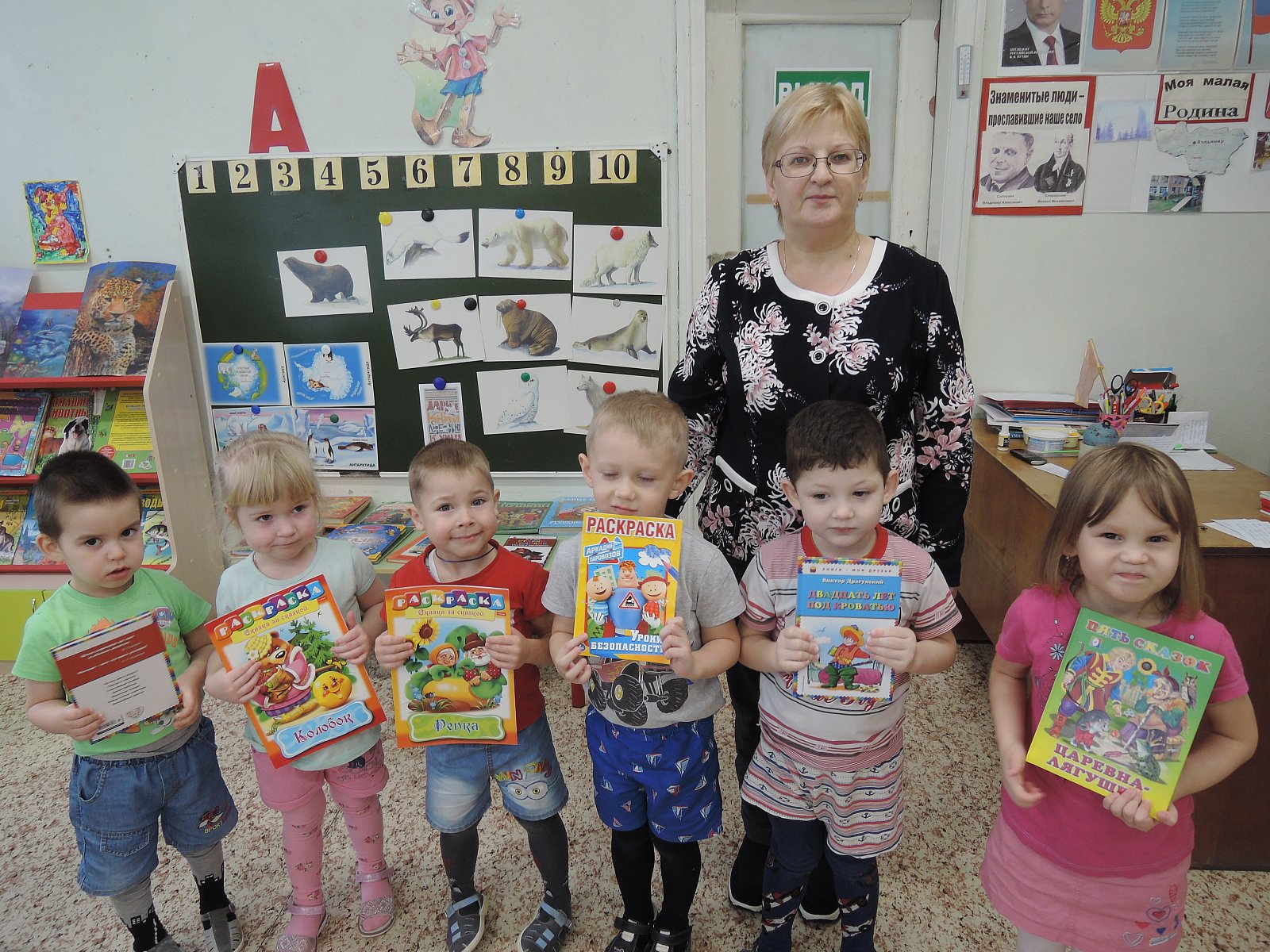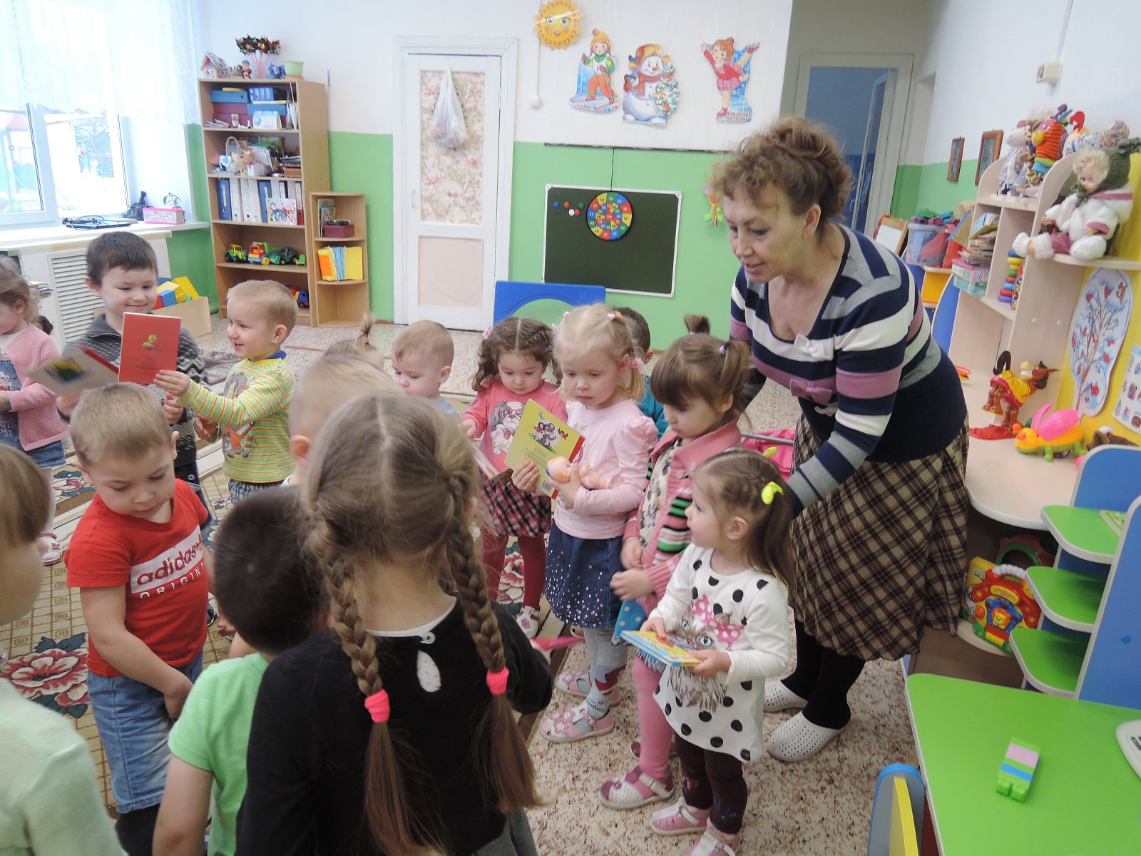 В России с 2017 года в честь этого праздника проходит общероссийская акция «Дарите книги с любовью». Организаторы акции призывают всех провести ревизию домашних библиотек и подарить уже прочитанные книги тем, кто в них больше нуждается — принести книги в больницы, детские дома, приюты, социальные центры и дошкольные учреждения. В этот день принято дарить книги в первую очередь, детям. В этот день к нам в детский сад пришли члены волонтерского отряда «Мы вместе» из Черкутинской школы вместе с учителем первого класса Густяковой Ольгой Викторовной. Ребята принесли в подарок много интересных детских книг и доставили огромную радость дошкольникам. Потом пришла Шувалова Светлана Викторовна, библиотекарь сельской библиотеки, и тоже подарила ребятам книги, принесенные в библиотеку сельскими читателями. Эту акцию поддержали воспитанники старшей группы «Смешарики». Они отобрали книги, которые читали в прошлом году, и решили подарить их своим младшим друзьям. Это очень красочные книги с интересными потешками, стихами и песенками для малышей. Очень обрадовались малыши, когда увидели старших дошкольников, да еще с такими замечательными подарками. Ведь книга – это великий дар, способный творить чудеса.
