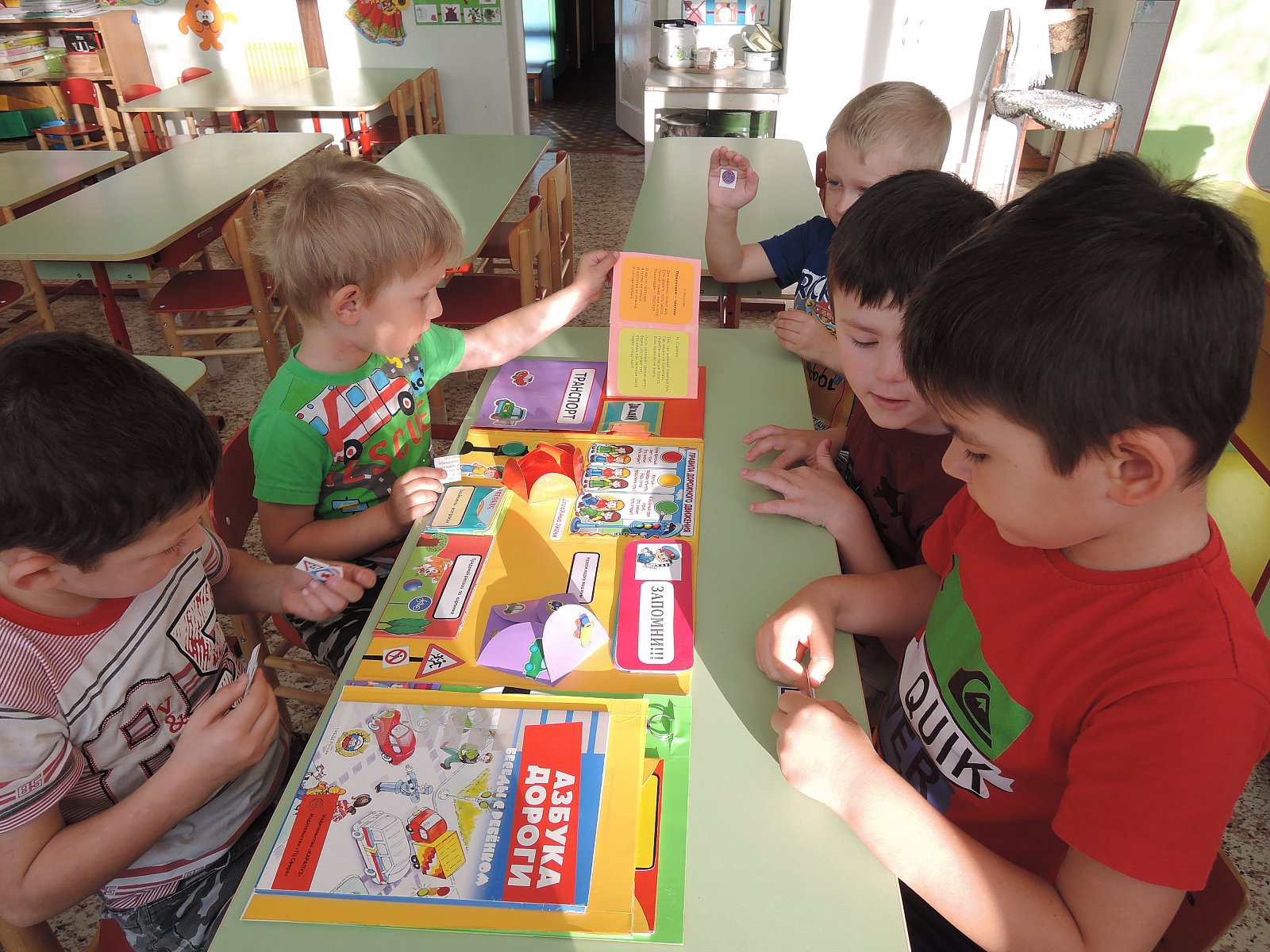 Дошкольники старшей группы поработали с лэпбуком «Дорожная азбука». Ребята средней группы закрепили знания о разных видах транспорта, потренировались в сборке светофора, старшие дошкольники отгадывали загадки и отвечали на вопросы Знайки по дорожному движению, а дети подготовительной группы собирали дорожные знаки и решали ребусы. Задания нашлись для каждого.