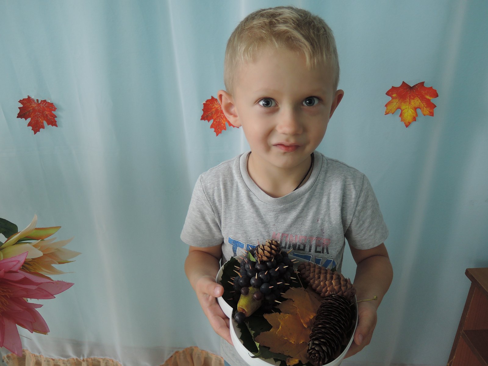 Осень - удивительная пора! С полей и огородов собирают богатый урожай овощей. В садах поспевают вкусные фрукты, лес угощает человека своими дарами и радует небывалой красотой. Осень - это время, когда можно пофантазировать и проявить свое творчество.