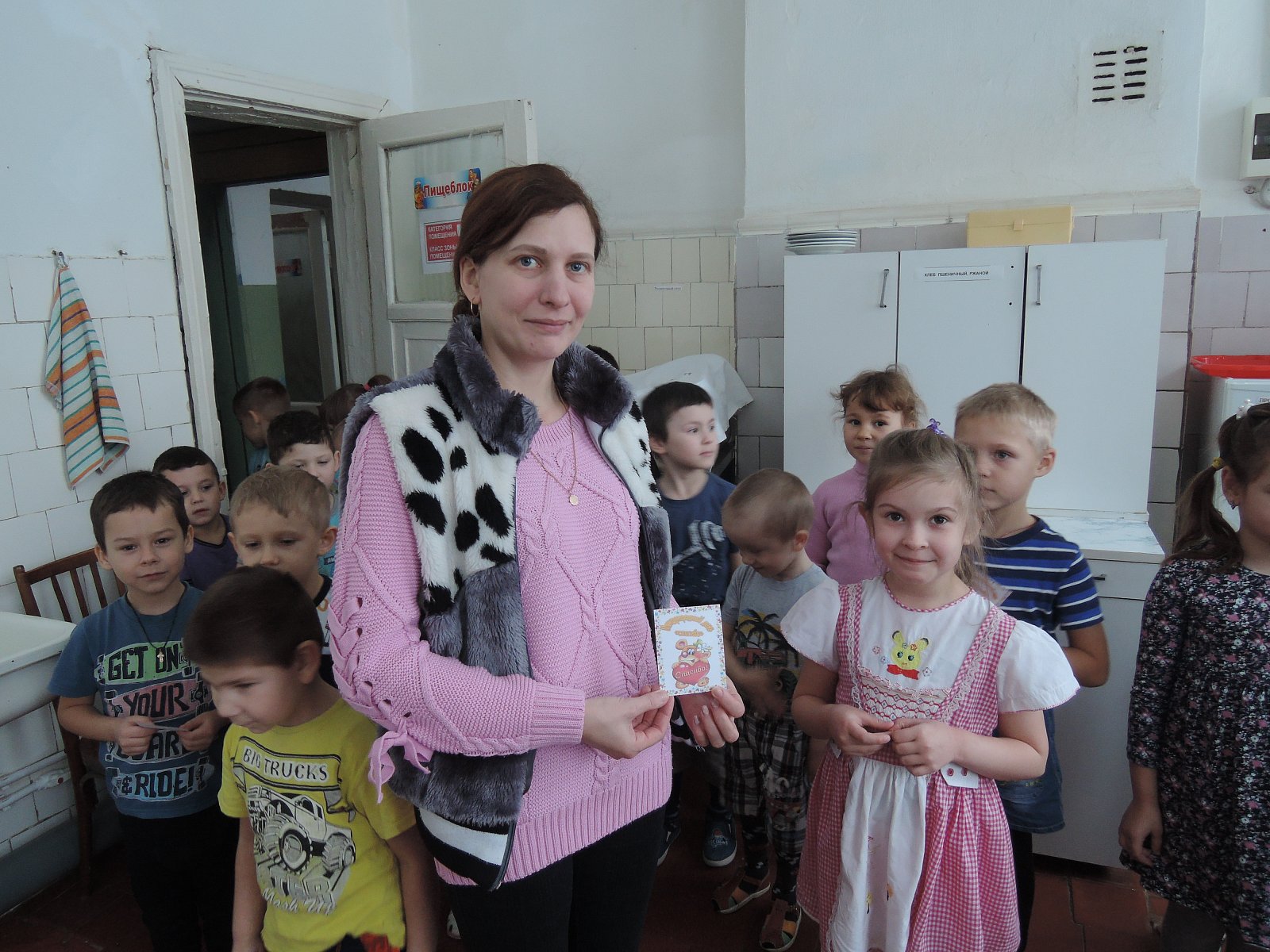 В конце дня прошла акция «Открытки Спасибки», все дети детского сада своими руками изготовили открытки и со словами благодарности дарили сотрудникам детского сада.