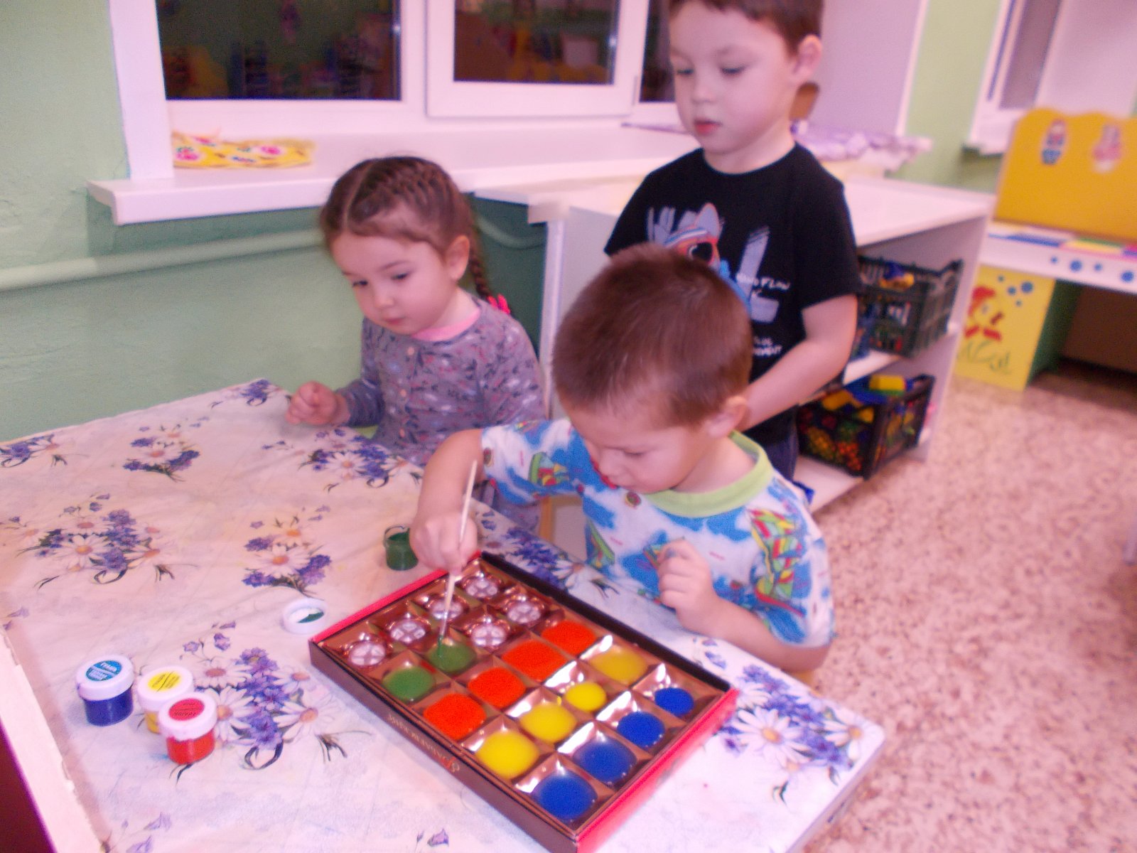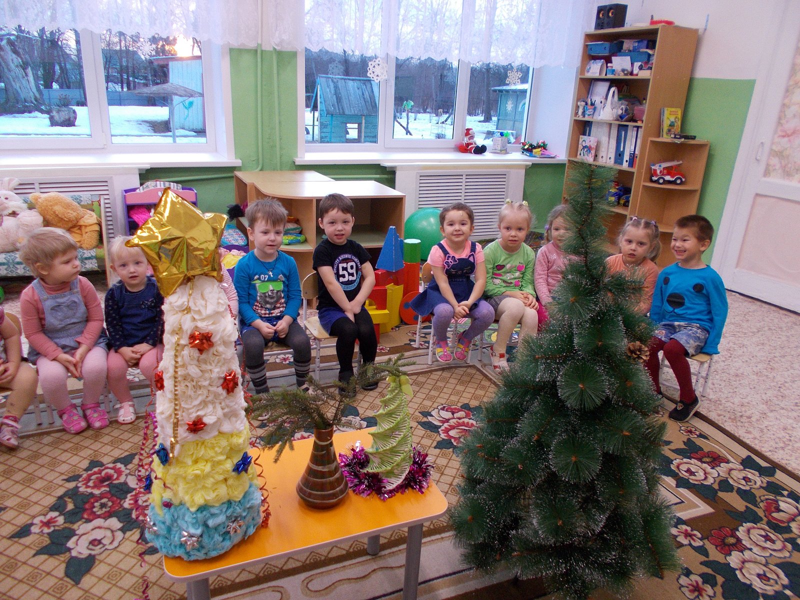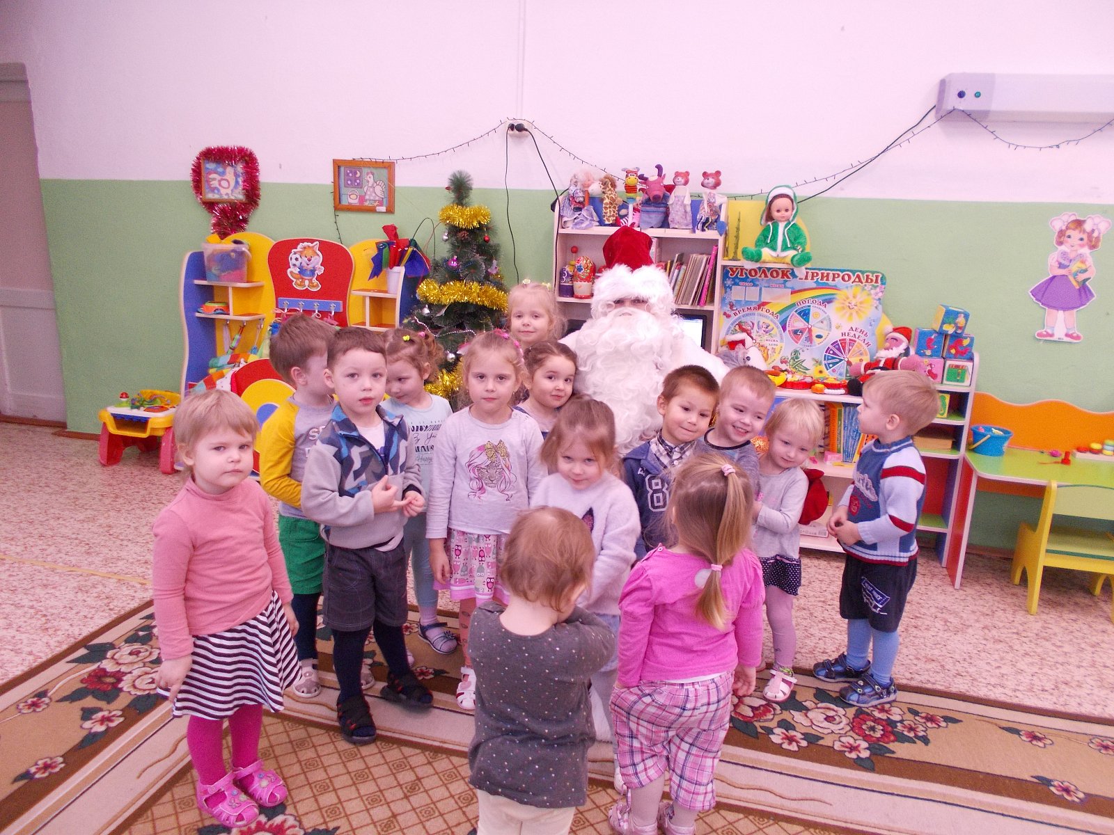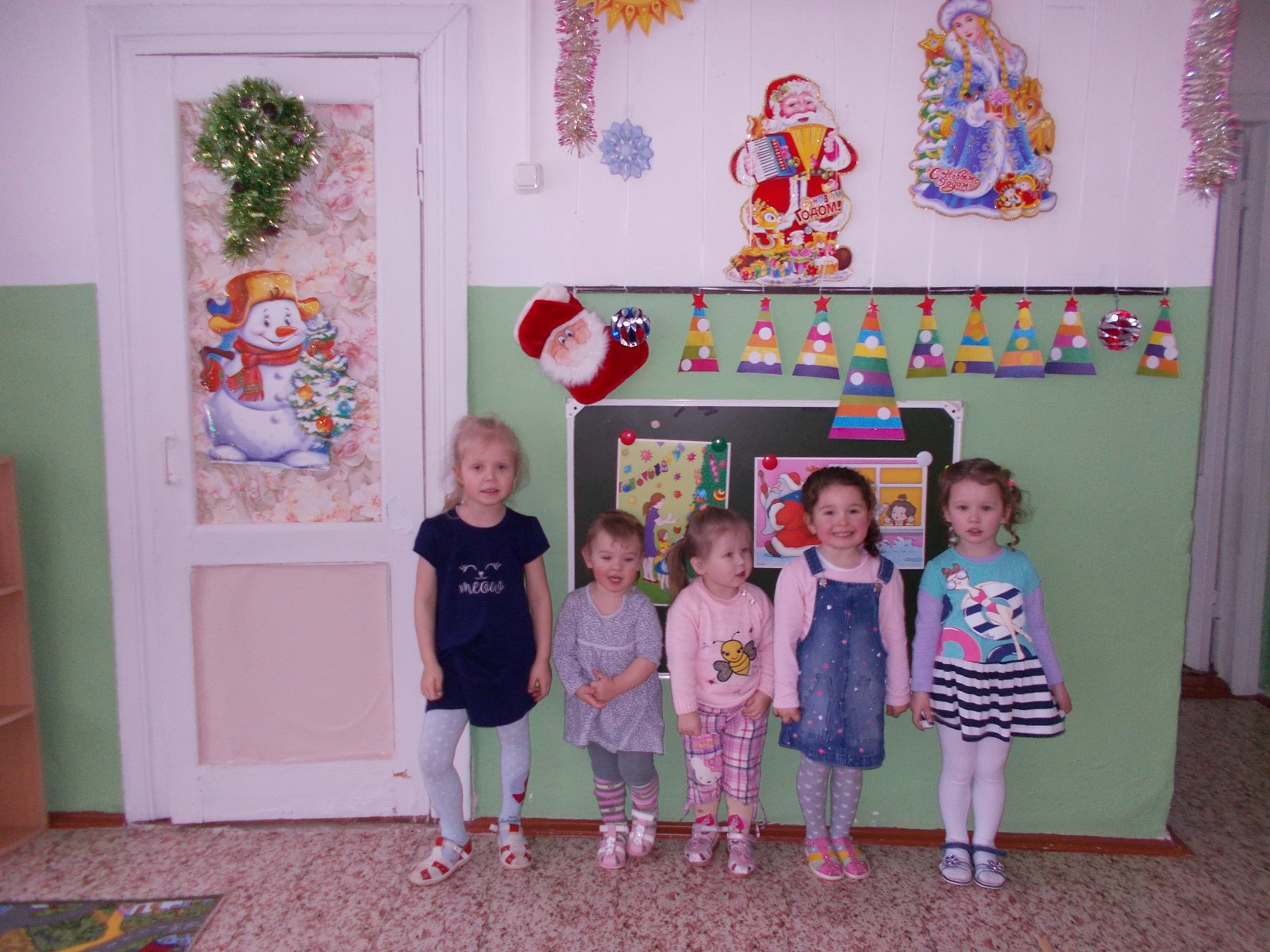 Подготовка началась задолго до наступления праздников. Воспитатель с детьми разучивали стихотворения, проводили беседы на тему Нового года, новогодних традиций, разучивали с воспитанниками песни, танцы, новогодние хороводы. Огромную работу провели по оформлению групп и музыкального зала. Дед Мороз принес в группу детям елочку. Дети младшей группы рисовали елочку и делали аппликацию «Нарядная елка»