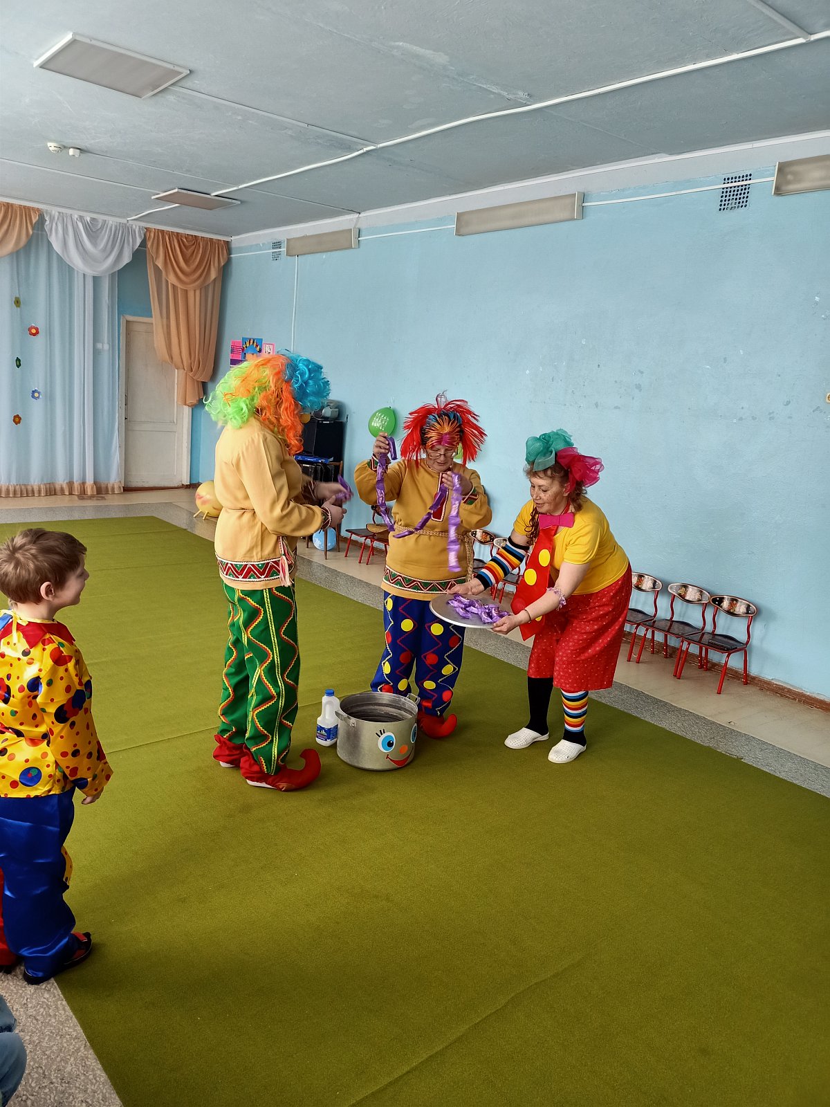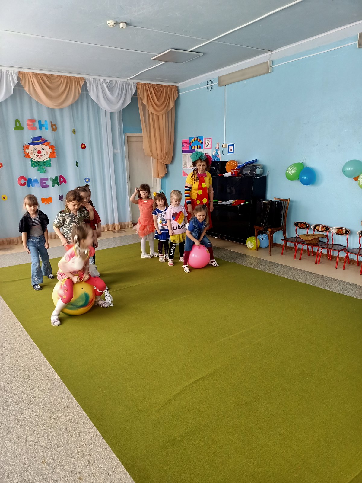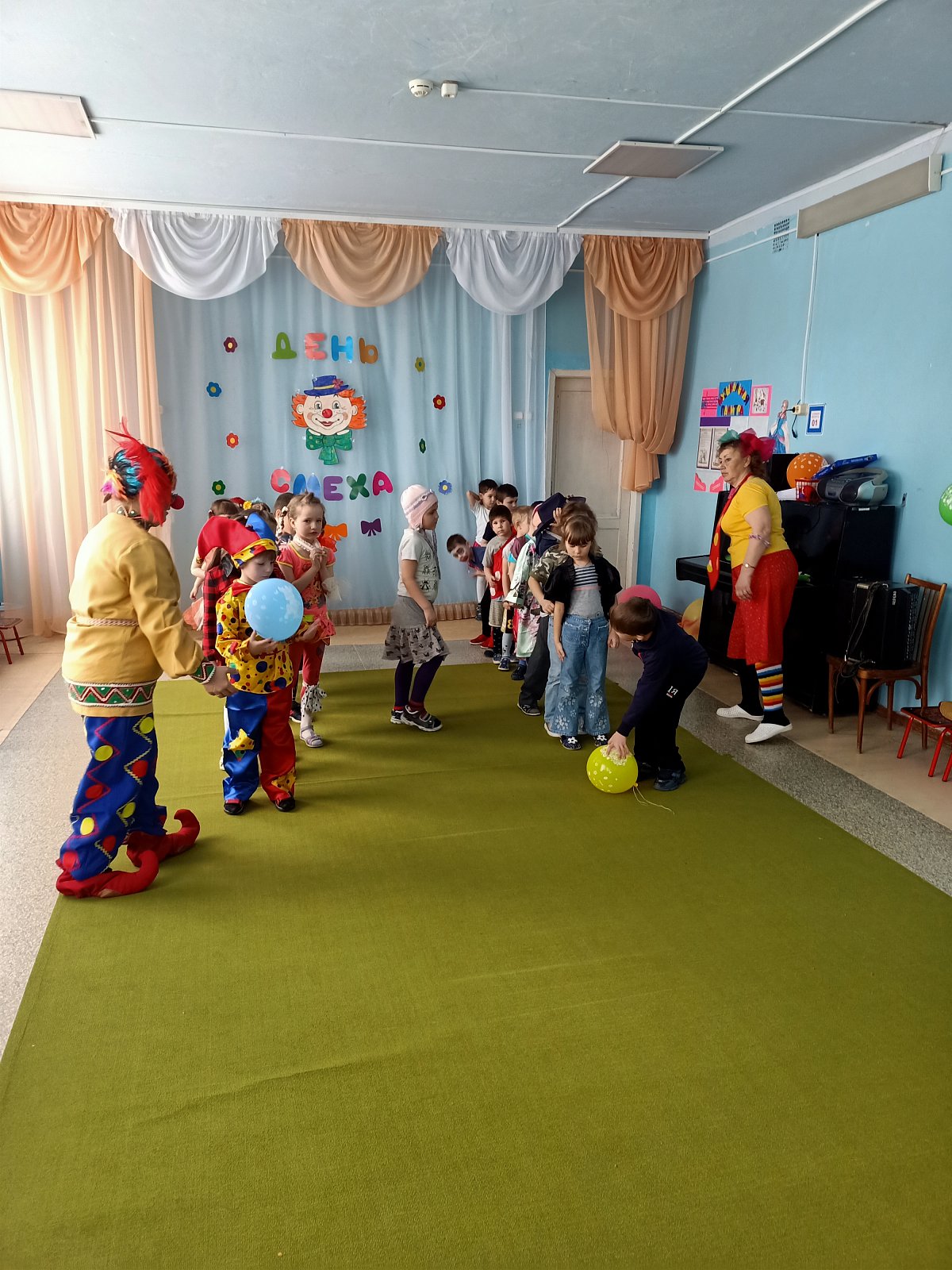Столько шуток, веселых конкурсов и розыгрышей происходило в этот день! Для дошколят был организован праздник «Веселые вытворяшки». В музыкальном зале детей встречали клоуны Прошка и Тимошка, которые вместе с ребятами пели, танцевали и играли, загадывали загадки – обманки, участвовали в шуточных конкурсах и эстафетах. А сладкие сюрпризы, детская дискотека и шоу мыльных пузырей привели детей в восторг.