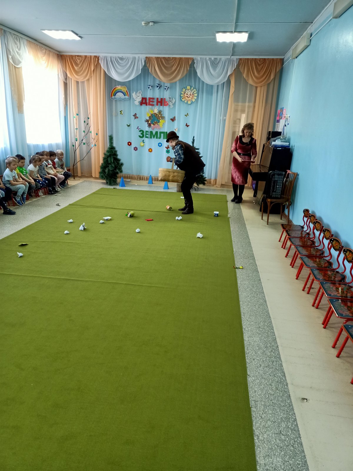 «День Земли» начался с просмотра видео - презентации «Земля – наш общий дом», где ребята наглядно могли увидеть красоту нашей прекрасной голубой планеты, животный и растительный мир. А потом постарались отобразить в своих рисунках нашу планету, красивую и неповторимую. В музыкальном зале разыгралось целое представление: ребята отправились в лес в гости к старичку – Лесовичку, который пожаловался на то, что кто – то поломал деревья, вырвал все цветы, развел костер, разорил муравейник и разбросал в лесу мусор. Отчего птицы улетели, звери убежали, в лесу стало тоскливо и уныло. И все из – за Вовки Морковкина. Дети не растерялись и помогли Лесовичку привести лес в порядок, да и самого хулигана научили, как надо себя вести в лесу. Дошкольники читали стихи, пели песни, водили хороводы, играли в игры. Праздник удался на славу! В заключение ребята пожелали нашей планете Земля процветания и пообещали – никогда не наносить вред окружающему миру.