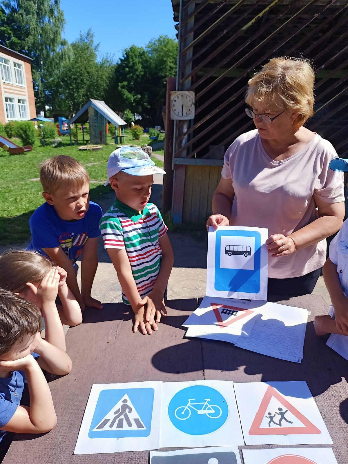 Мероприятие началось с вопросов на знание правил дорожного движения, дети рассказали, какие дорожные ситуации встречались на их пути. Еще раз вспомнили про значение сигналов светофора, выяснили, чем светофор для водителей отличается от светофора для пешеходов. Кроме того, Светлана Викторовна, напомнила своим воспитанникам значение дорожных знаков и сигналов регулировщика, а затем ребята в игровой форме закрепили полученные знания. Ребята убедились, что правила дорожного движения надо не только знать, но и соблюдать их, чтобы избежать несчастных случаев.