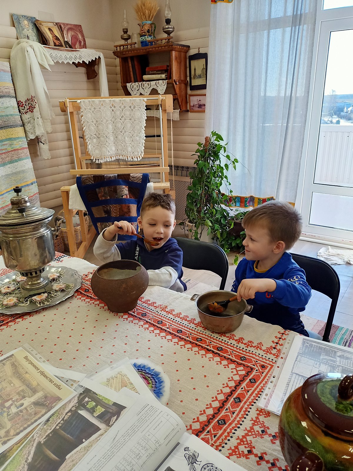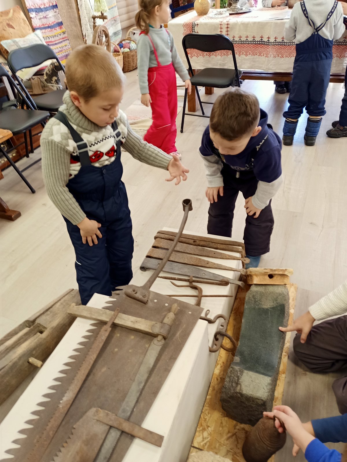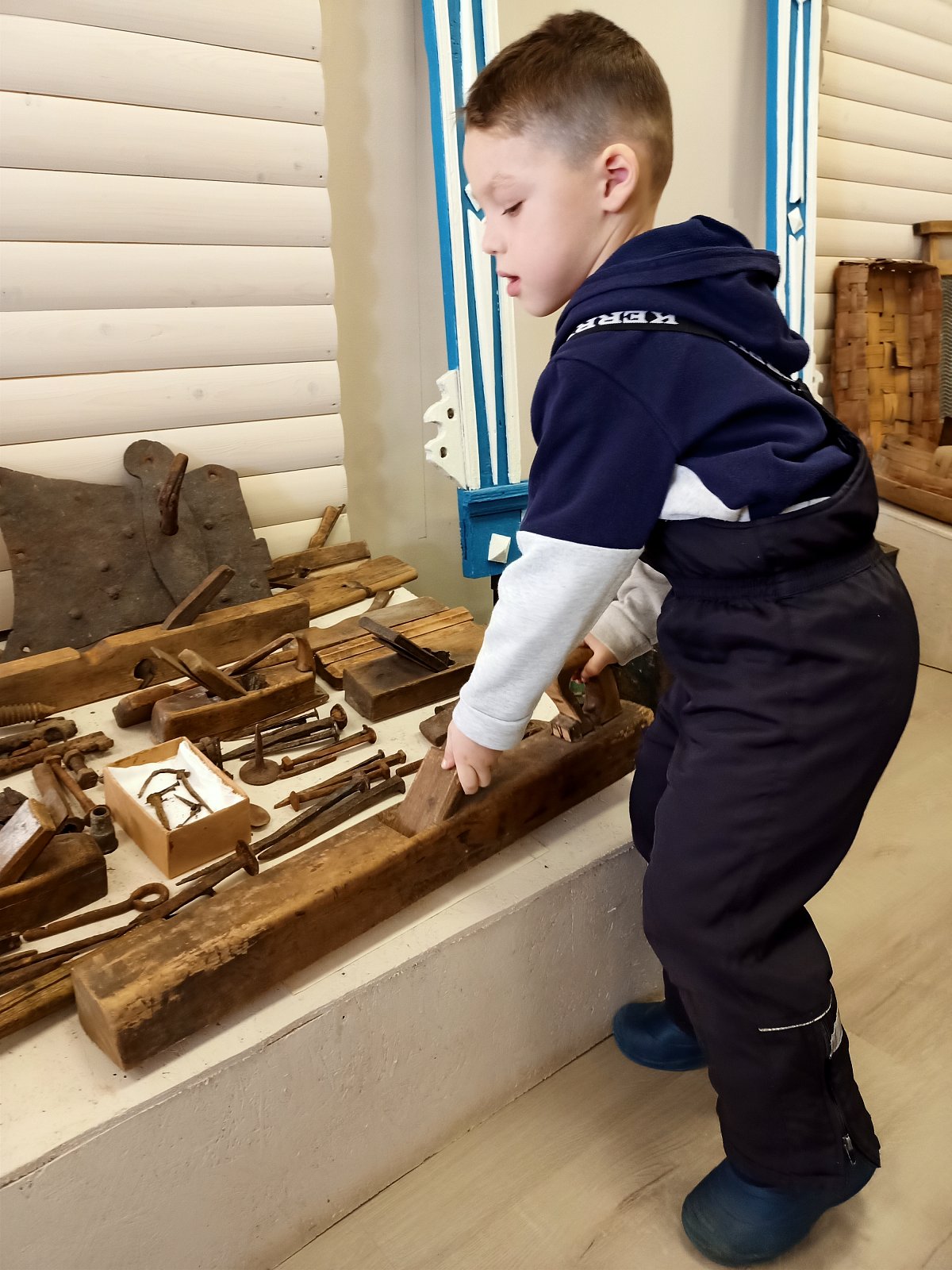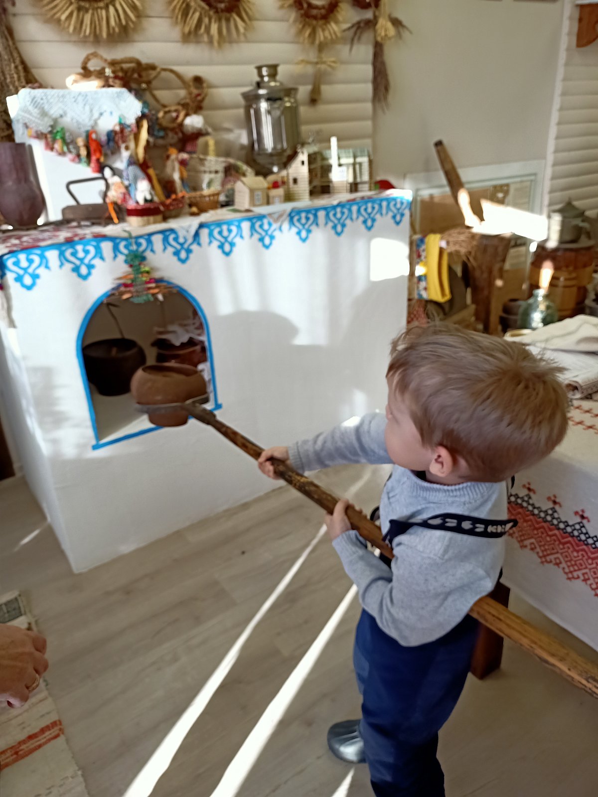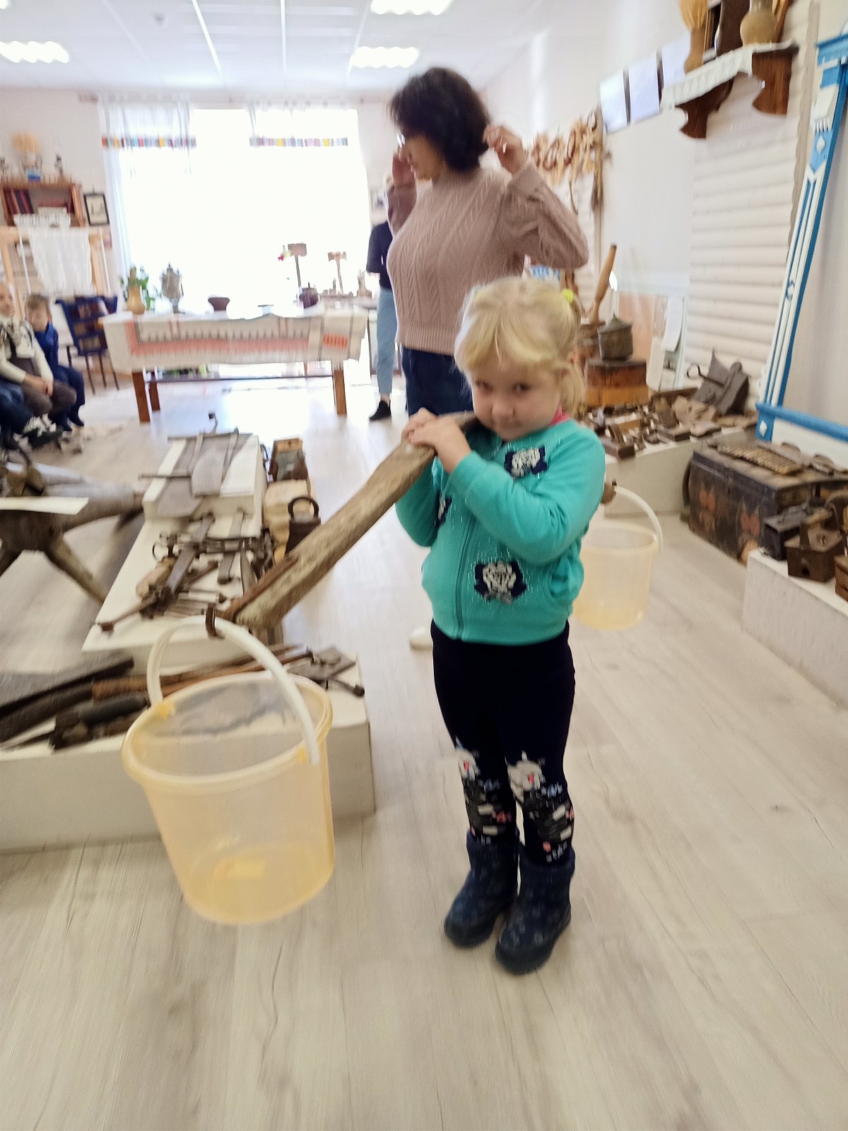 16 ноября воспитанники старшей - подготовительной группы МБДОУ «Светлячок» совершили экскурсию в Дом культуры в краеведческий музей. Работник Дома Культуры, Жирякова Светлана Викторовна радушно встретила ребят и провела очень интересную и познавательную экскурсию по залу музея с разными экспозициями, которые помогли понять и увидеть быт наших предков. В «русской избе» дошкольники познакомились с предметы связанные с печью: кочергой, старинной посудой. Ребята узнали о том, что коромысло изготавливали из липы, осины, ивы – древесина, которых отличается легкостью, гибкостью, упругостью, увидели старинные часы, посуду. Девочек заинтересовали утюги, ткацкий станок, коромысло, а мальчиков - старинные инструменты, подковы, серпы. В музеях экспонаты трогать нельзя, а в нашем Черкутинском краеведческом музее ребята не только потрогали, но попробовали их в деле: ухватом поставили чугунки в печку, прошлись с коромыслом, подержали утюги, разглядели прялку. Старое уходит, но его нужно знать и беречь. Русская старина вся пронизана добром, а это очень важно в наши дни, и особенно актуально для детей дошкольного возраста. Приобщая детей к истокам Русской народной культуры, мы развиваем личность ребёнка. Народная мудрость гласит: «Не забывайте старь – она новизну держит».