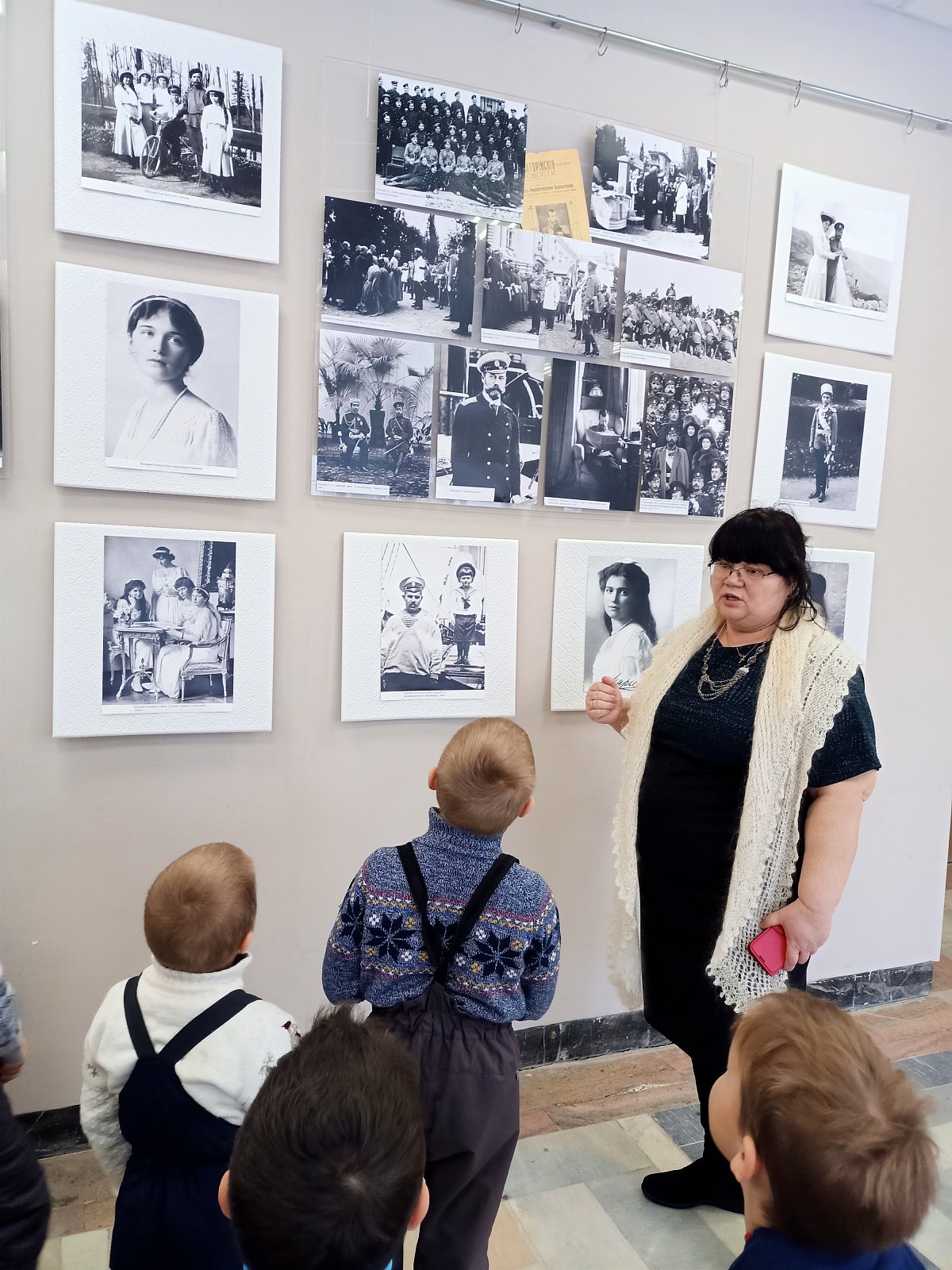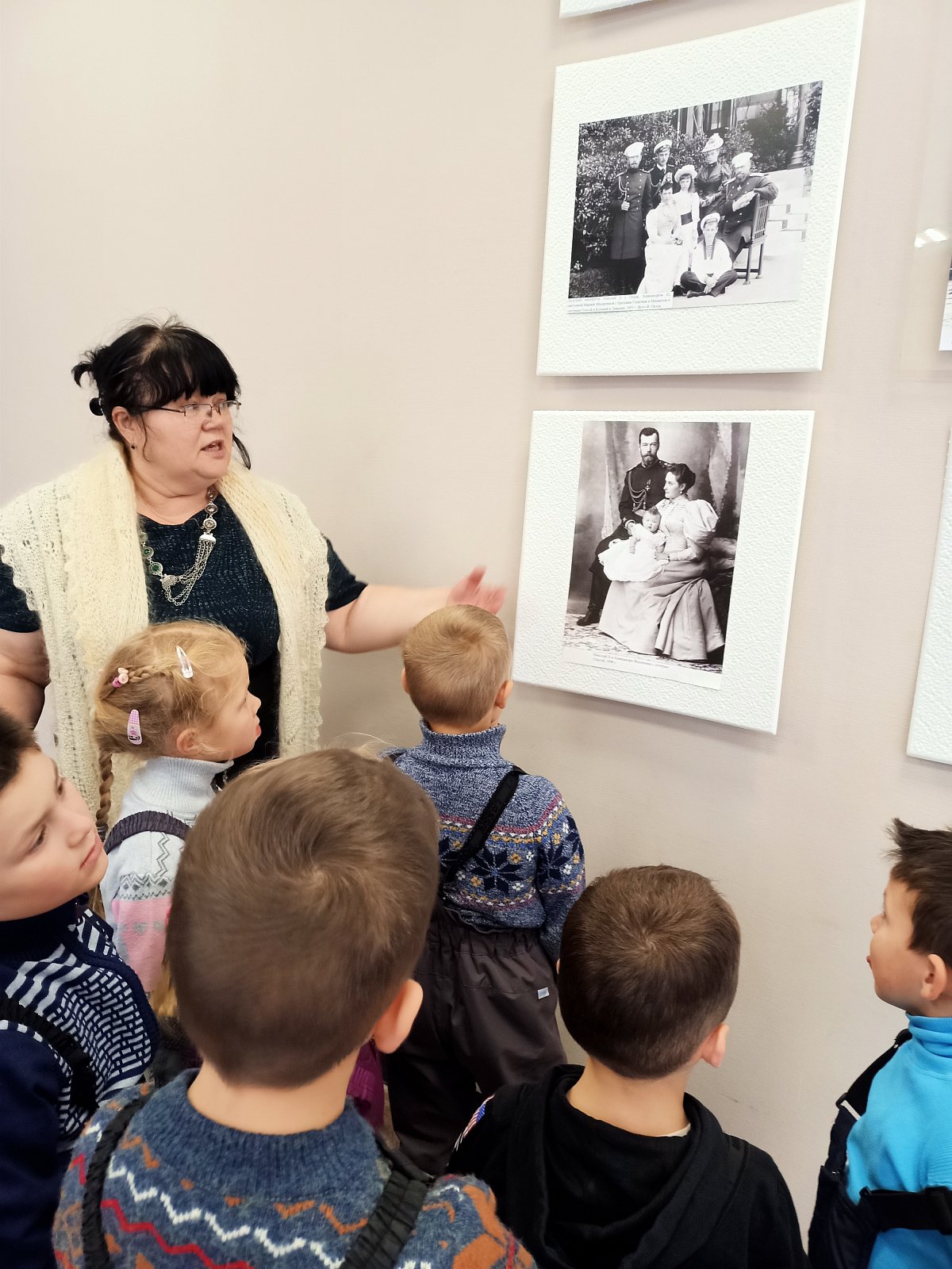 Дошкольников радушно встретила директор музейно – выставочного зала имени М.М.Сперанского Щегорцева Инна Александровна. Она в доступной форме очень интересно рассказала ребятам об императоре Николае II.Как сказала Инна Александровна в выставку вошли больше сотни исторических фотографий. Выставка состоит из трех разделов. Первый из них посвящен семье, второй – служению Отечеству, а третий – милосердию. Снимки запечатлели повседневную семейную жизнь императора, там же можно увидеть царских дочерей, которые в годы Первой мировой войны работали в госпиталях простыми сестрами милосердия.