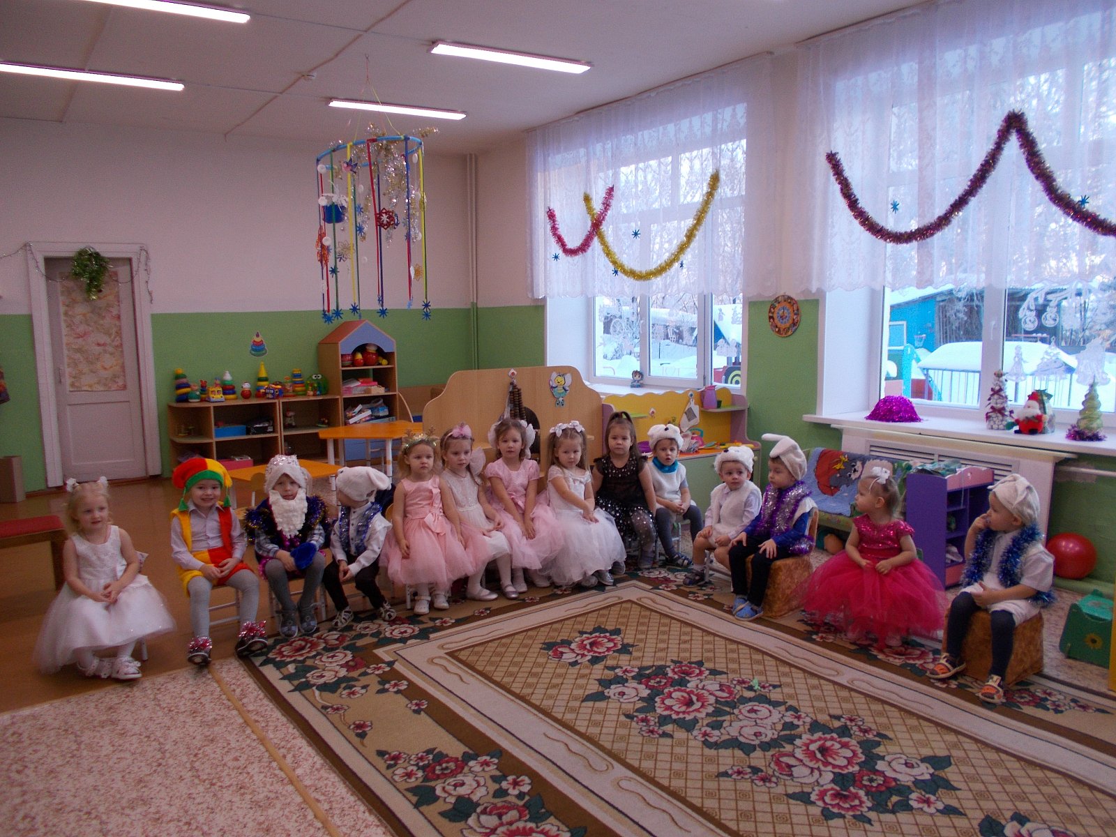 Подготовка началась задолго до наступления праздников. Воспитатели с детьми разучивала стихотворения, проводили беседы на тему Нового года, новогодних традиций, разучивали с воспитанниками песни, танцы, новогодние хороводы. Огромную работу провели по оформлению групп и музыкального зала. Дед Мороз принес в группу детям елочку. Дети младшей группы рисовали елочку и делали аппликацию «Нарядная елка». Дети средней группы рисовали «Новогоднюю открытку». Родители украсили окна красивыми вытыканками.