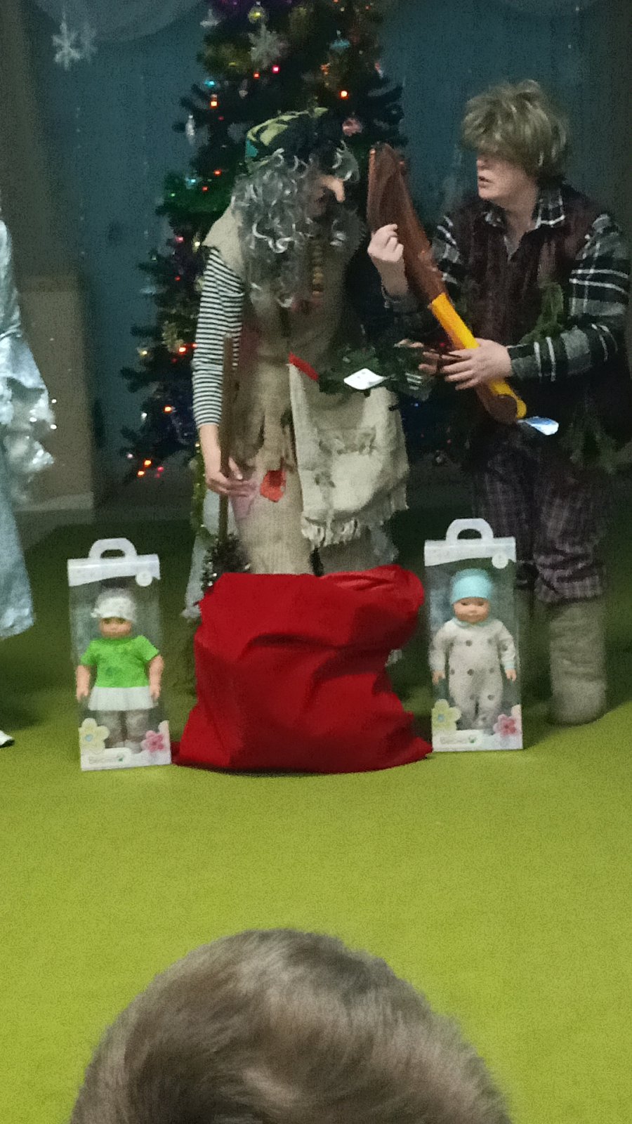 С самого начала представления сказочные герои увлекли детей в волшебный мир сказки. Дети смогли окунуться в праздничную атмосферу приключений, поиграли в веселые игры. С появлением Деда Мороза начался настоящий праздник с песнями и танцами, хороводами вокруг ёлки. Во время представления дети читали стихи Деду Морозу, фотографировались с персонажами, получали новогодние подарки.