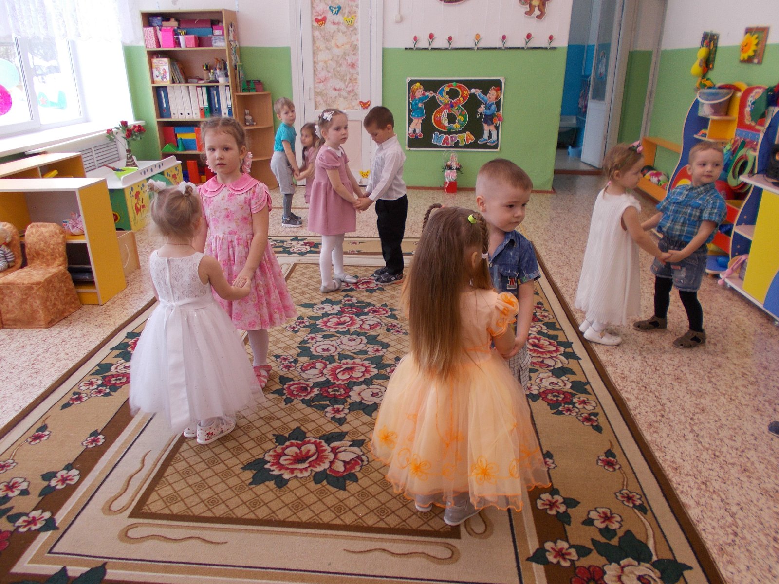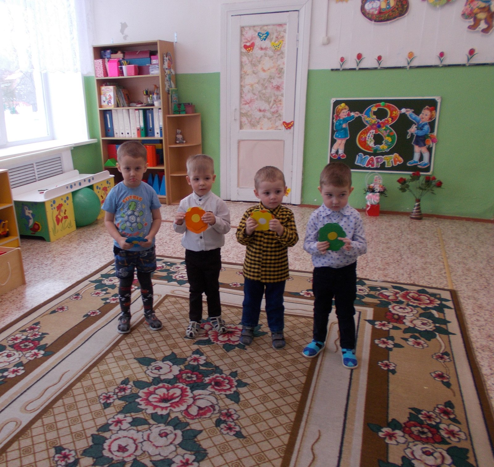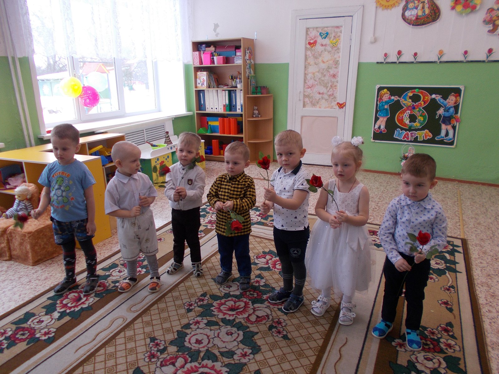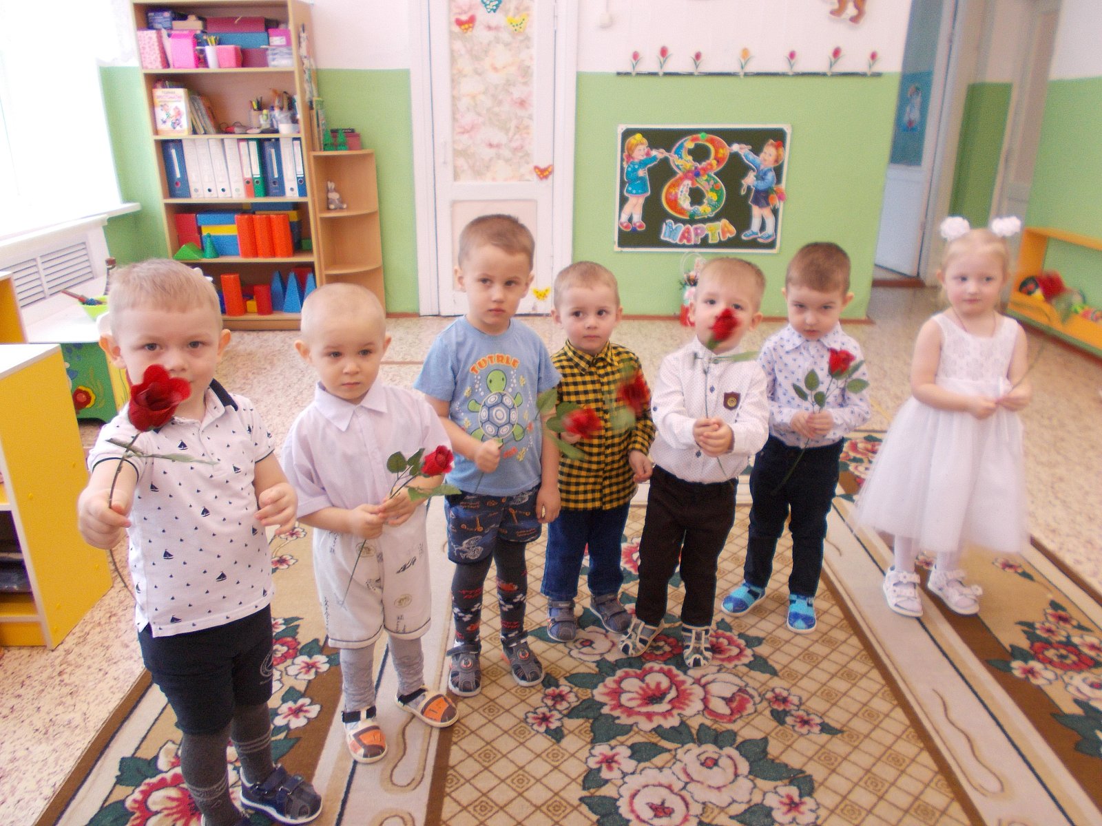 Проведена большая предварительная подготовка к празднику:воспитатели с детьми читали рассказы, проводили беседы о мамах, бабушках, сестрёнках; на занятии по рисованию мы нарисовали красивые цветы; разучивали стихотворения, песни и танцы. Для любимых мам изготовили подарки: поделки своими руками, украсили группу.