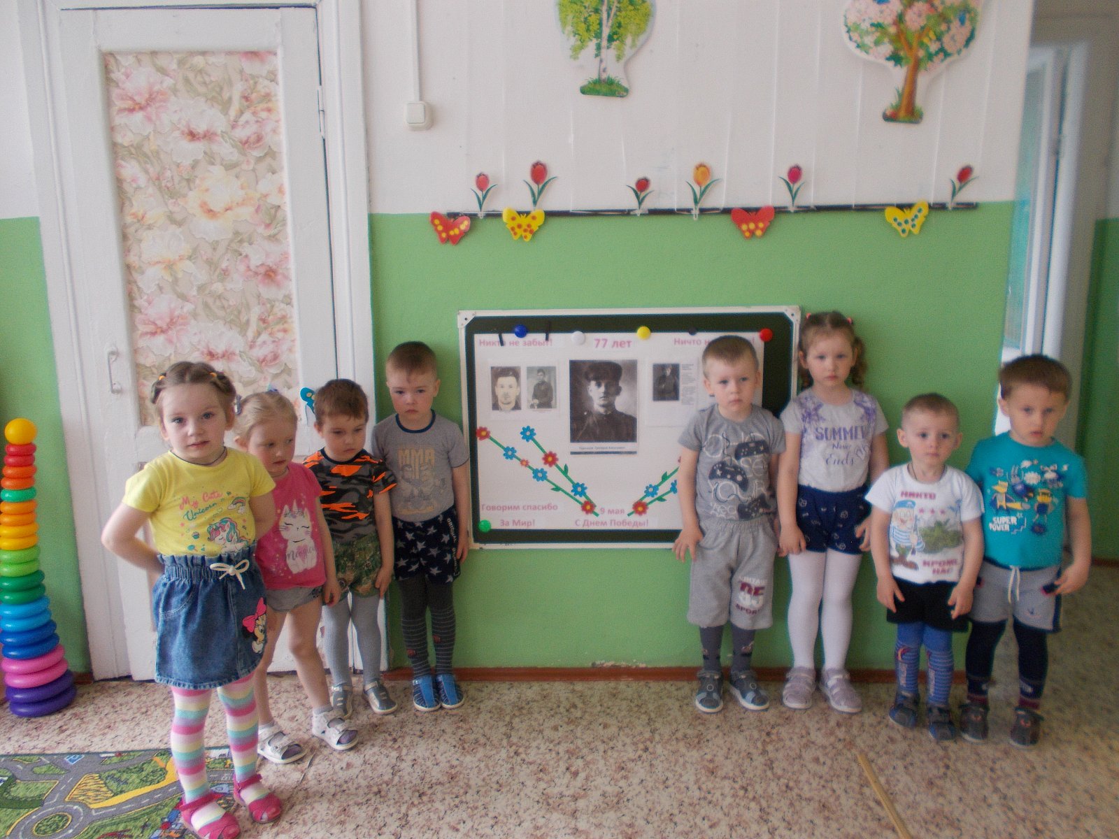 В преддверии празднования Дня Победы в целях патриотического воспитания дошкольников, любви к своей Родине и уважения к людям, которые ковали Победу, формирования положительного эмоционального подъема в группе были оформлены стенды с фотографиями ветеранов Великой отечественной войны, символикой праздника.