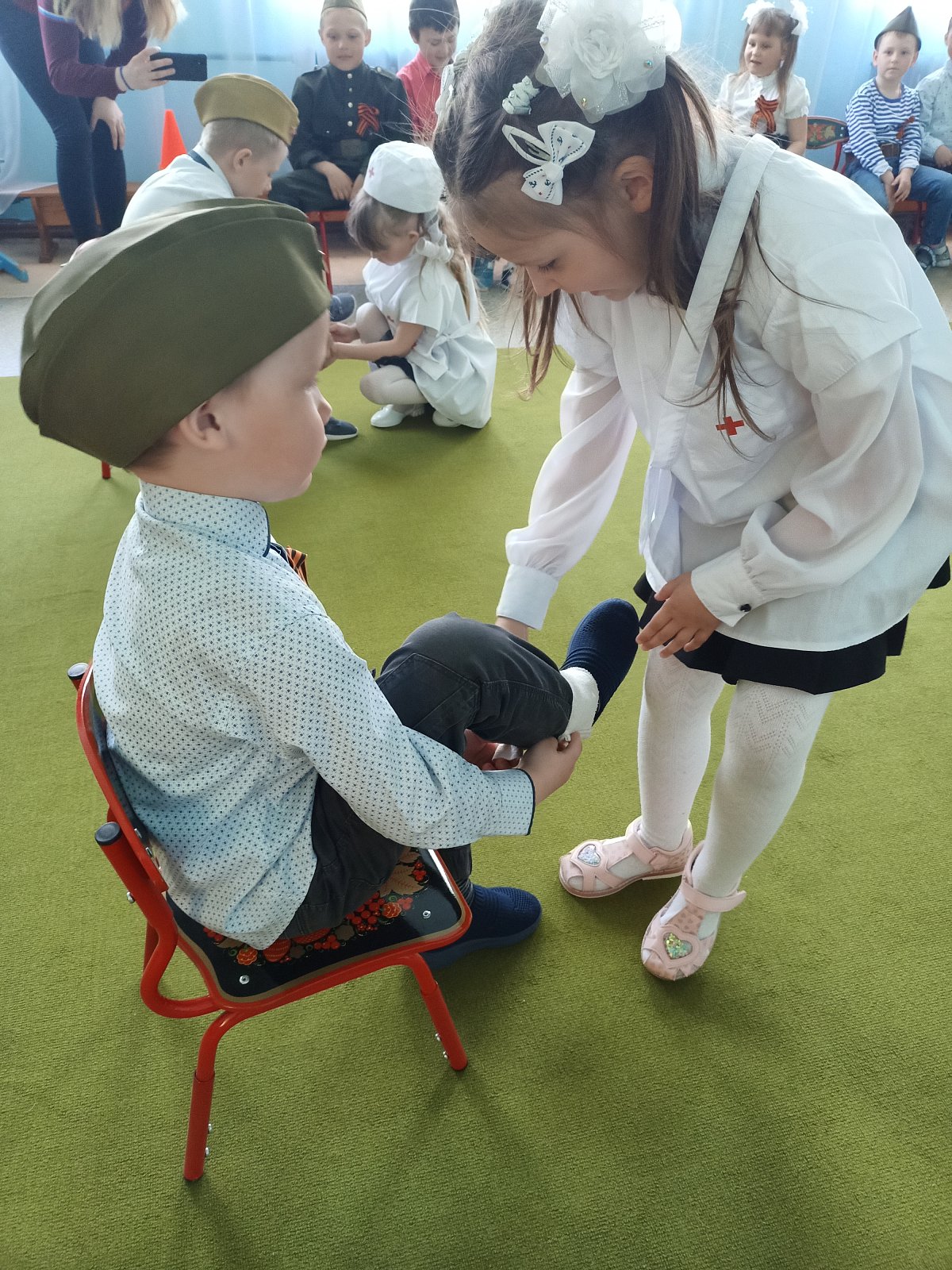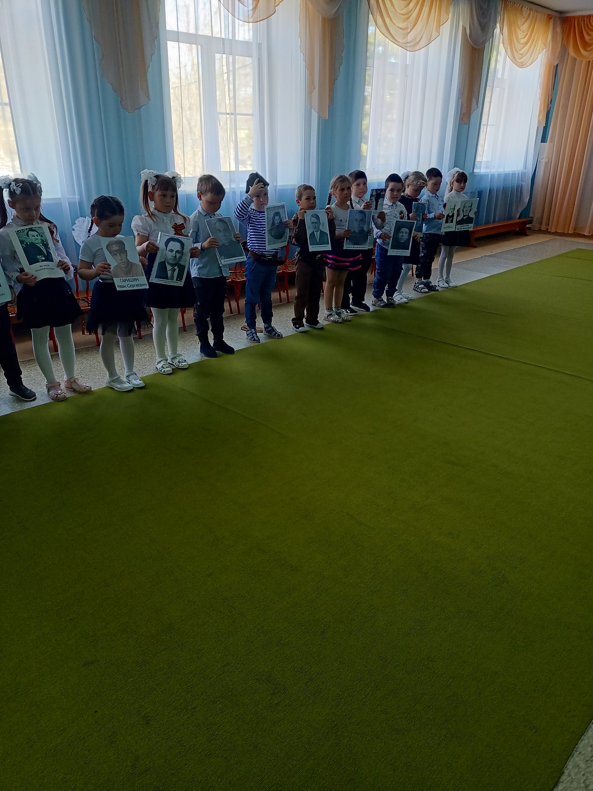 Праздник, посвященный Дню Победы, прошел 6 мая 2022 года в детском саду. Его участниками стали дети старшей группы «Смешарики». Праздник был подготовлен с целью формирования у детей знаний о Великой Отечественной войне, обогащения знаний дошкольников об истории своей страны, развития творческих способностей детей, воспитания чувства гордости за героизм нашего народа, воспитания устойчивого интереса к армии.
