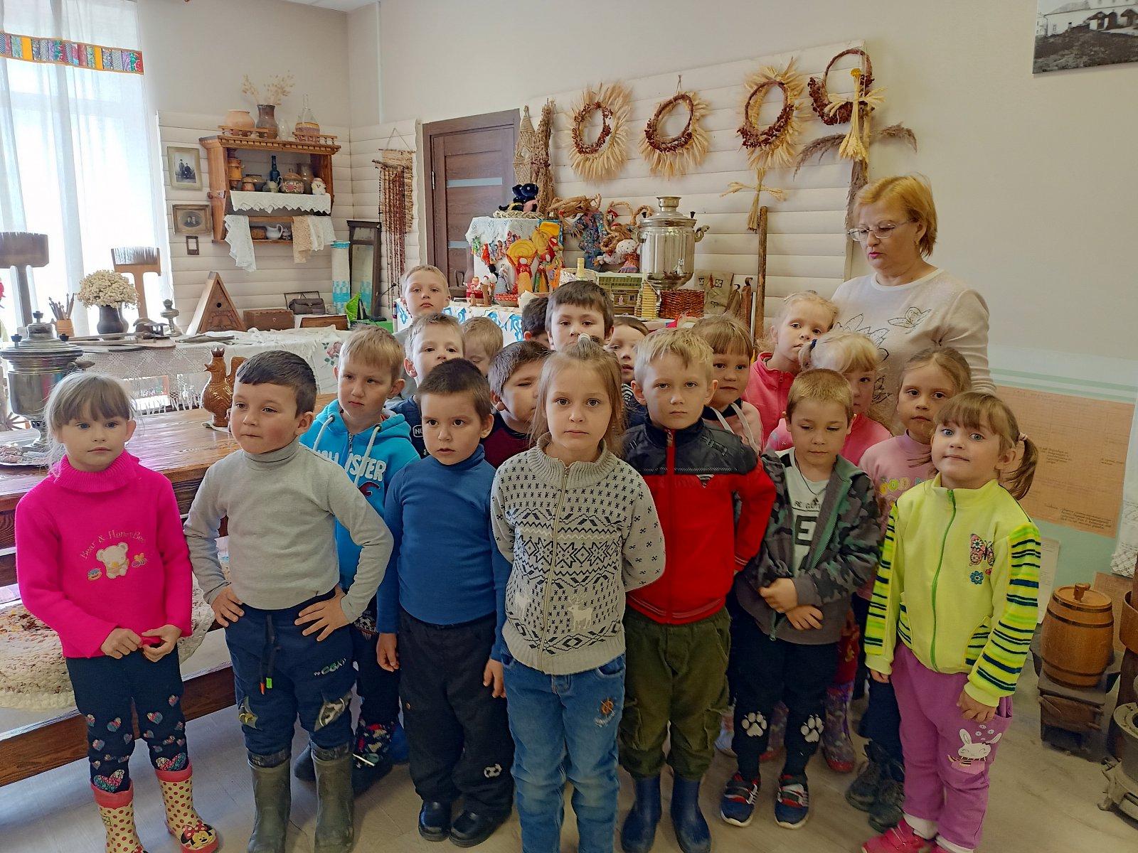 Ежегодно 18 мая отмечается Международный день музеев. Он появился в календаре в 1977 году, а с 1978 года Международный день музеев стал отмечаться более чем в 150 странах. В этот день музеи открывают свои двери для бесплатного посещения, а люди выказывают подчеркнутый интерес к деятельности музеев. Музеи — это хранилища культурных ценностей, помогающие нам осмыслять прошлое и учиться оценке настоящего с позиций культуры. Музей для ребенка — это маленькая дверь в большой мир. Экспонаты музея всегда притягивают пытливые глаза детей, их образы надолго запоминаются юным любознайкам. В рамках Международного дня Музеев в старшей группе «Смешарики» прошло познавательное занятие, где воспитанники познакомились с музеями России, с такими понятиями как - музей, экспонаты, экскурсовод. А также закрепили правила поведения в музее. Полученные знания дети проявили в экскурсии в музей старины, который находится в Доме Культуры. Дети уходили из музея с радостным настроением и ещё долго обменивались между собой яркими впечатлениями.