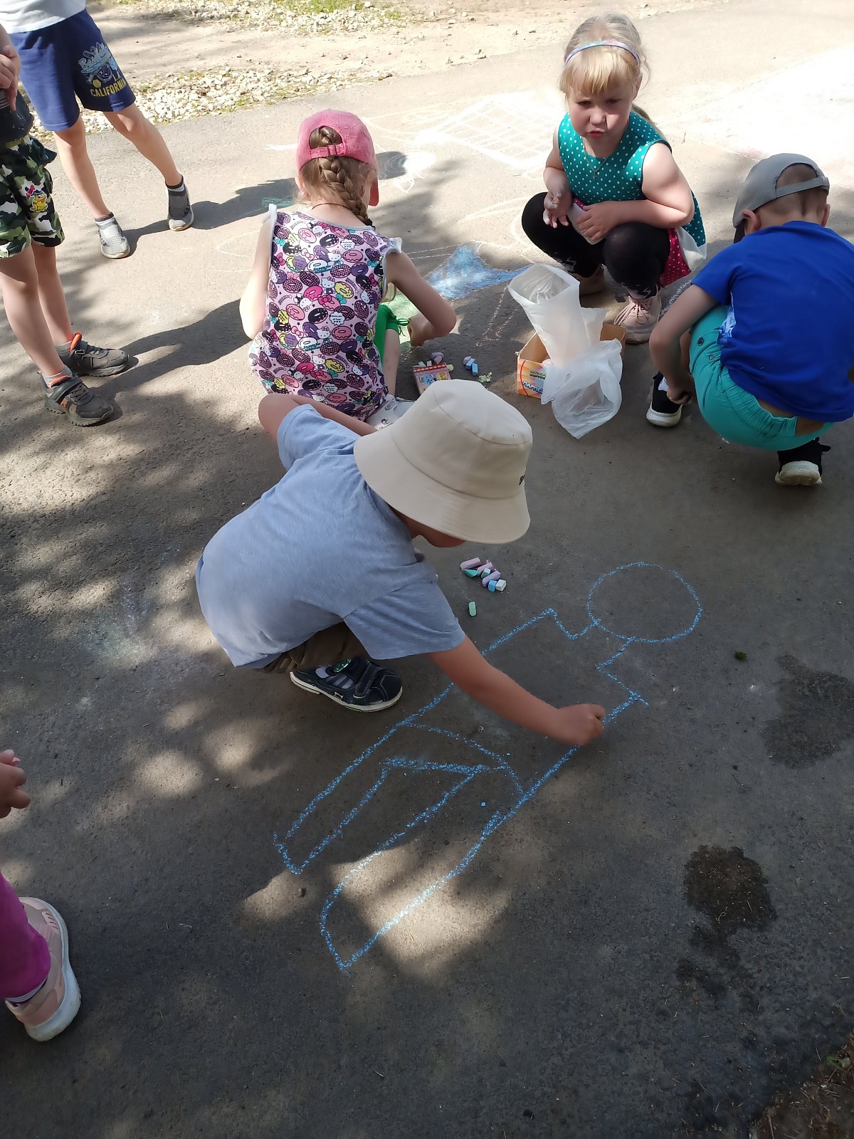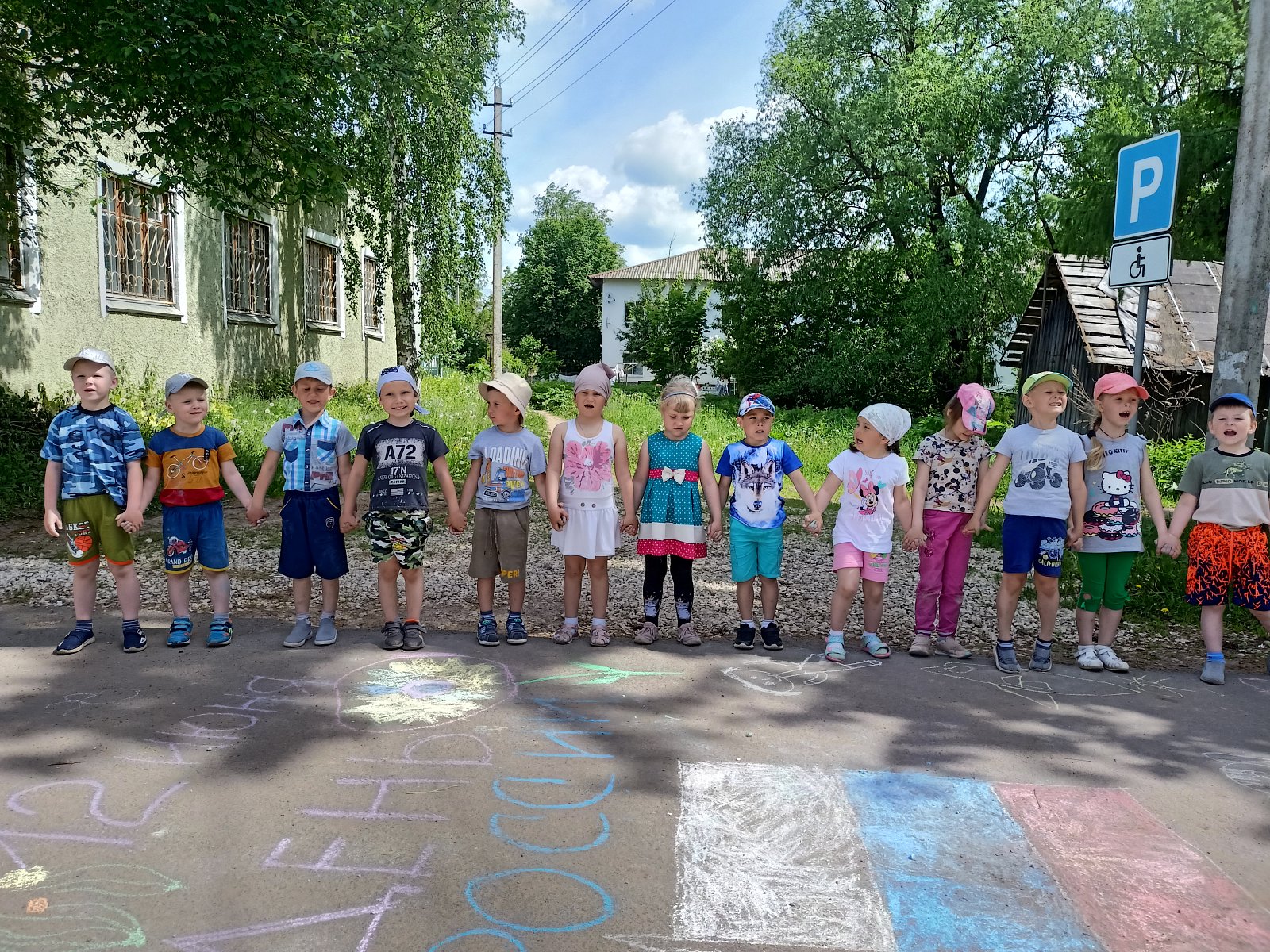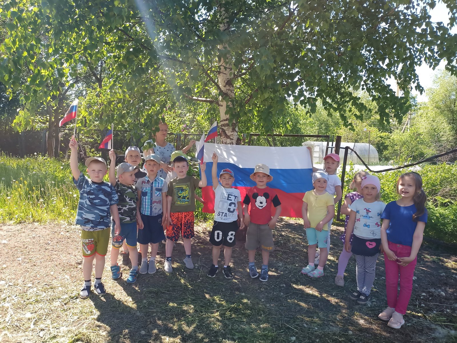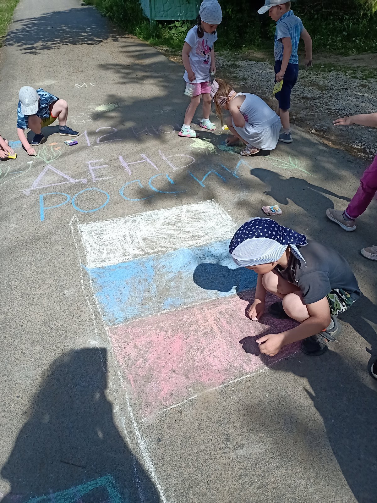Цель мероприятия — воспитание чувства патриотизма у дошкольников, уважения и гордости своей Родиной; — популяризация государственных символов РФ. Главной задачей мероприятия было заинтересовать, увлечь детей и конечно же, чтобы оно было ещё и познавательным. Мероприятие началось с прослушивания Гимна нашей страны. Дети, выразили своё уважение к российскому гимну и прослушаем его как положено, стоя. В процессе игры ребятам необходимо было найти задание и выполнить его, чтобы перейти к следующему этапу. Дошкольники разделились на две команды: «Русские богатыри» и «Русские красавицы». Дети решали различные задания, показали свои знания о России, ее символах, известных людях. В конце игры, дошкольники смогли найти флаг России. Игра прошла весело, интересно и продуктивно. Закончилось мероприятие рисованием на асфальте «День России!»