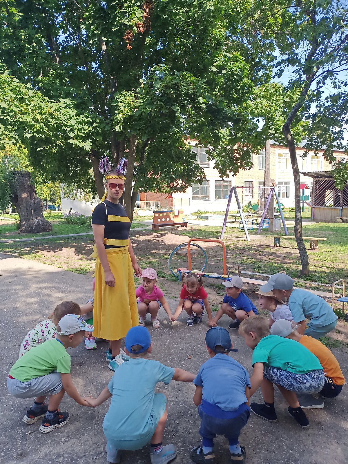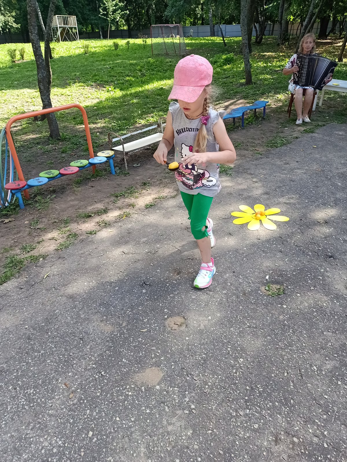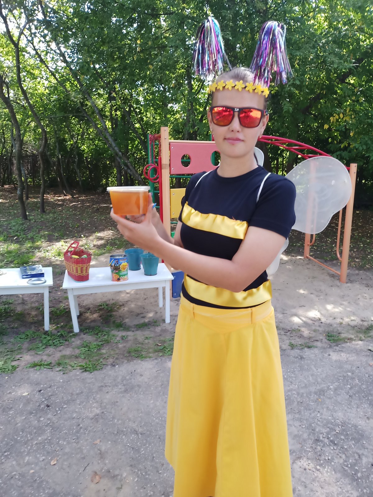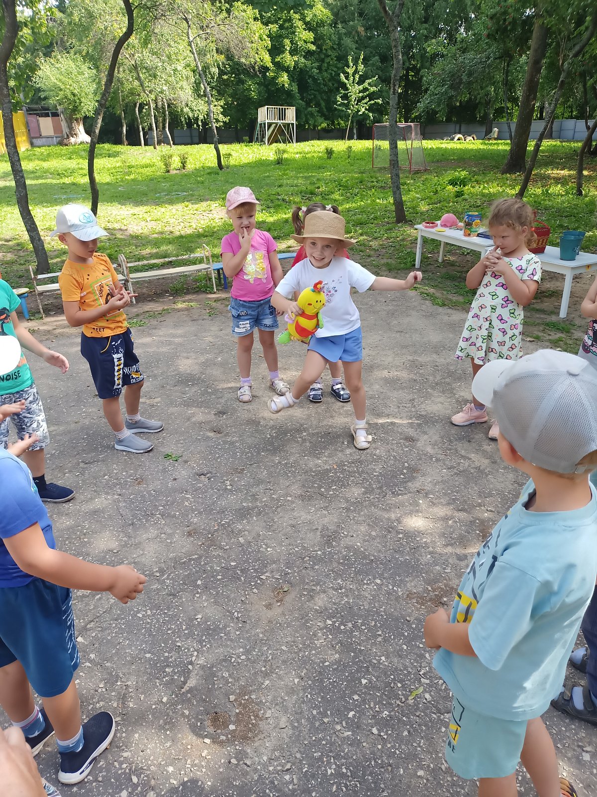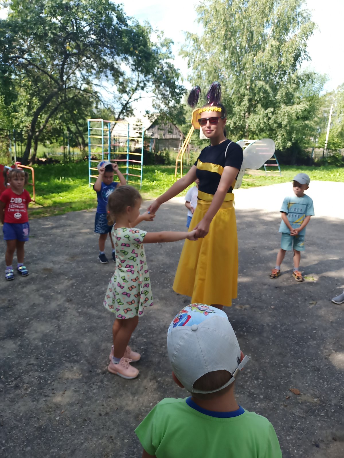 Дети пели песни про лето. На празднике игр было много: "Кто быстрее соберет цветы", « Соты», "Кто больше принесет нектара", «Найди свой улей», «Медведь и пчелы». А игра «Передай пчелку» «очень развеселила ребят, ведь если не успел передать пчелу – танцуй. На прощание Королева Пчела принесла настоящего меду. Много радостных эмоций получили дети. Солнечная, теплая погода способствовала хорошему настроению!