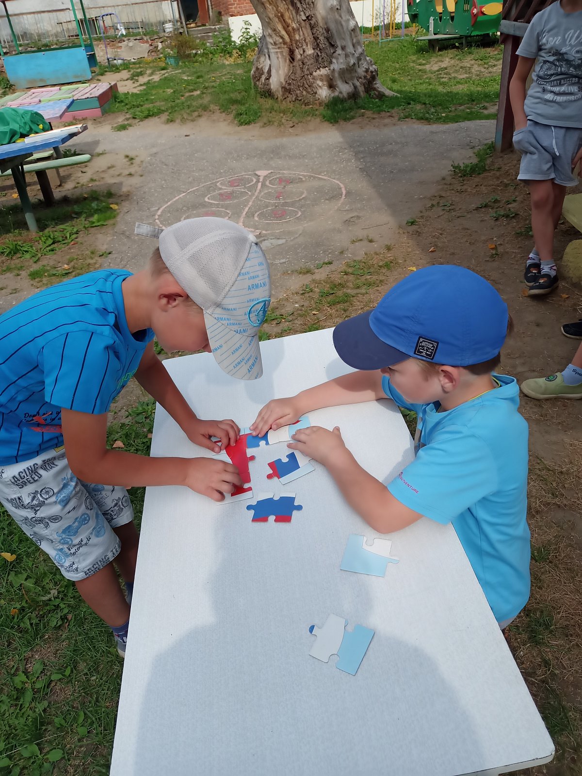 22 августа в старшей группе «Смешарики» прошла квест-игра, посвящённая Дню Российского флага. Цель: воспитывать у детей чувства патриотизма, любви к Родине; закреплять знания о символическом значении цветов флага нашей Родины; развивать физические качества. Пиратом был похищен флаг, который дети накануне повесили в музыкальном зале, и спрятан на территории детского сада. Чтобы найти флаг, дошкольники должны пройти многие испытания: собрать пазлы «Флаг России», найти среди разных флагов флаг России, отгадать разноцветные загадки (по цветам флага). На спортивной площадке ребята сумели преодолеть все преграды на своем пути: «Змейку», лабиринт, рукоход, спортивный комплекс и другие, показав хорошие физические качества. Дошкольники отлично ориентировались на территории детского сада и быстро находили пиратские задания. Дети отвечали на непростые вопросы об истории флага, его названии, читали стихи о флаге. Ребята сумели пройти все этапы и собрать флаг из шариков. Квест завершился тем, что за успешно пройденные испытания пират передал флаг России детям, после чего прозвучал победный марш. Мероприятие получилось интересное и познавательное. День Российского флага – это праздник свободы, мира и добра. Он символизирует единство всего нашего многонационального народа, напоминает, что все несут ответственность за настоящее и будущее нашей Родины.