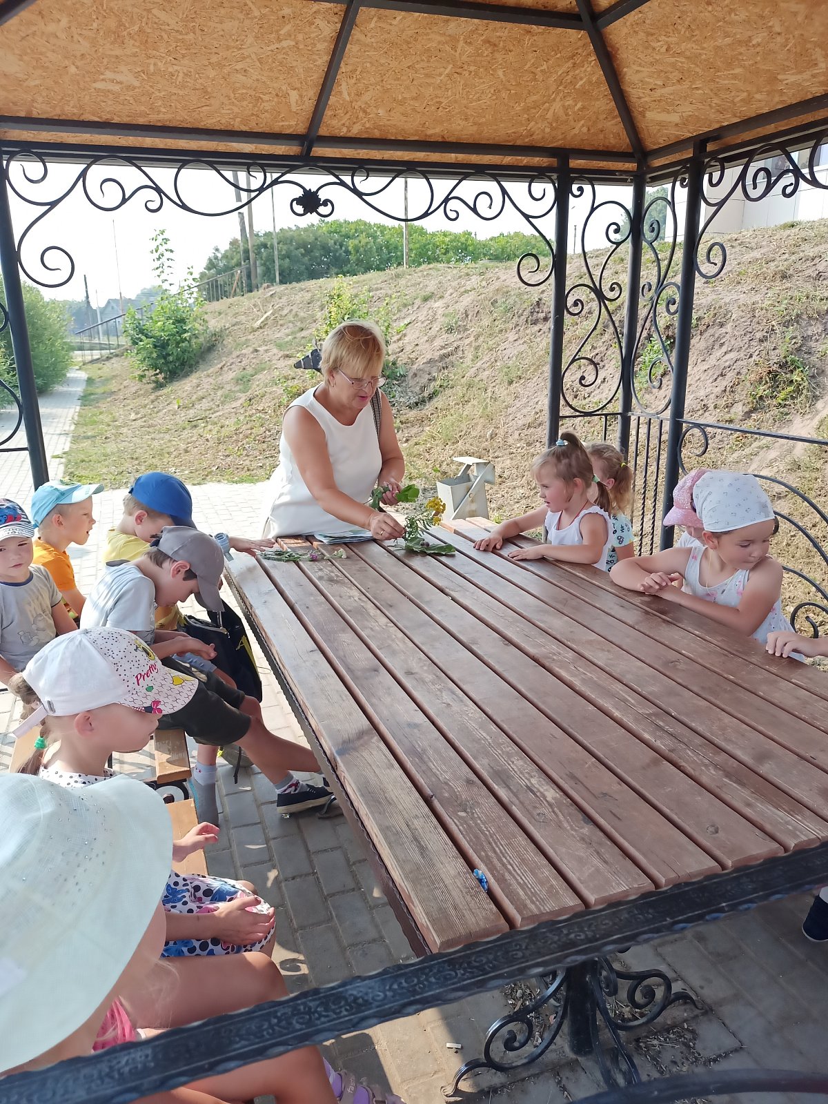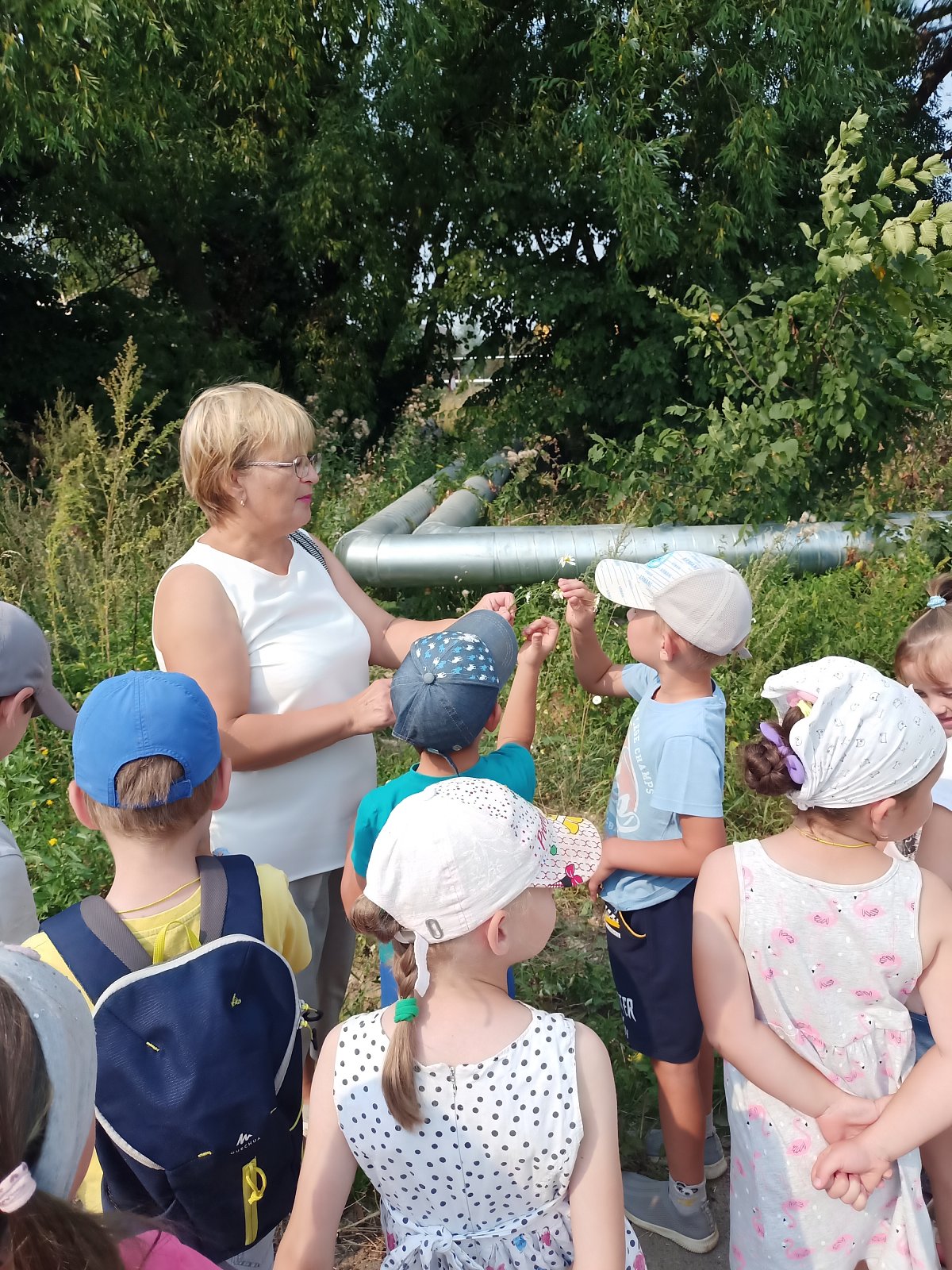25 августа ребята старшей группы «Смешарики» совершили удивительное «Путешествие в страну лекарственных растений», организованное работником Дома Культуры Шуваловой Светланой Викторовной. Она познакомила ребят с удивительными жителями растительного мира – лекарственными растениями. Светлана Викторовна поведала о том, почему они так называются, где растут, как правильно собирать их, какую пользу приносят человеку. Прогулка прошла по улице Первомайской, по мосту через пруд и закончилась в беседке, где дошкольники еще раз рассмотрели собранные ими растения, послушали про них стихи, отгадывали загадки и находили отгадки. Дети остались очень довольны и всю обратную дорогу делились впечатлениями .и знаниями о пользе лекарственных растений. Хотелось бы воспитать детей, которые не безразлично топтали бы луга и поля, а смогли увидеть красоту и пользу каждого цветочка, каждой травинки!