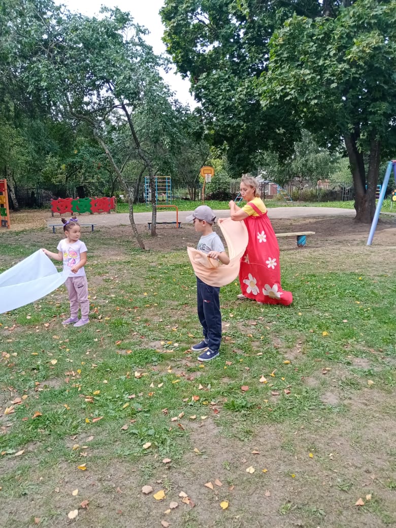 Хозяйка праздника познакомила дошкольников и с понятиями: полотно, холсты. А про хлебушек ребята и сами много рассказали. Ну, какой праздник без «Каравая»? Чтобы хлеб был на столе, ребята соревновались в «Уборке зерна», носили «мешки» с зерном на мельницу. В завершении праздника все станцевали «Каравай» и попробовали каравай на вкус.