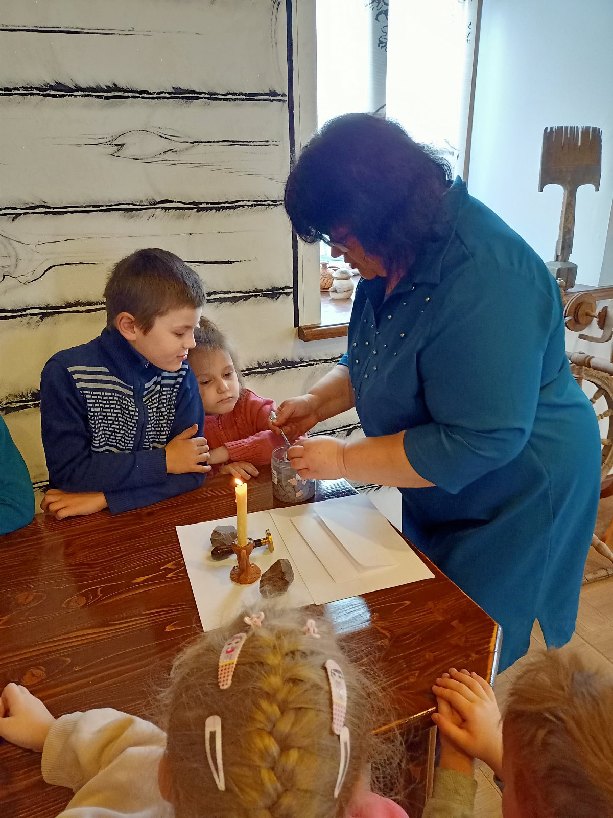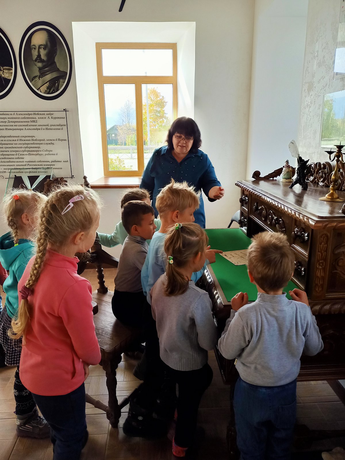 4 октября воспитанники старшей группы детского сада посетили музейно - выставочный зал имени М.М. Сперанского. Цель данной экскурсии – познакомить детей с выдающим великим деятелем Михаилом Михайловичем Сперанским. У дверей дошкольников приветливо встретила хозяйка этого музея Щегорцева Инна Александровна. Она постаралась в доступной форме рассказать детям о Сперанском, его детстве, заслугах перед Россией. Ребята рассмотрели экспонаты старины: лапти, одежда, прялка, сундук, старинные монеты и многое другое, представленные в музее. Дети увидели чернильницу и гусиные перья, которыми писали в старину. Особенно заинтересовал дошколят макет села Черкутино в далеком прошлом. Не обошлось и без сюрпризов, которые Инна Александровна всегда устраивает для детей.