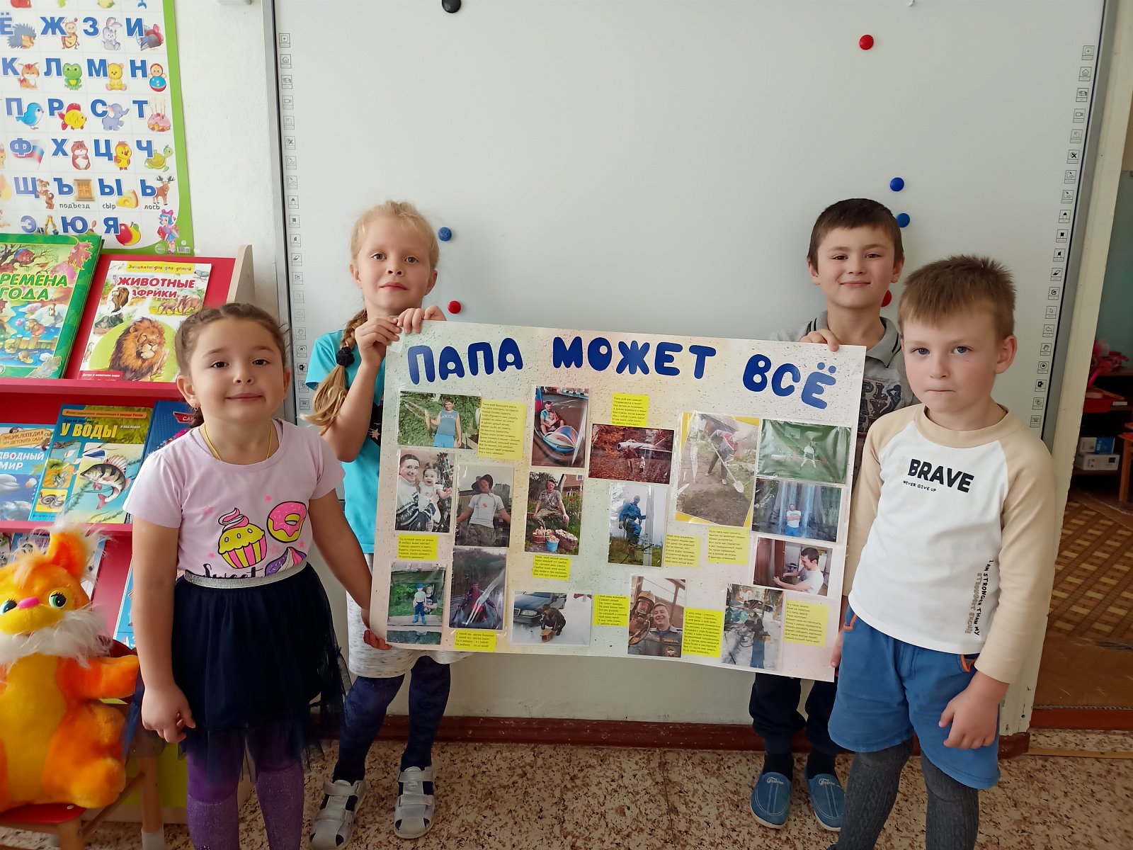 Именно поэтому в 2021 году указом Президента России учреждён новый праздник – День отца, который отмечается в третье воскресенье октября. Наш детский сад не остался в стороне от этого события. В рамках празднования Дня отца в старшей группе 14 октября прошли мероприятия, посвящённые празднику: было проведено тематическое занятие, на котором дети рассказывали о своих папах, оформили фотовыставку «Папа может все…» ", сделали поздравительные открытки для пап.