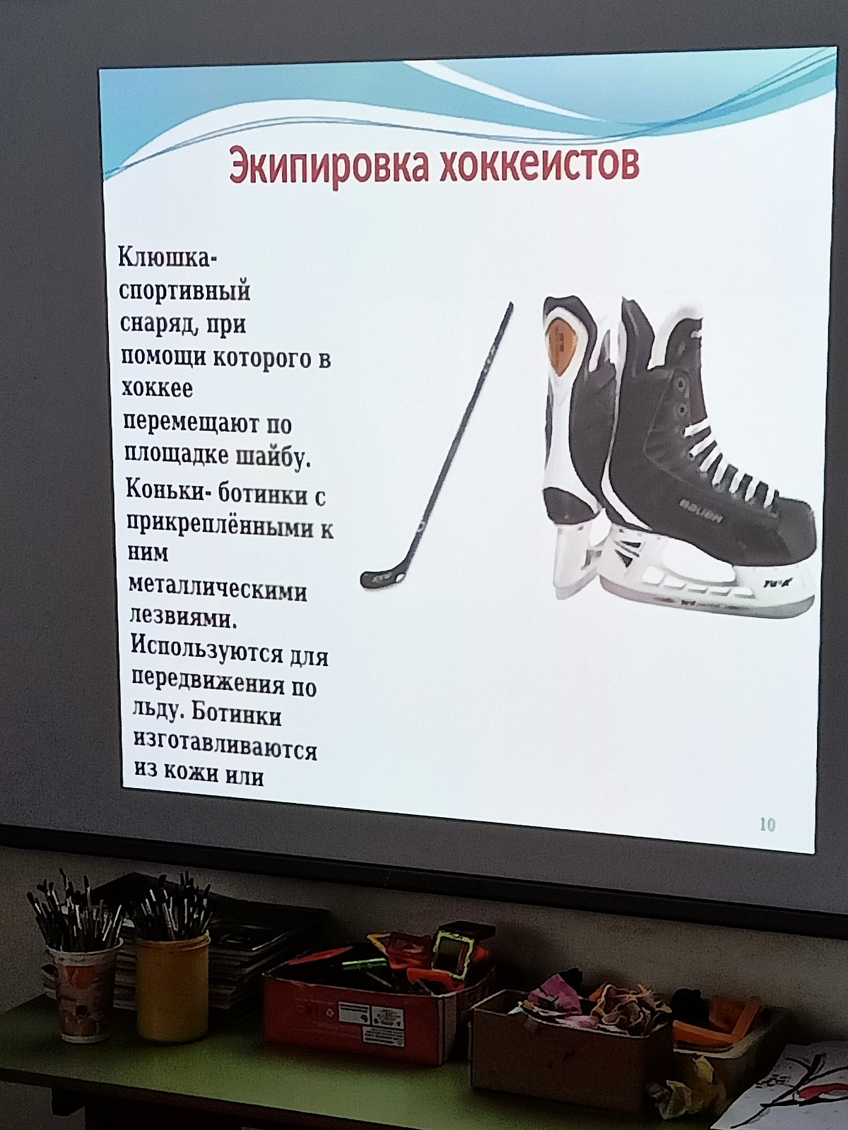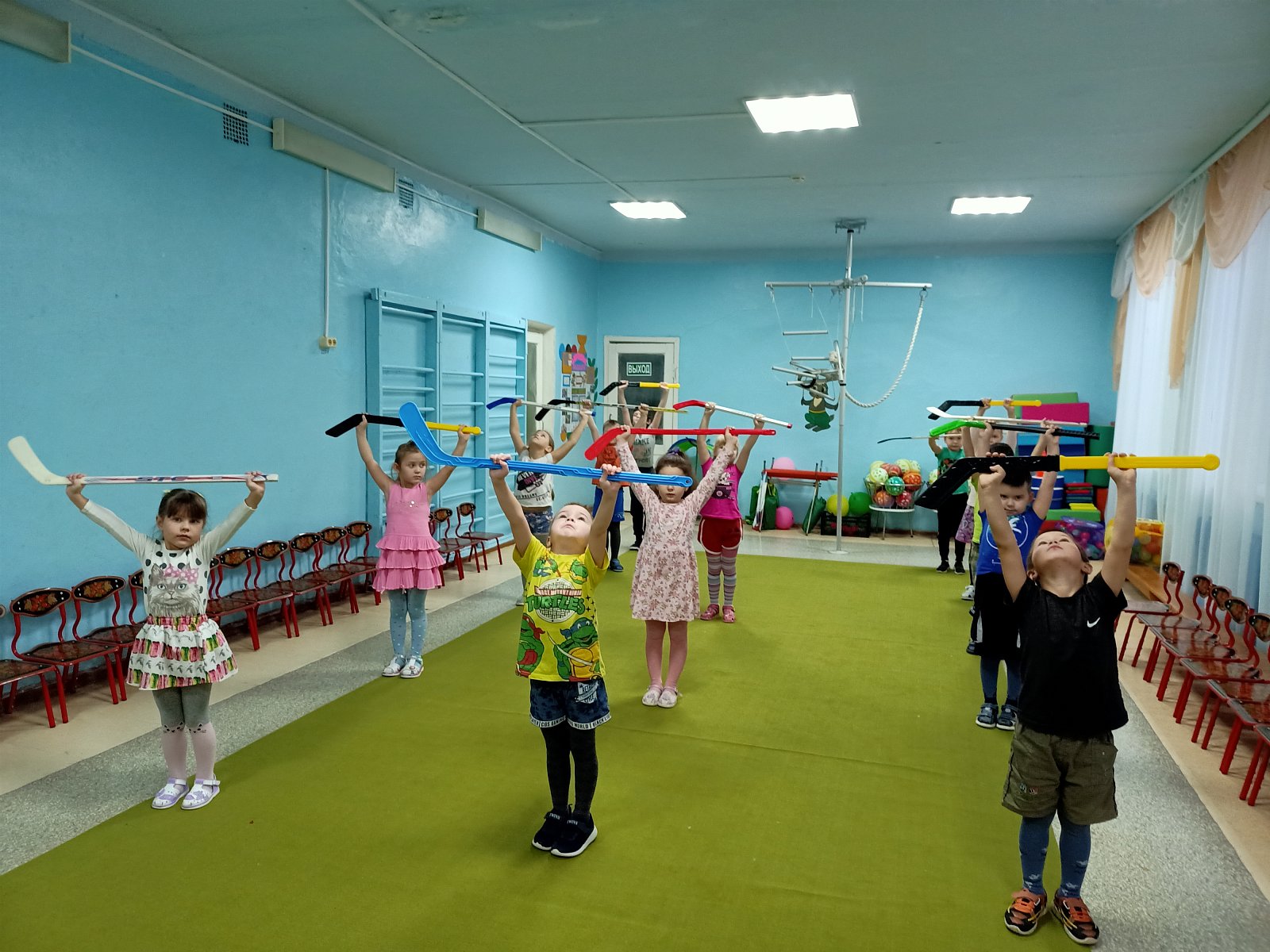 Утром ребята пришли в сад со своими клюшками, с которыми и прошла утренняя зарядка. Посмотрев презентацию, дети много узнали об этом виде спорта: познакомились с историей хоккея, с правилами игры, узнали о ледовых спортивных сооружениях. С одной стороны хоккей – это труд, выносливость, дисциплинированность, терпений, ловкость. А с другой – очень интересная, захватывающая игра!