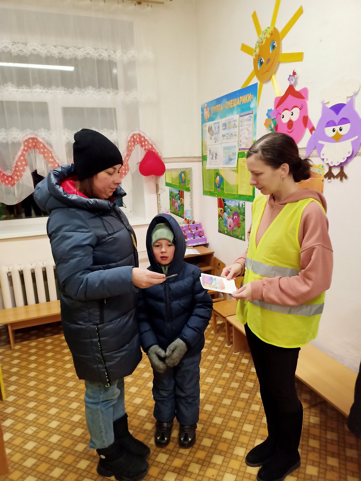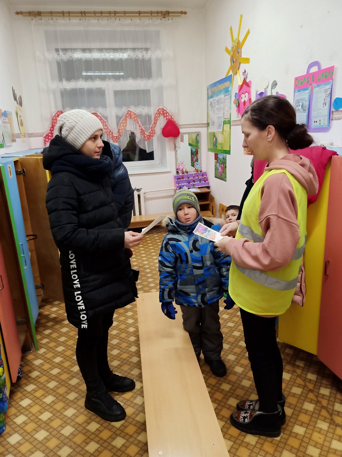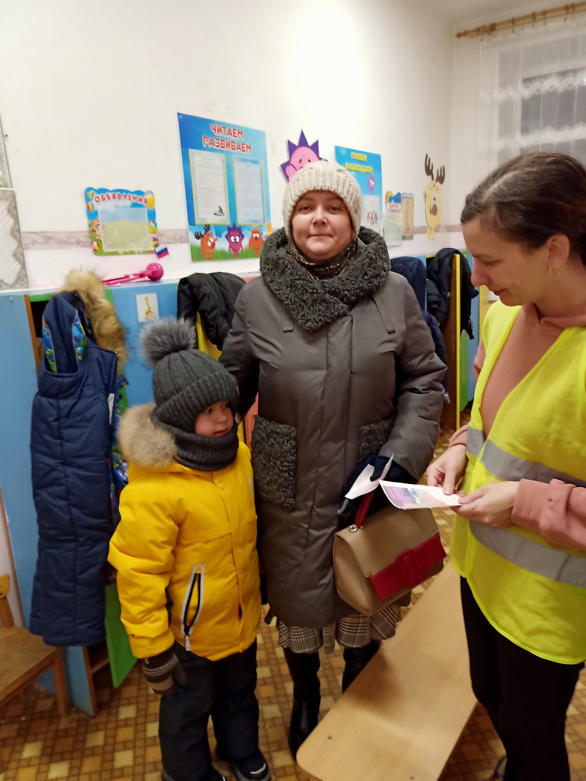 С наступлением холодного сезона дни становятся совсем короткими, и тёмное время суток значительно преобладает над светлым. В таких условиях совсем не лишним для любого пешехода будет «обозначиться» при переходе проезжей части или вблизи от неё, «засветившись» от лучей автомобильных фар. Родительский патруль напоминал родителям о необходимости наличия на одежде ребенка в тёмное время суток светоотражающих элементов и вручил им буклеты.