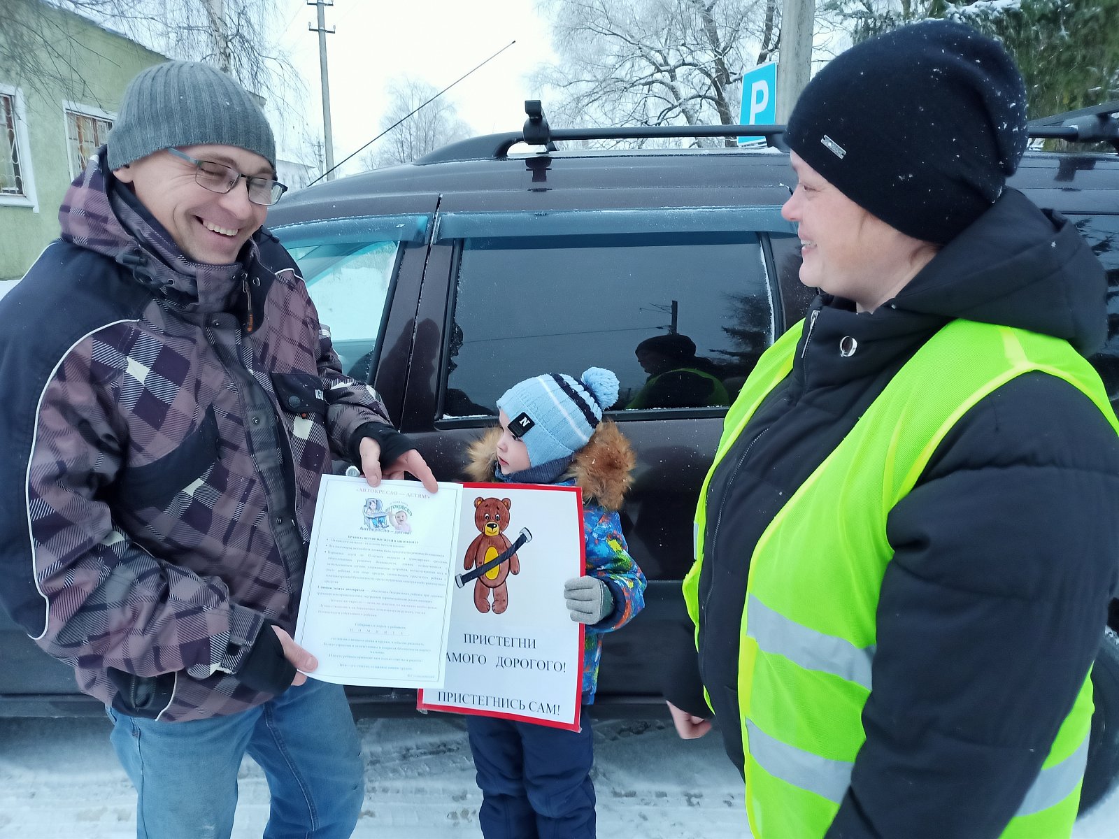 Вручали родителям памятки «О профилактике детского дорожно-транспортного травматизма», ведь именно использование детского удерживающего устройства - самый простой и надежный способ сделать поездку ребенка в автомобиле комфортной и безопасной.
