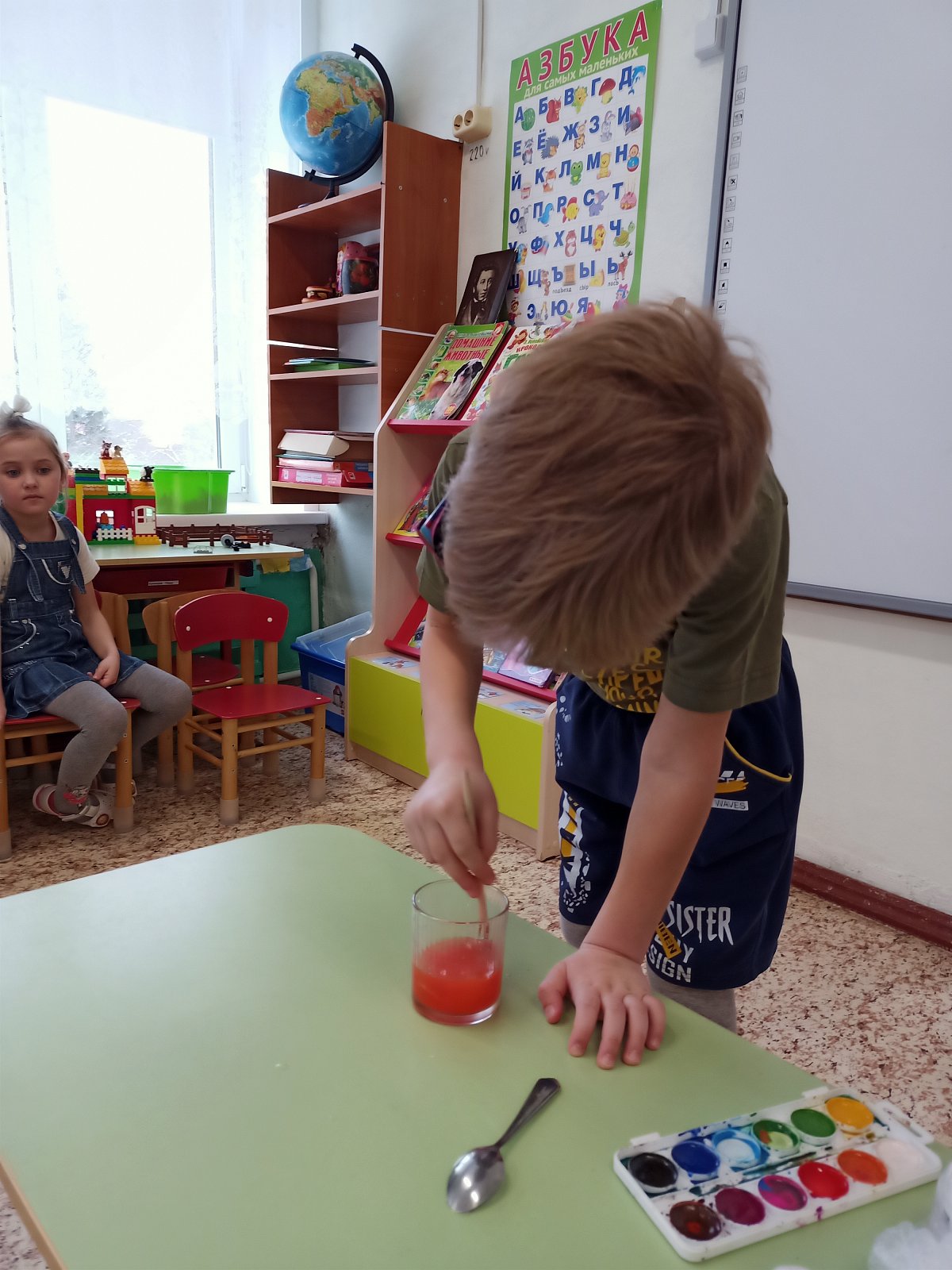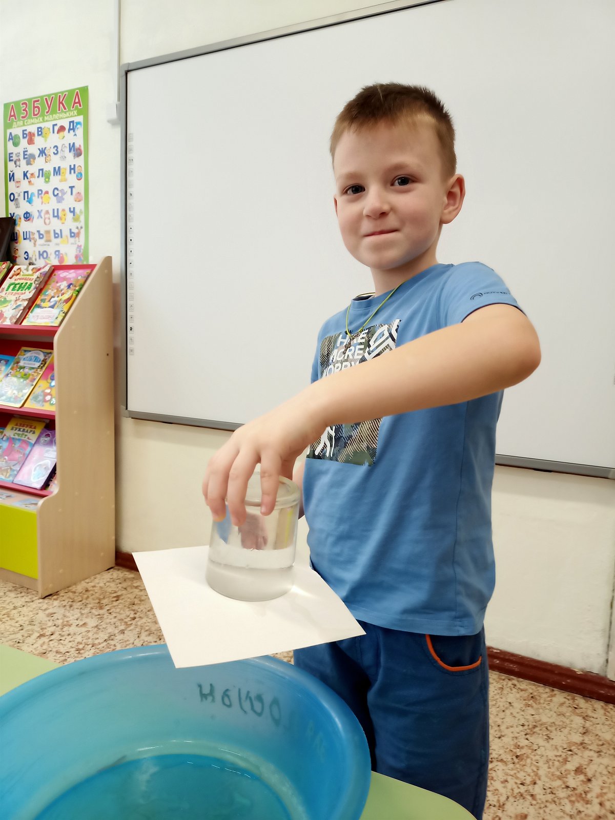 Дошколята провели опыты: «Тонет, не тонет», "Переворачивали стакан с водой", "Воздушным шариком примагничивали лист бумаги"