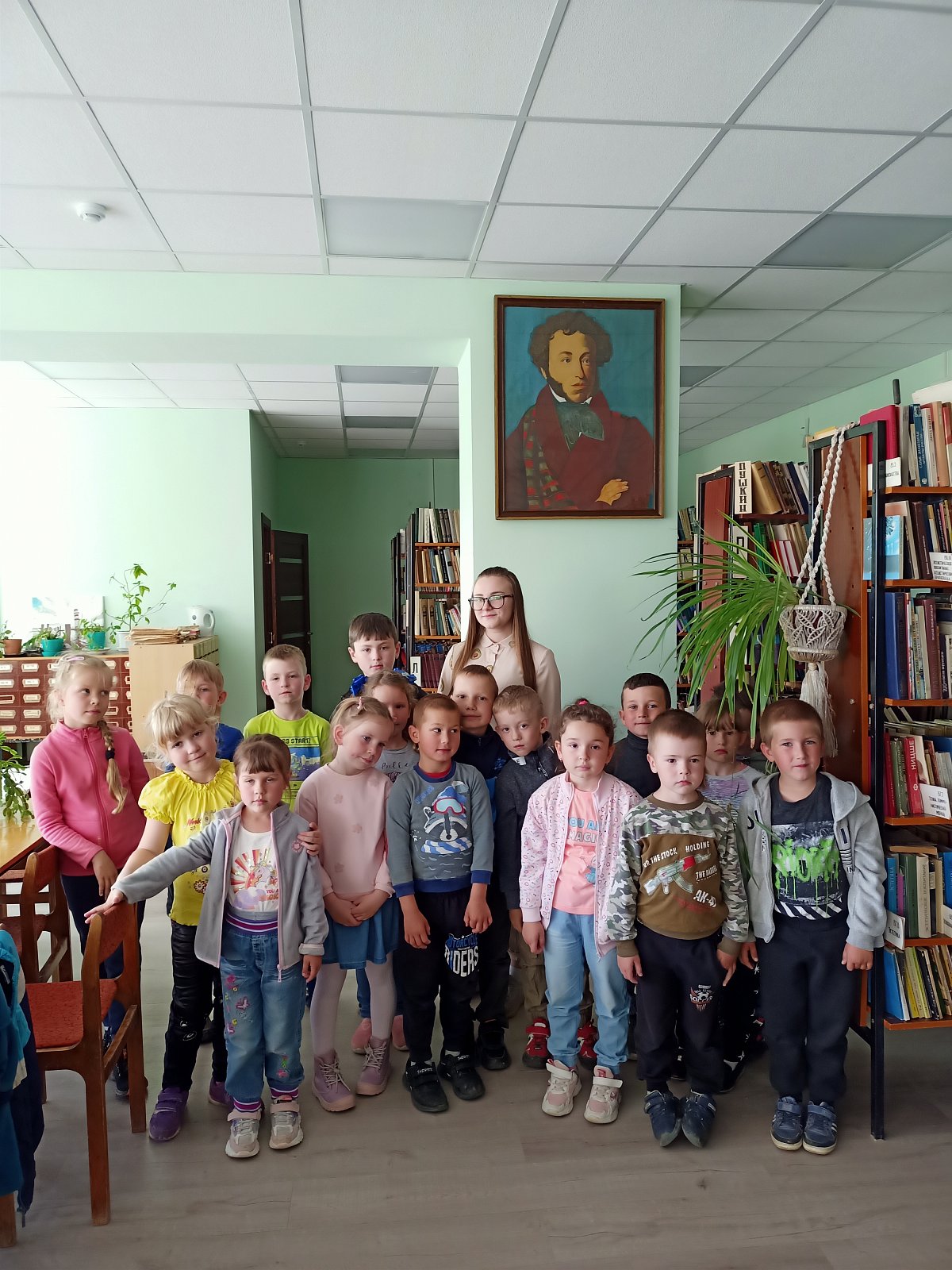Культурное событие, посвященное дню рождения великого поэта и сказочника А. С. Пушкина, мы провели в излюбленном месте – в сельской библиотеке, где нас радушно встретила Вероника Владимировна, наш библиотекарь. На центральной стене ребята сразу увидели портрет великого поэта.