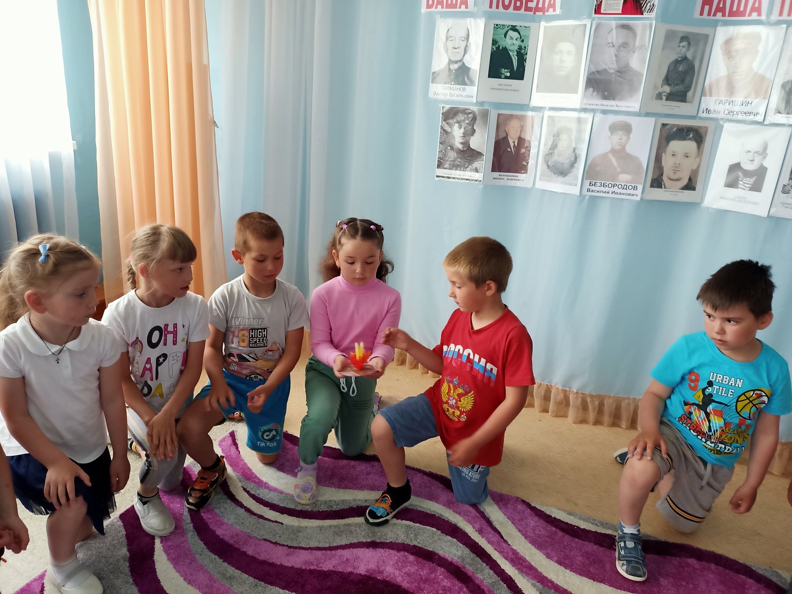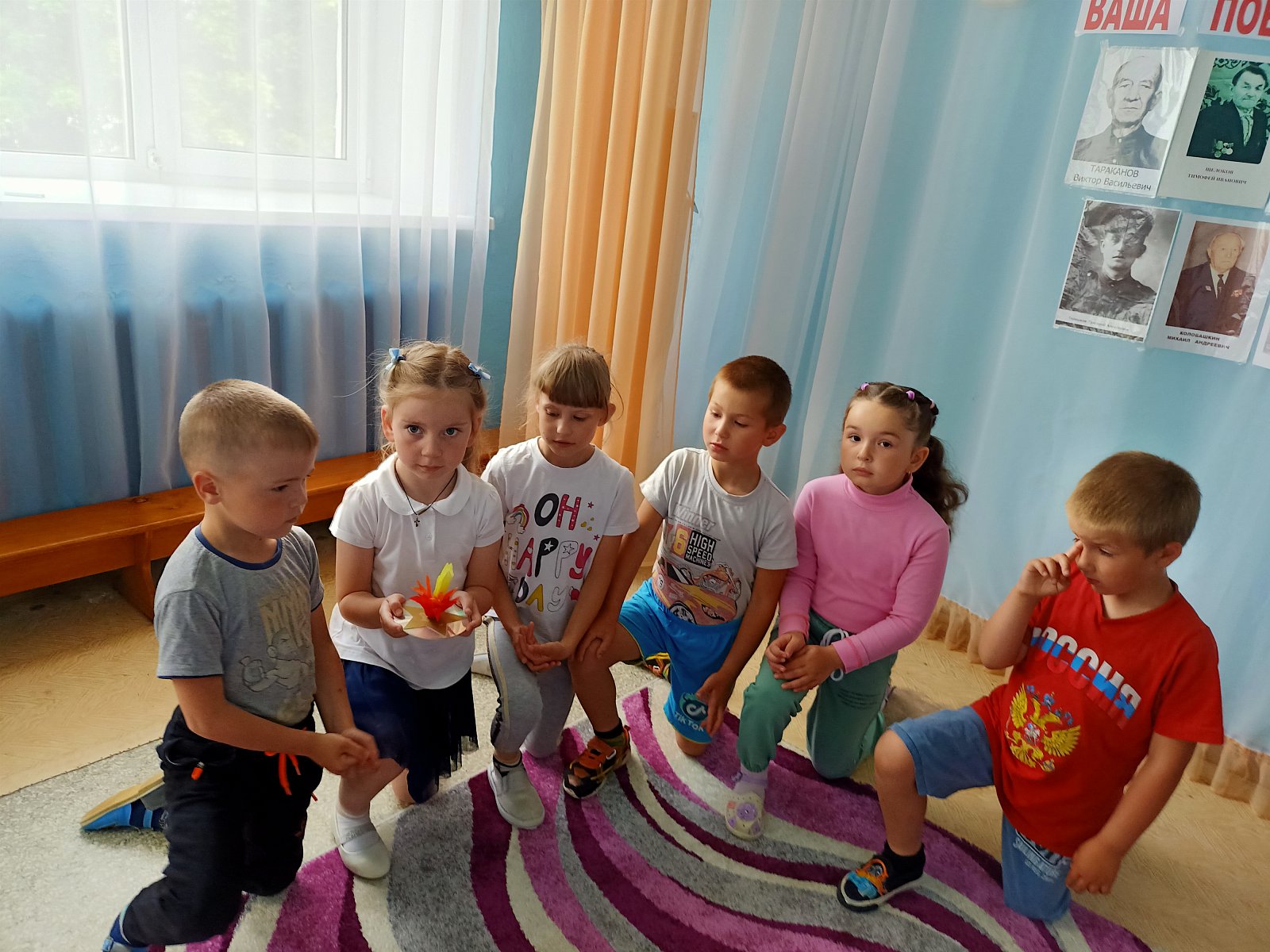 В старшей группе «Смешарики» в День памяти и скорби, посвященный началу Великой Отечественной войны, мы провели литературно – музыкальное мероприятие под названием «Ваша победа – наша память». Ребятам рассказали о вероломном нападении фашистских войск, о долгих и тяжелых годах войны. В исполнении детей звучали военные песни и стихи. Дошкольник исполнили танец «А закаты алые». Педагоги и воспитанники почтили минутой молчания тех, кто воевал и отдал свои жизни за нашу свободу. Также в этот день ребята присоединились к всероссийской акции «Свеча памяти». В конце мероприятия дошкольники почтили минутой молчания тех, кто воевал и отдал жизни за нашу свободу.