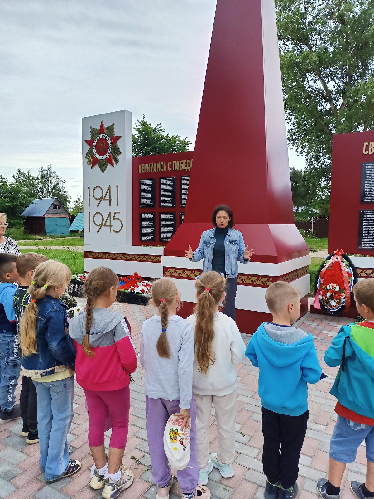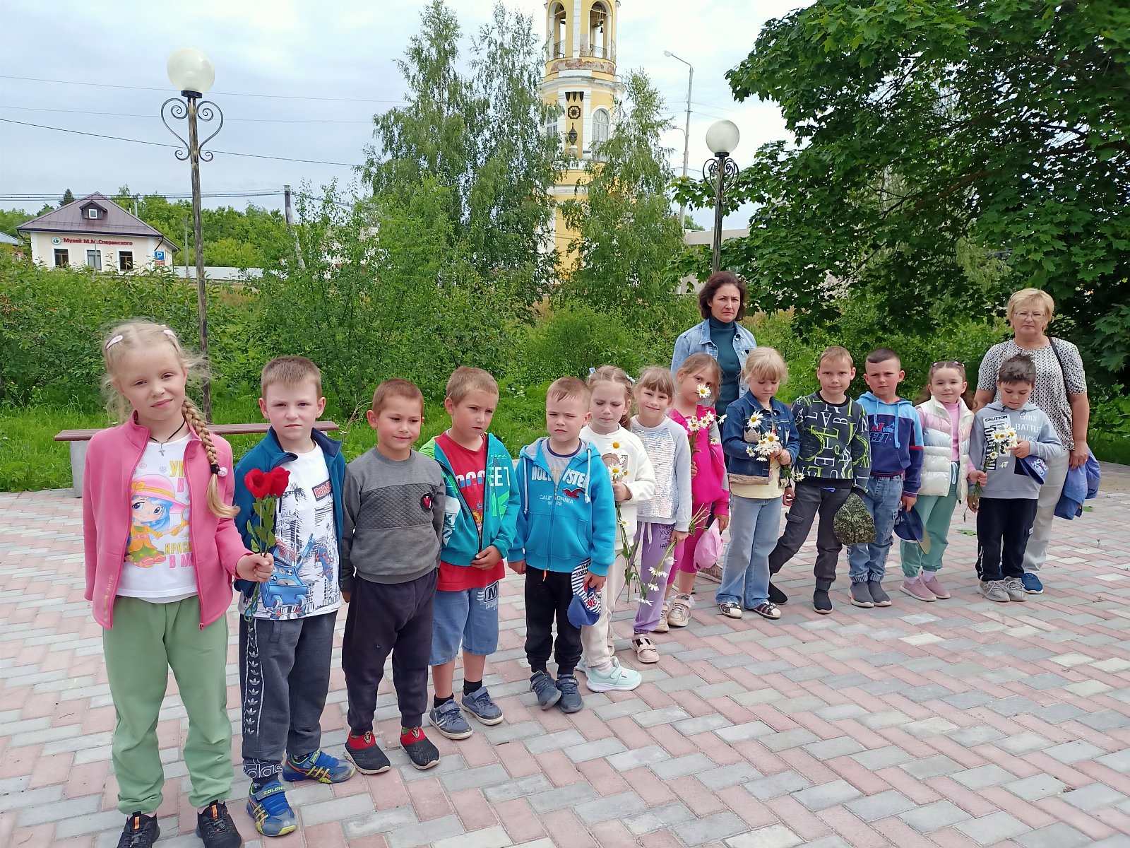 Вместе с работниками Дома Культуры воспитанники старшей группы сходили к памятнику погибшим воинам, послушали отрывок из поэмы Р. Рождественского "Реквием" "Помните" в исполнении Жиряковой Светланы Викторовны и возложили цветы.