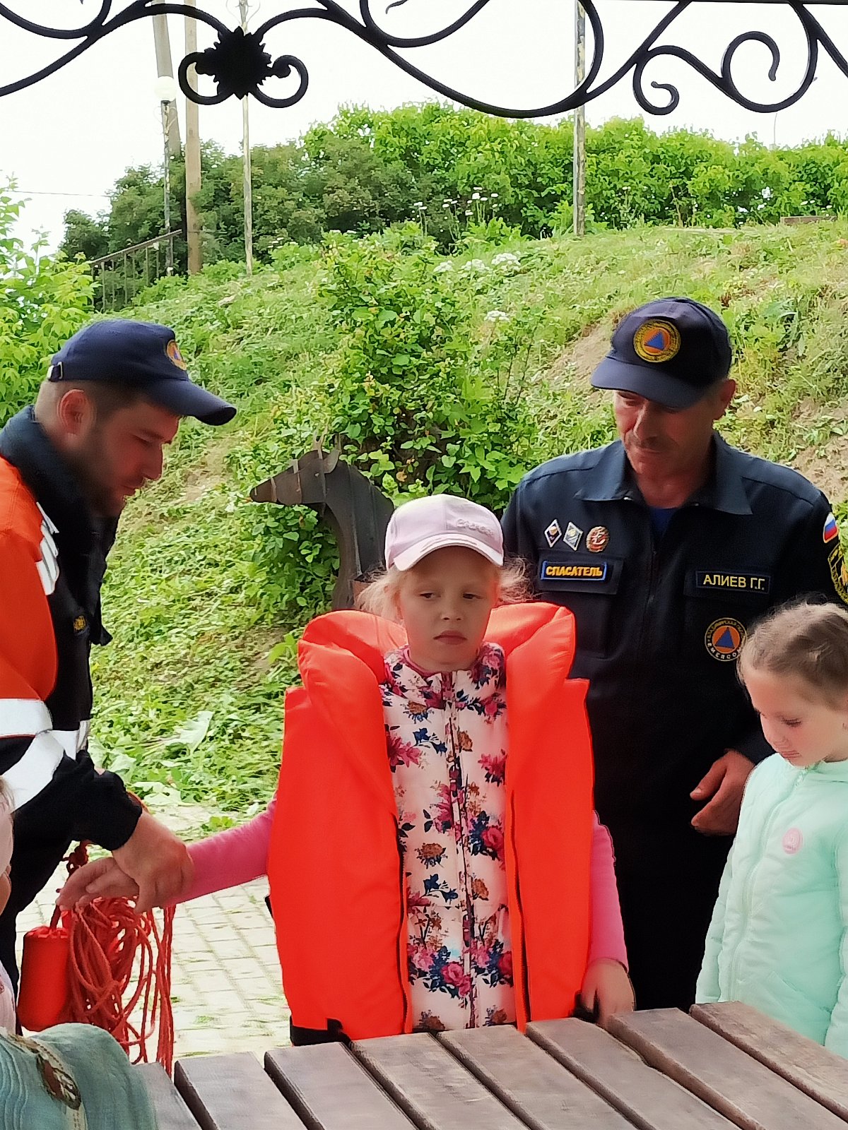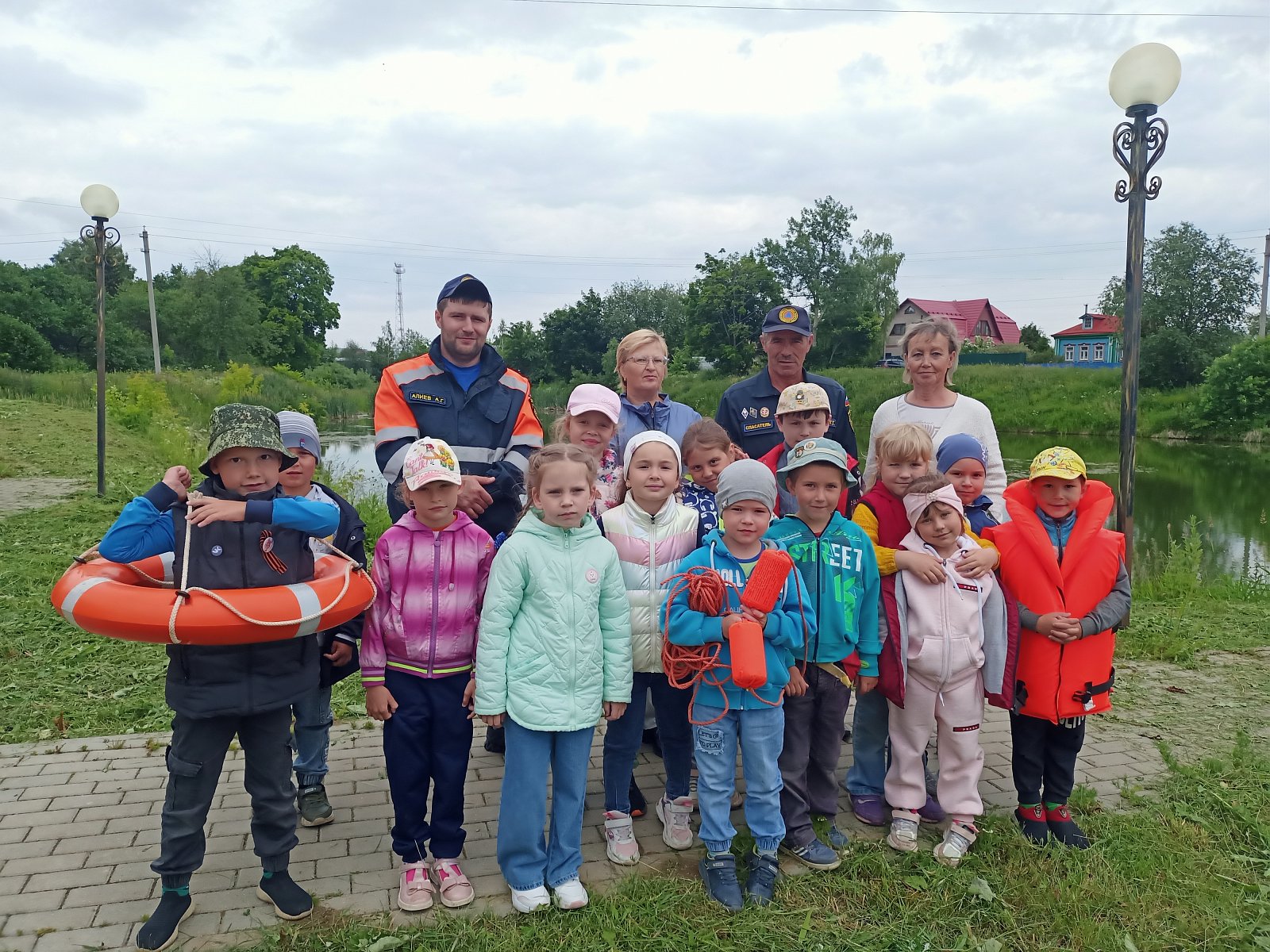 Много положительных эмоций детям доставила примерка спасательного круга и спасательных жилетов.
