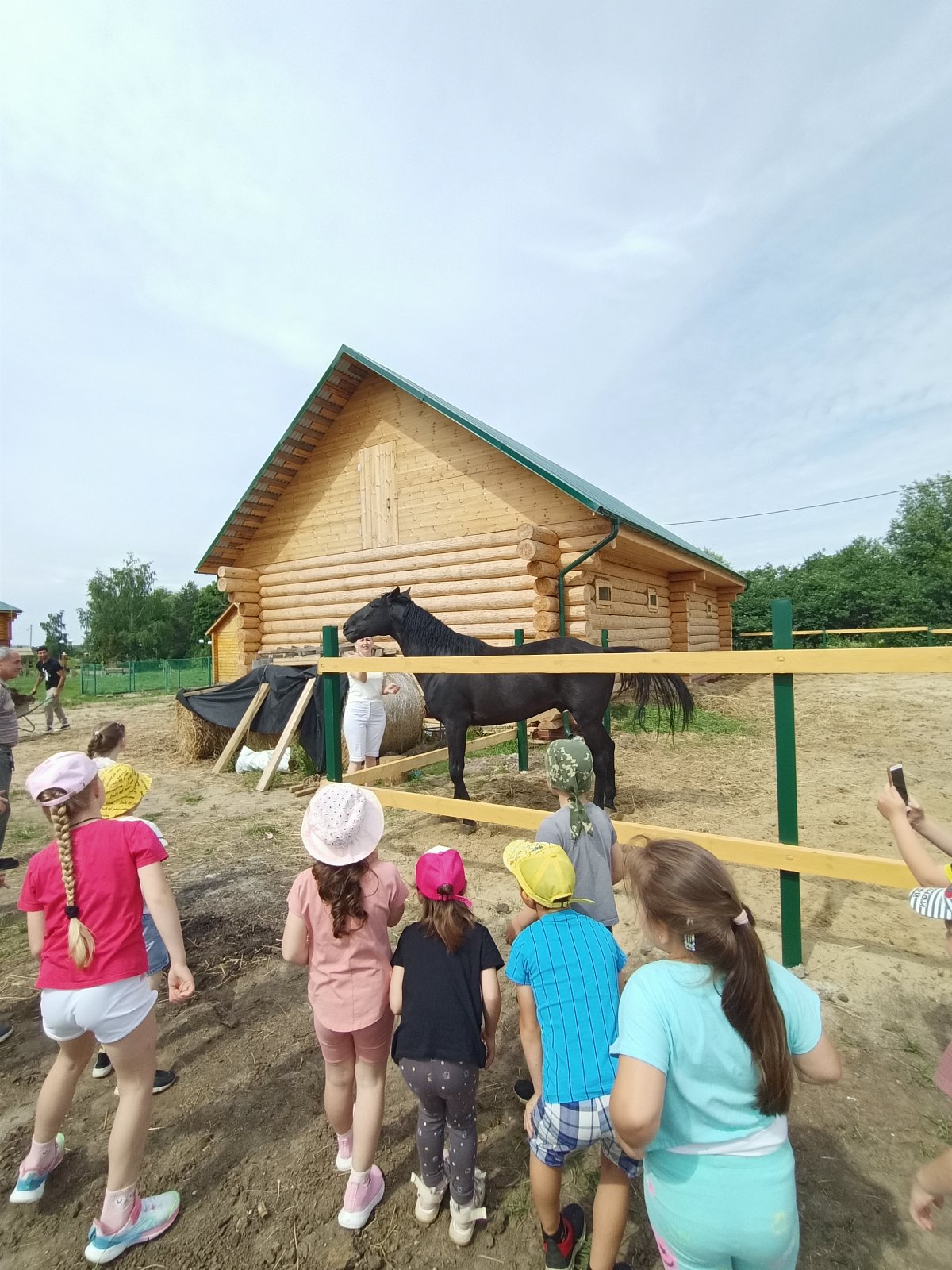 Приятным для ребят стало и общение с питомцами, которые живут при доме-музее: своенравным вороным конем Серласом, кроликами и псом Арахисом.