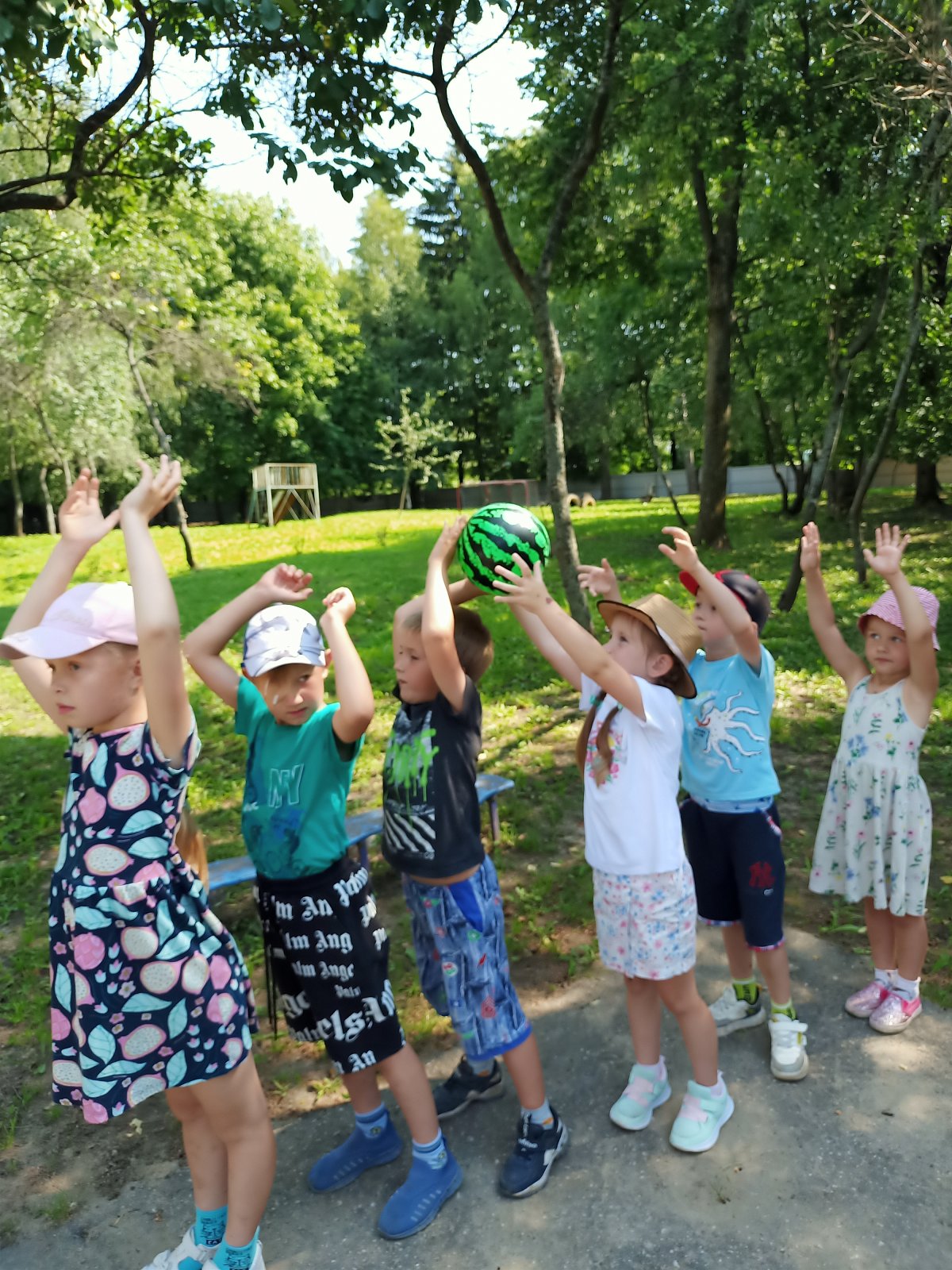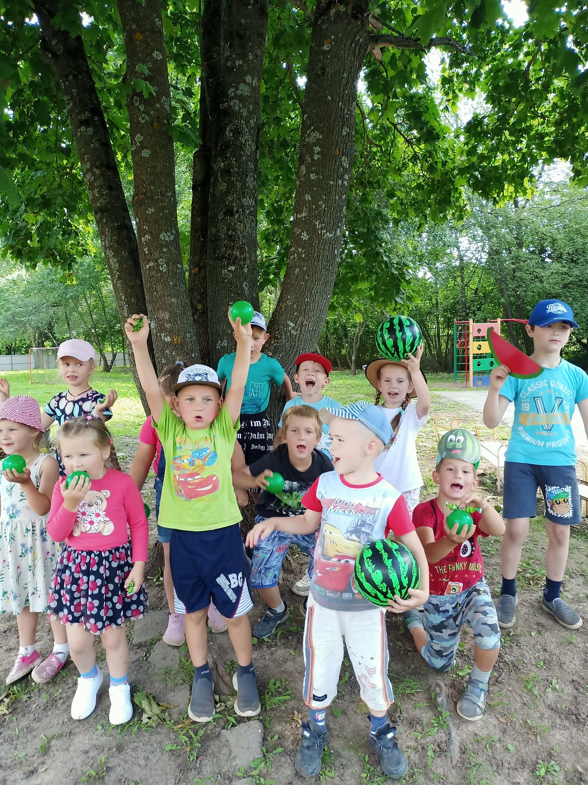 3 августа отмечается яркий и веселый праздник – День арбуза! Этот день посвящен излюбленной всеми ягоде, которая радует нас своим освежающим вкусом летом. Не остался в стороне и наш детский сад. В старшей группе «Смешарики» прошло развлечение «Веселый арбузник». Дети познакомились с увлекательной историей арбуза. Оказывается, его родиной является Африка, где арбуз до сих пор встречается в диком виде! Ребята узнали обо всех полезных и вкусных качествах этой сочной ягоды, о разных сортах арбуза. Они отгадывали загадки о форме и цвете арбуза, о его сладком мякоти и больших черных семечках, рисовали и делали поделки, воплощая свои представления о летнем вкусе арбуза. И, разумеется, не обошлось без веселых конкурсов: «Красавец арбуз», «Похвали арбуз» и спортивных эстафет»: «Пронеси арбуз в ложке», «Арбузные гонки», «Арбузный боулинг»». Все дети с удовольствием участвовали в арбузных эстафетах, где не только соревновались в ловкости и силе, но и проявили чувство дружбы и умение действовать в коллективе. Ребята получили настоящий заряд бодрости и веселья!