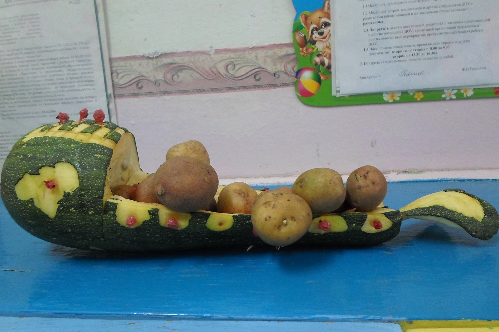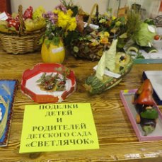 Все ребята приняли участие в выставке. Некоторые участники проявили свою фантазию и творчество и изготовили поделки из овощей и фруктов.