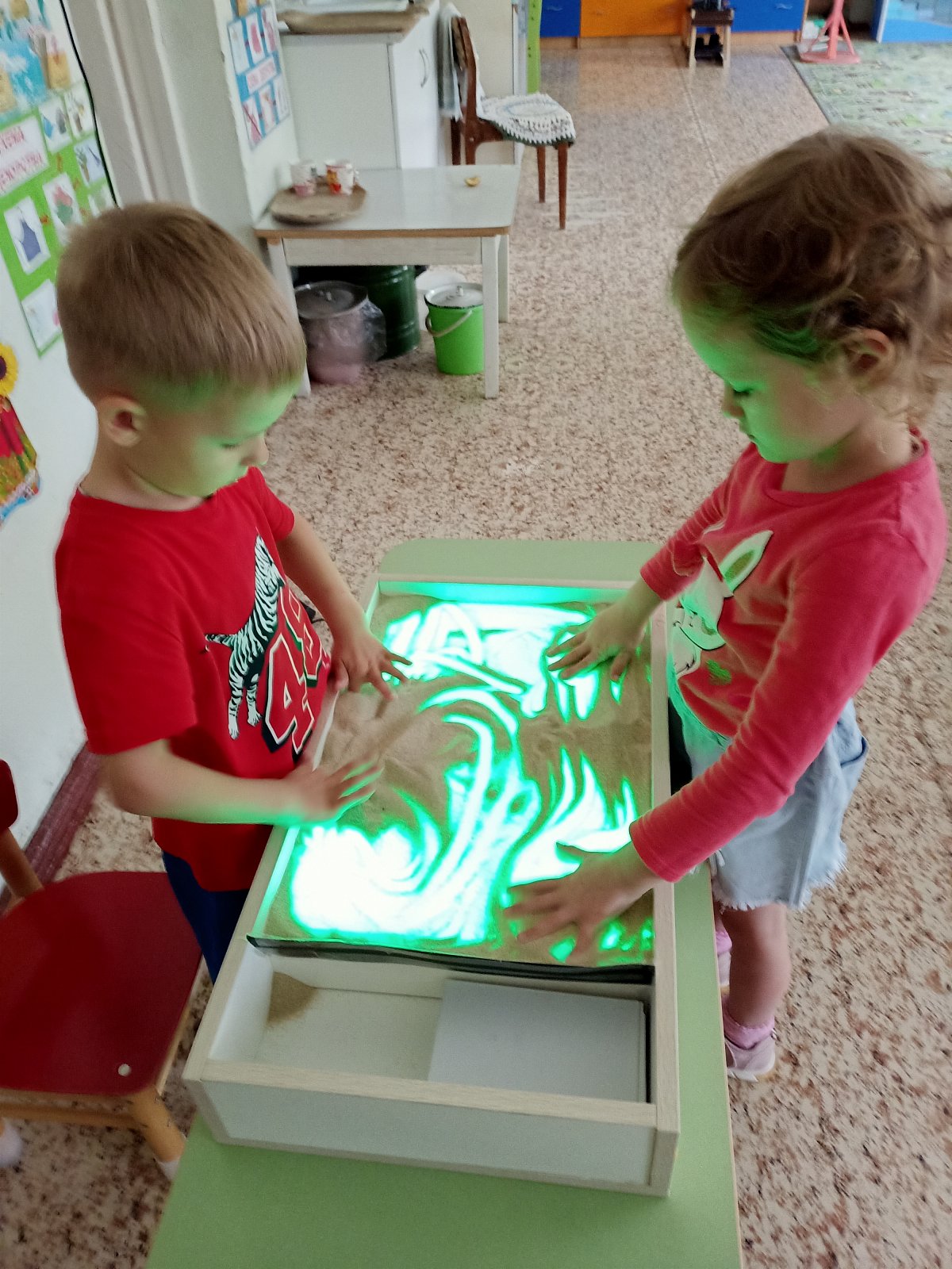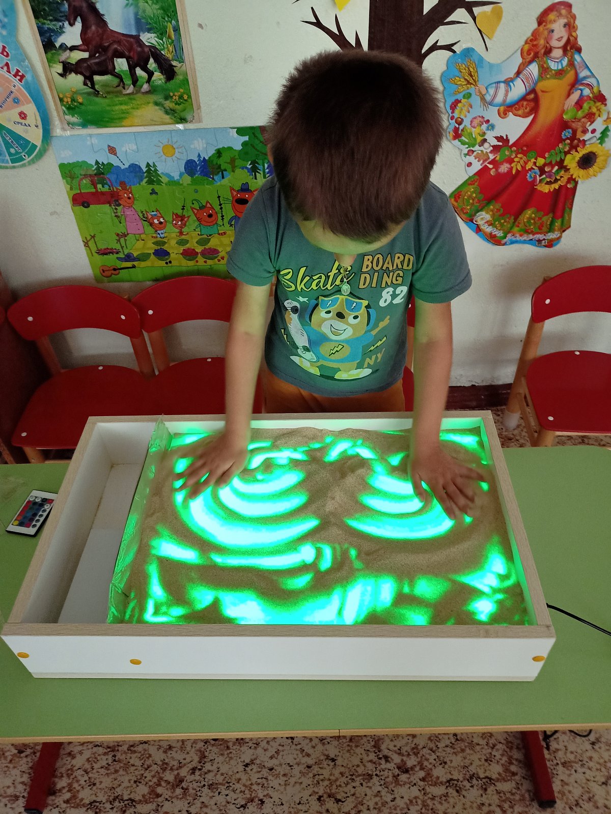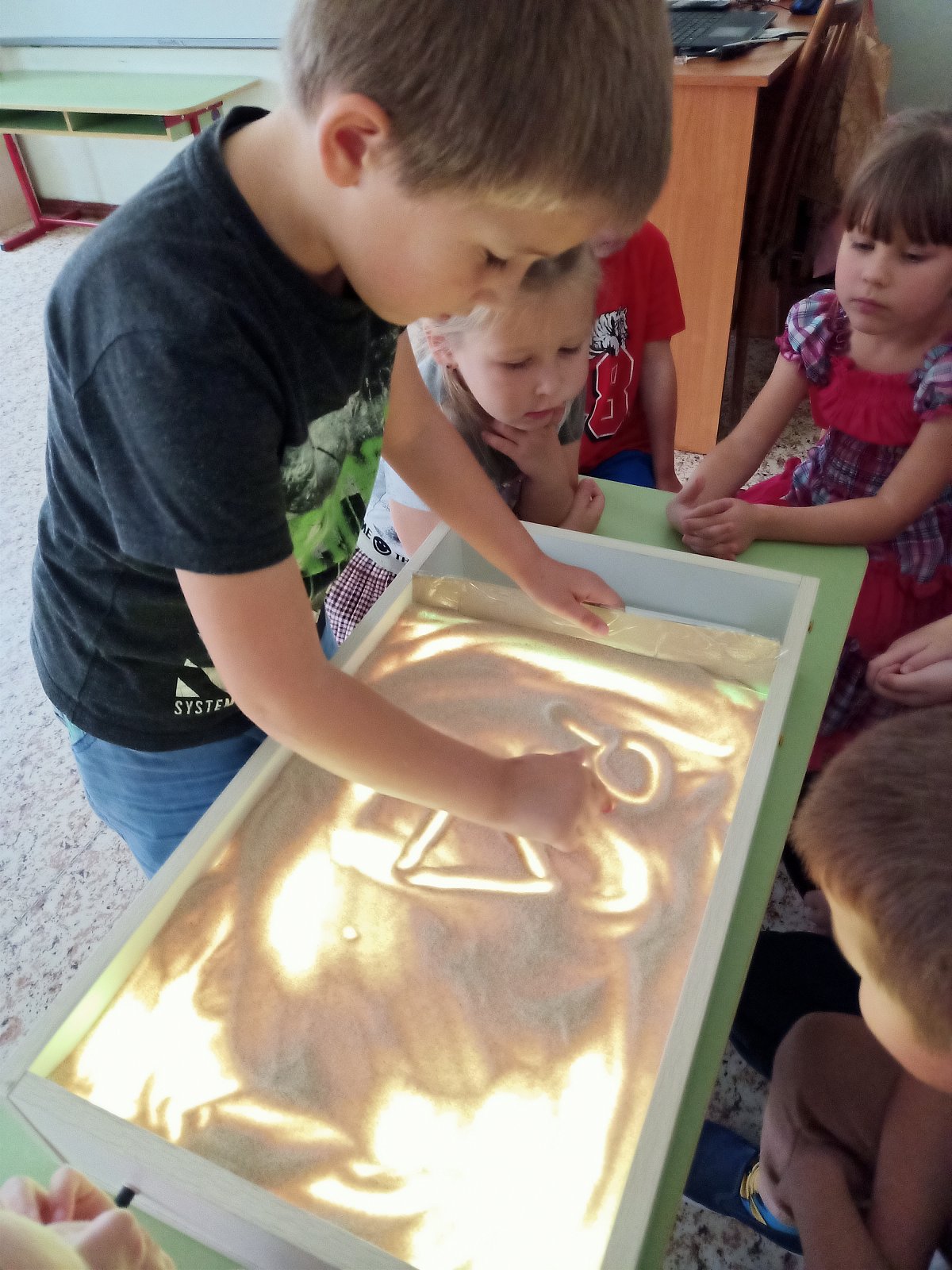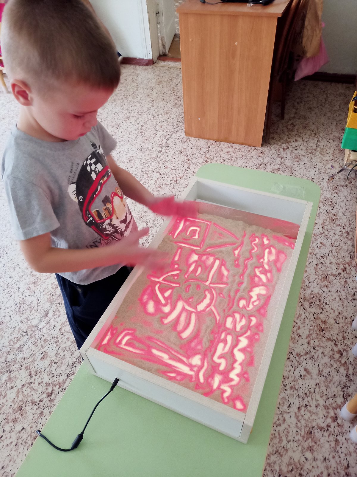 Одним из любимых занятий детей является рисование песком на световом столе. Песочная арт-терапия оказывает положительное влияние на развитие речи, мышления, познавательных процессов и творческих способностей детей.