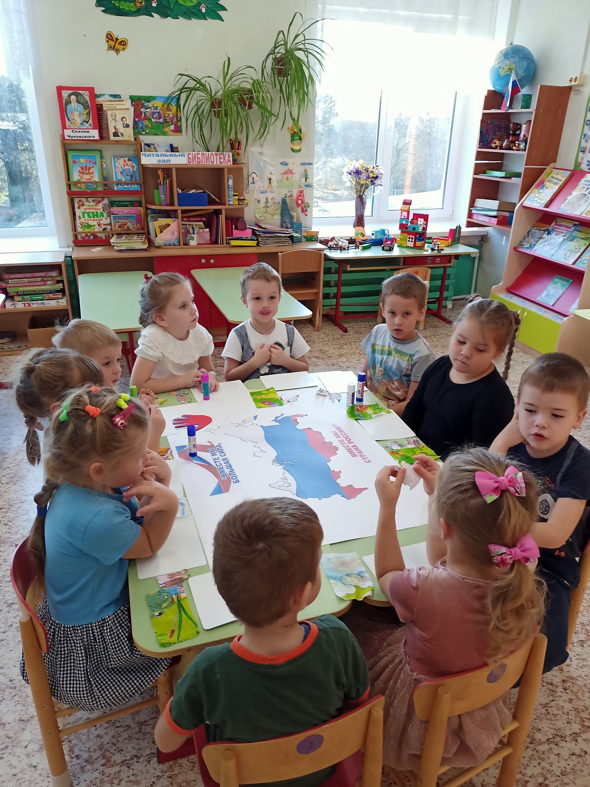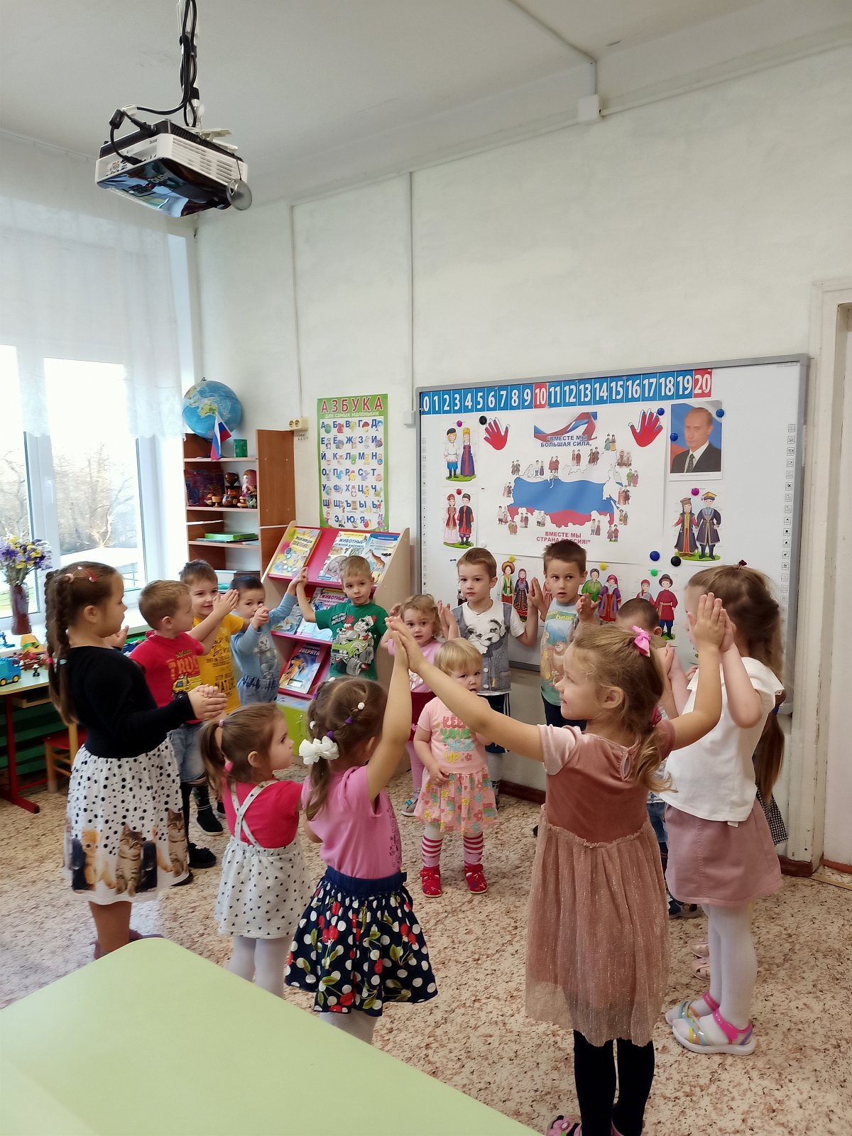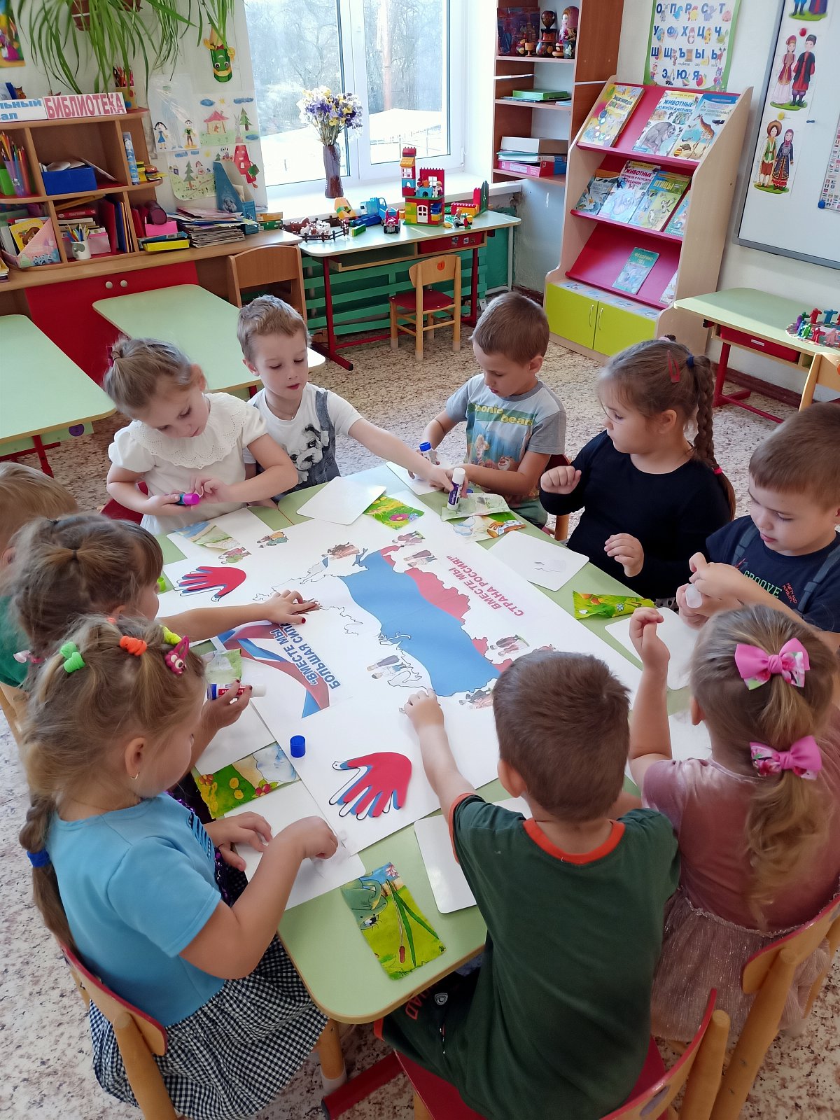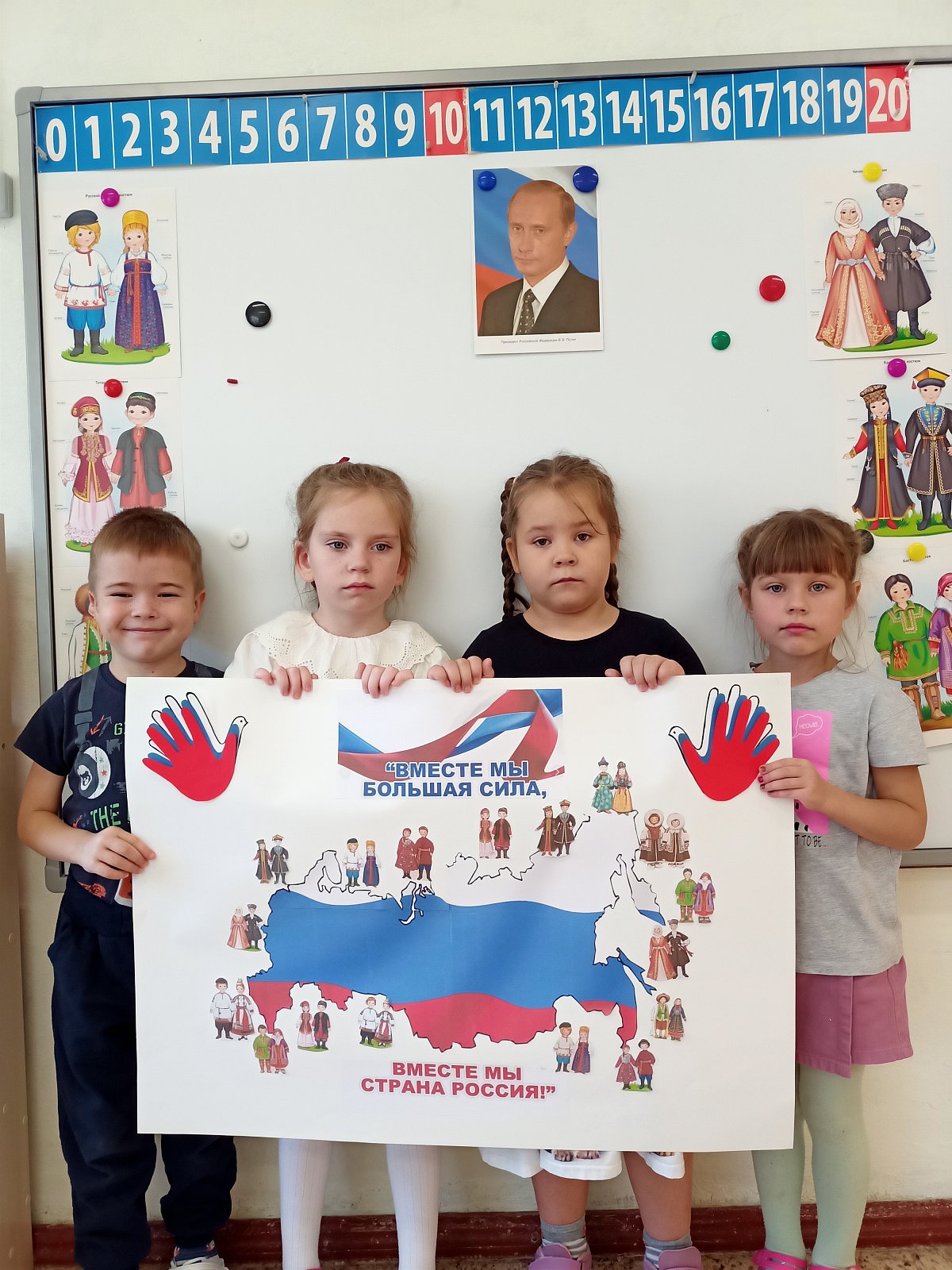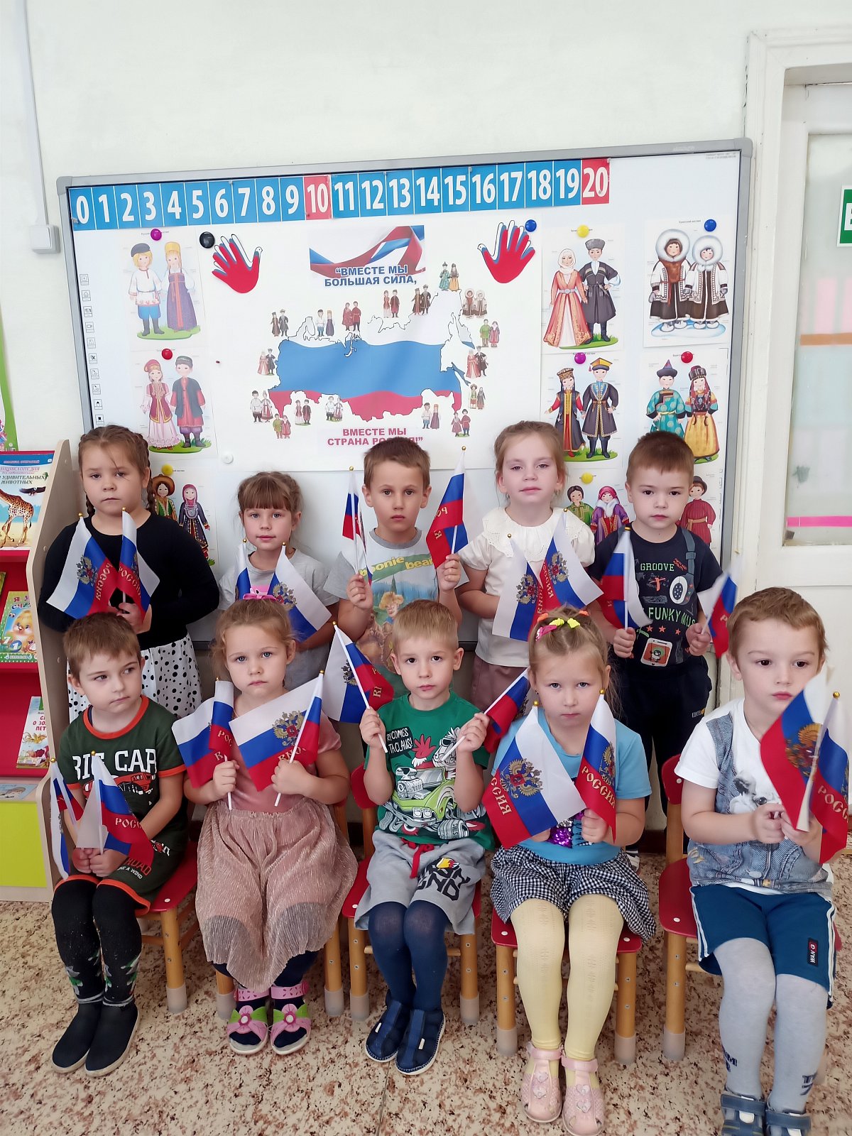 Дети познакомились с историей возникновения праздника, подвигами наших предков во имя независимости Родины. Дошкольники узнали о том, как красива и богата ресурсами наша страна и наш край. Узнали об историческом прошлом России, закрепили знания о государственных символах. Ребята познакомились с народами, населяющими нашу страну, , национальными костюмами, обычаями, играми. Дети выяснили, что сила России в том, что люди разных национальностей живут в стране дружно, и все они одинаково любят свою Родину - Россию. На занятиях дошкольники лепили разноцветный хоровод, олицетворяющий дружбу народов, рисовали рисунки ко Дню народного единства, собирали пазлы «Народы России», оформили плакат «Вместе мы большая сила, вместе мы страна – Россия!». ребята пригласили к себе в группу малышей. показали им свой патриотический уголок. Вместе поиграли в игры.