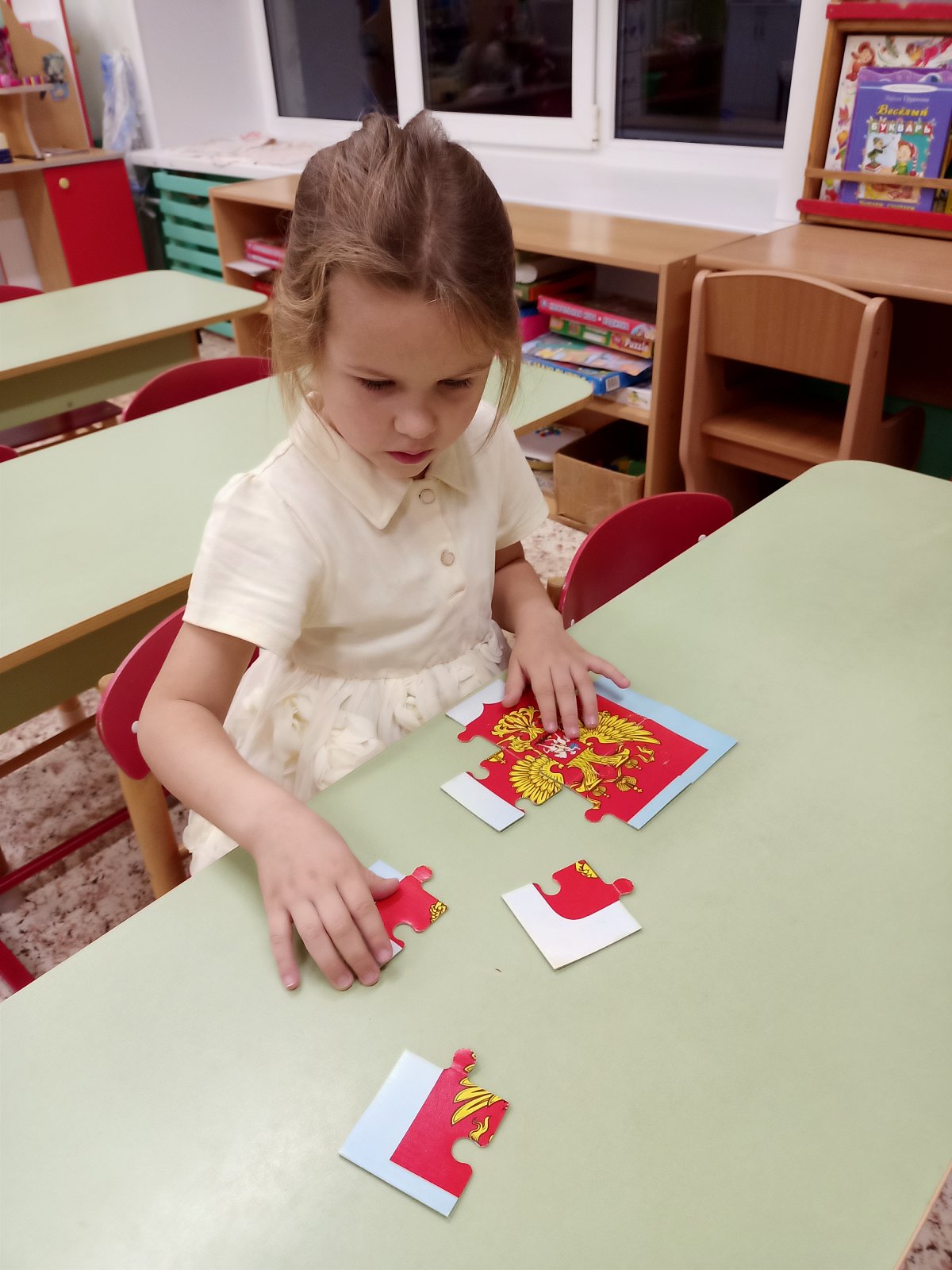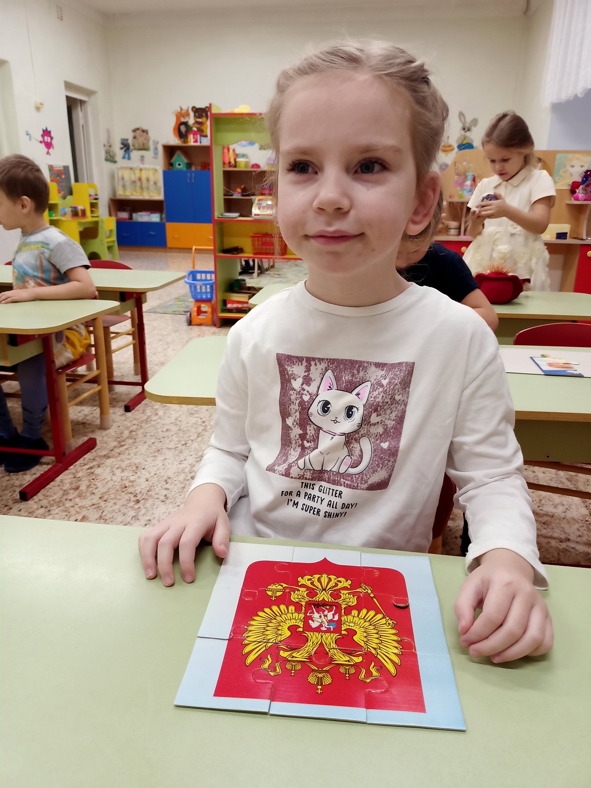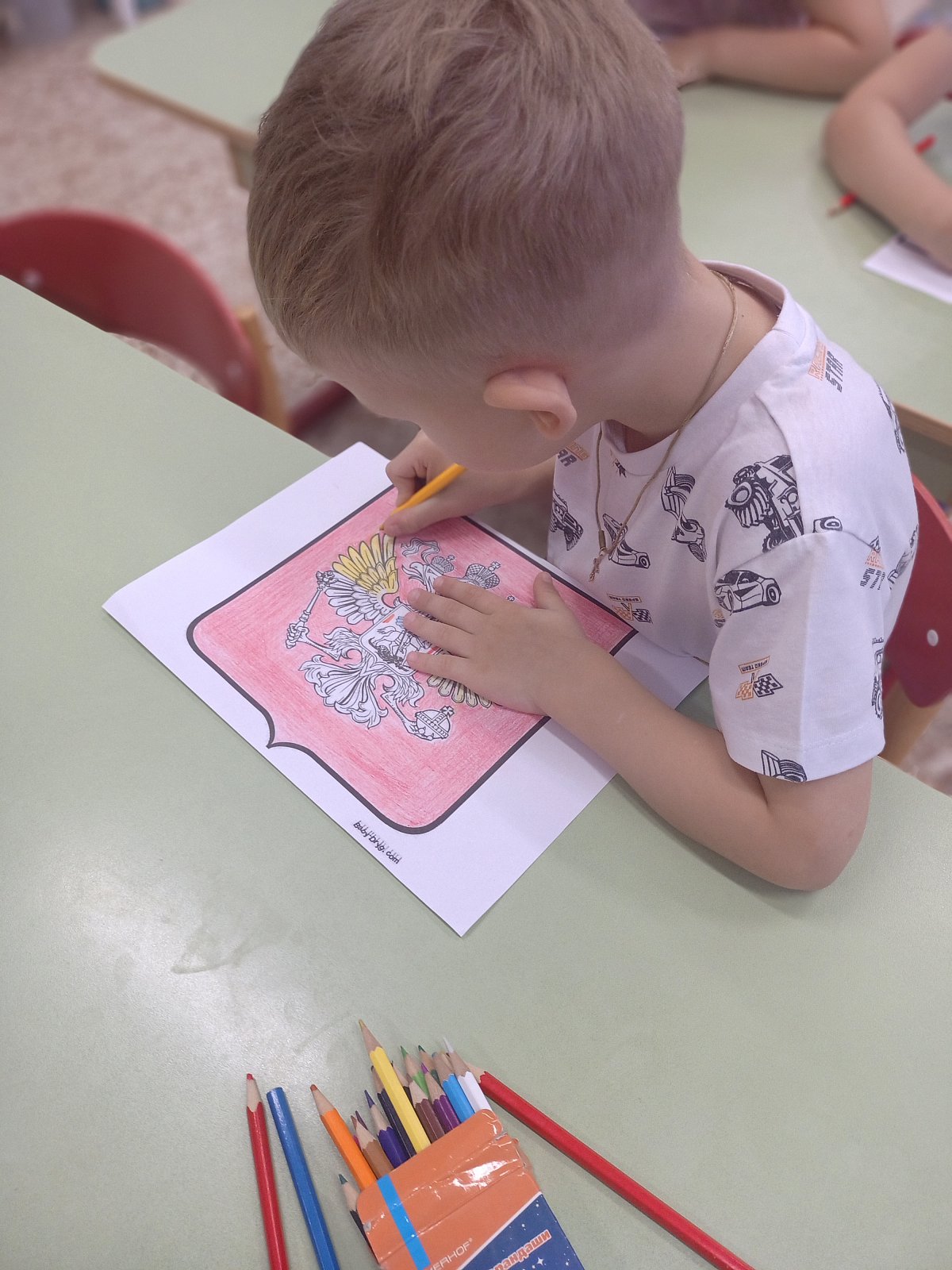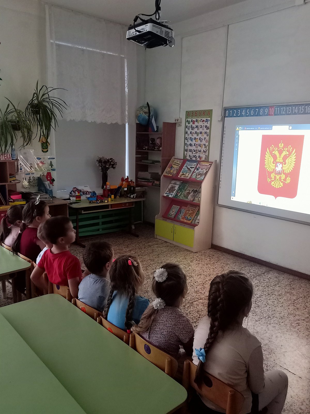 В этот день в старшей группе «Смешарики» с дошкольниками была проведена беседа о Государственном гербе России, в ходе которой они узнали об истории российского герба, его символическом значении, где можно увидеть герб РФ.