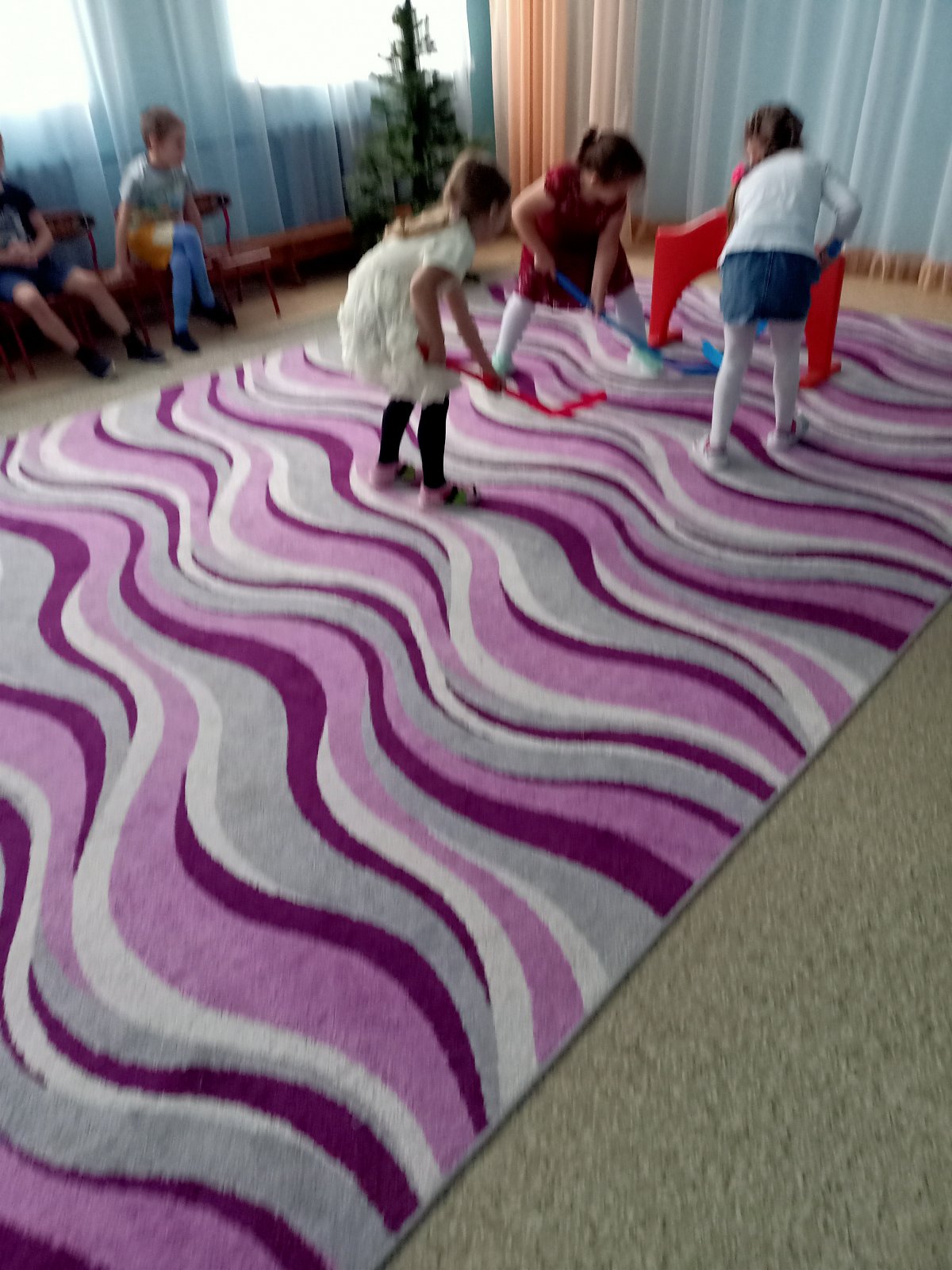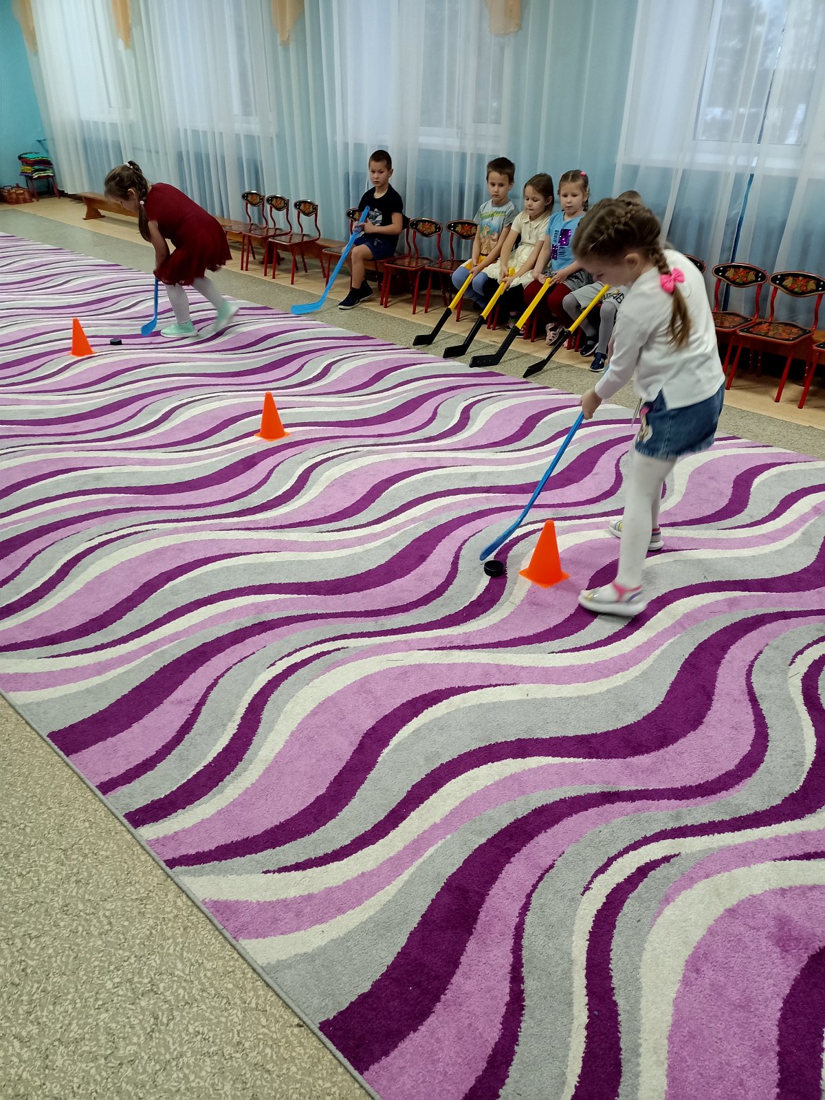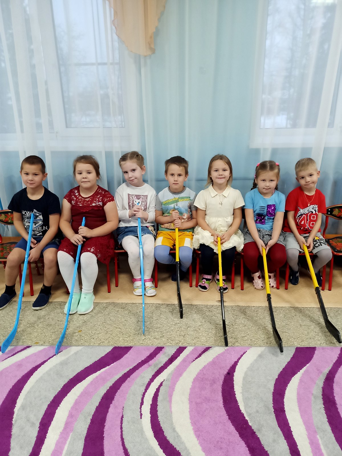 С особым интересом мальчики и девочки рассматривали элементы экипировки хоккеистов, вратаря, шарфы болельщиков, медали и кубки. На физкультурном занятии каждый попробовал вести шайбу, передавать пас и забивать гол в ворота. А на прогулке смогли почувствовать себя настоящими хоккеистами. В нашей группе проявили желание играть в хоккей не только мальчишки, но и девочки. Во время дружеской встречи, дети испытали массу положительных эмоций, заряд бодрости, энергии, спортивный азарт. Игра получилась веселой, интересной. Подобные мероприятия способствуют развитию коллективизма, чувства ответственности, взаимопомощи, поддержки и, конечно же, развитию физических качеств и формированию здорового образа жизни.
