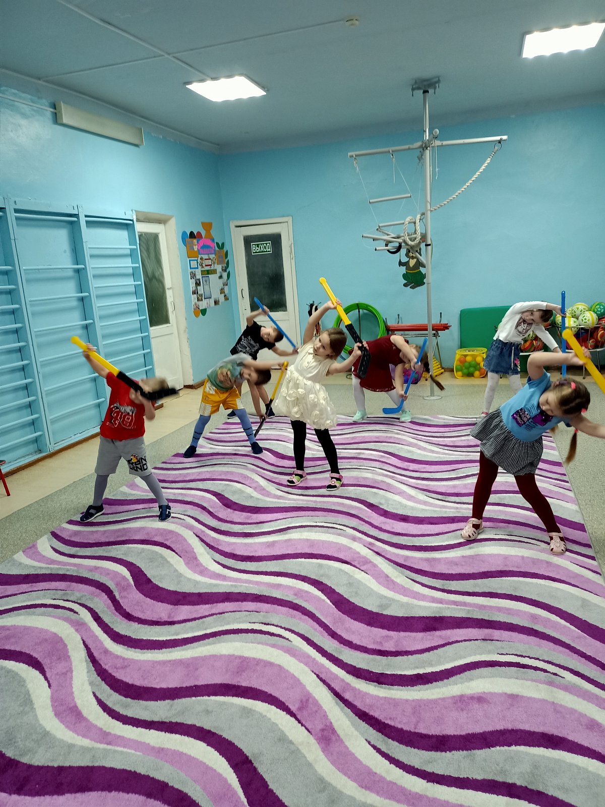 Утром ребята рассмотрели картинки с изображением хоккеистов, поговорили об этой азартной игре, а потом делали зарядку с клюшками. Посмотрев презентацию о хоккее, дети много узнали об этом виде спорта: познакомились с историей хоккея, с правилами игры, узнали о ледовых спортивных сооружениях. С одной стороны хоккей – это труд, выносливость, дисциплинированность, терпений, ловкость. А с другой – очень интересная, захватывающая игра!