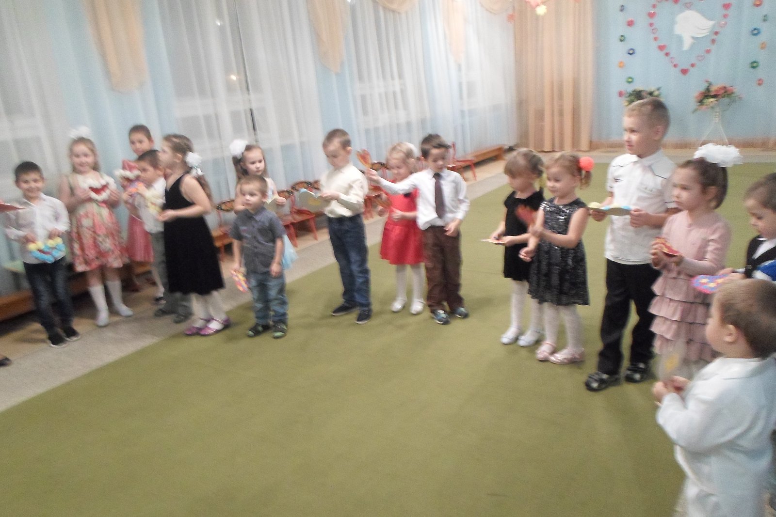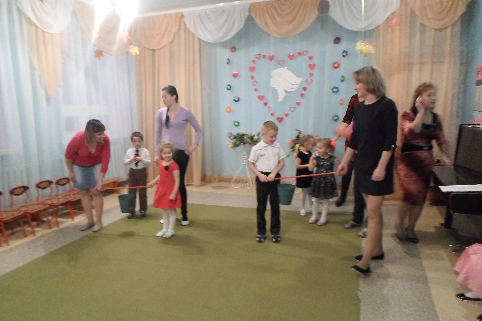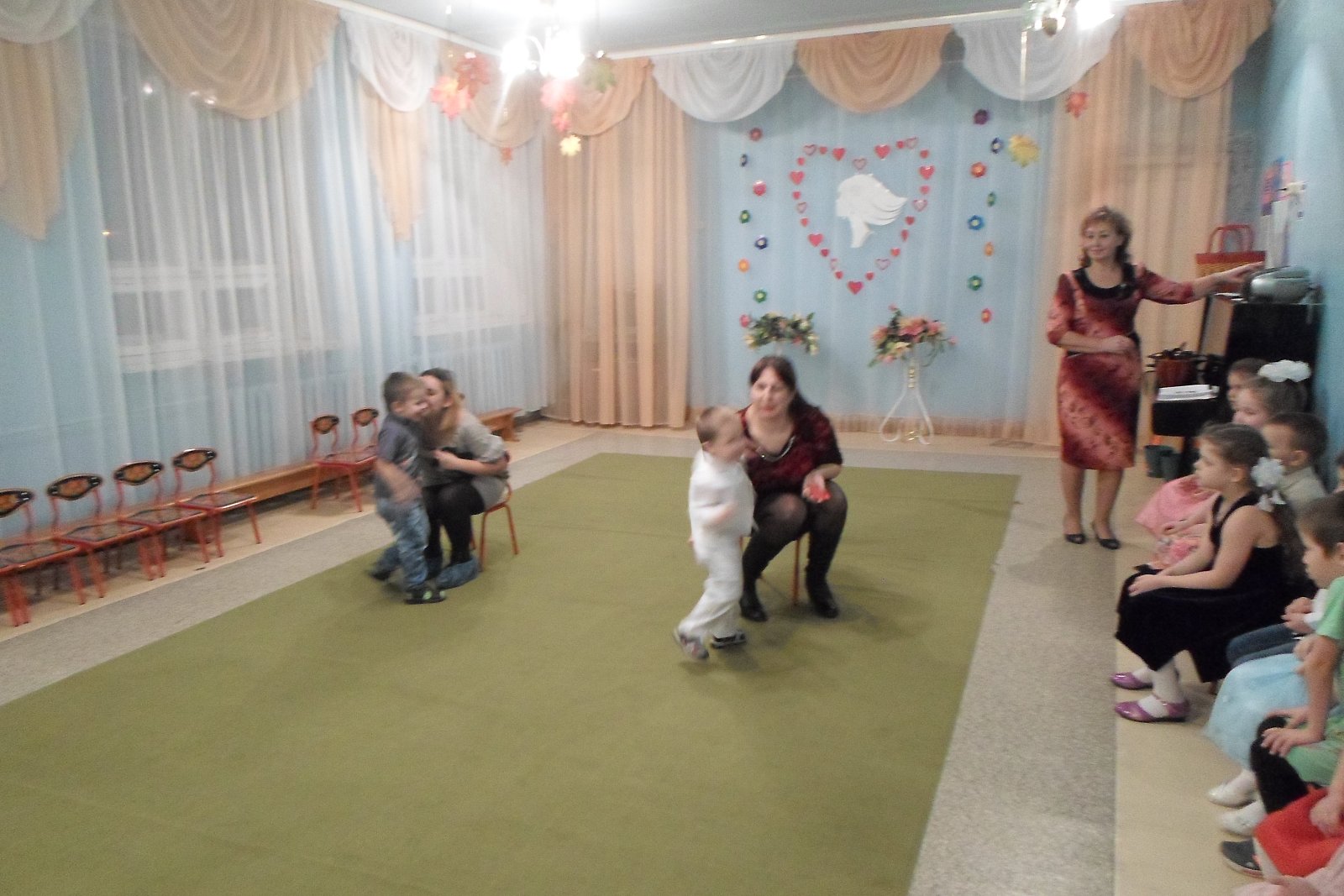 К этому дню дошкольники подготовили для своих мам сердечки, сделанные своими руками, оформили плакат «Дарим мамочкам цветы, а цветочки – это МЫ!», фотогазету «Вот она какая, мамочка родная!» На празднике ребята исполняли весёлые песни и танцы, играли на музыкальных инструментах, вместе с мамами участвовали в играх и аттракционах. До слез растрогали мамочек, теплые, душевные слова поздравлений, прозвучавшие в стихах и песнях в исполнении детей, так как каждый ребенок выражал в своем поздравлении всю свою любовь к своей маме. Было очень приятно видеть добрые и нежные улыбки мамочек, счастливые глаза их детей! А самое главное – это радость от участия, общения в совместной деятельности.