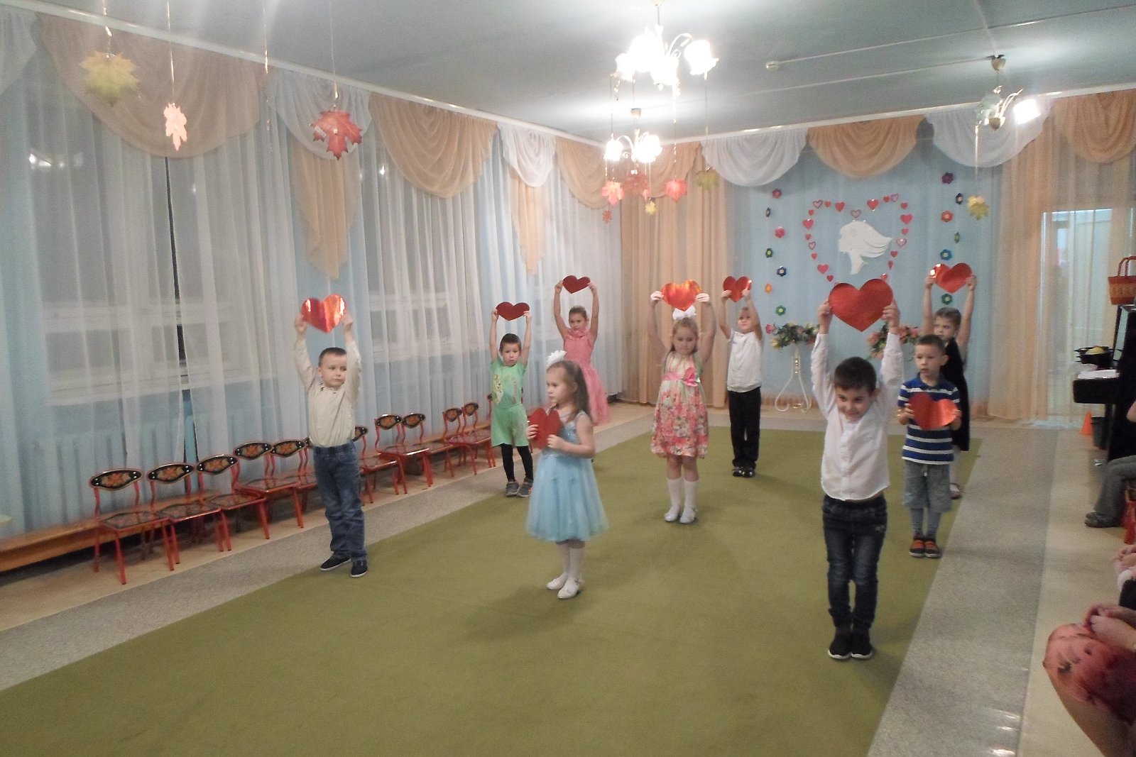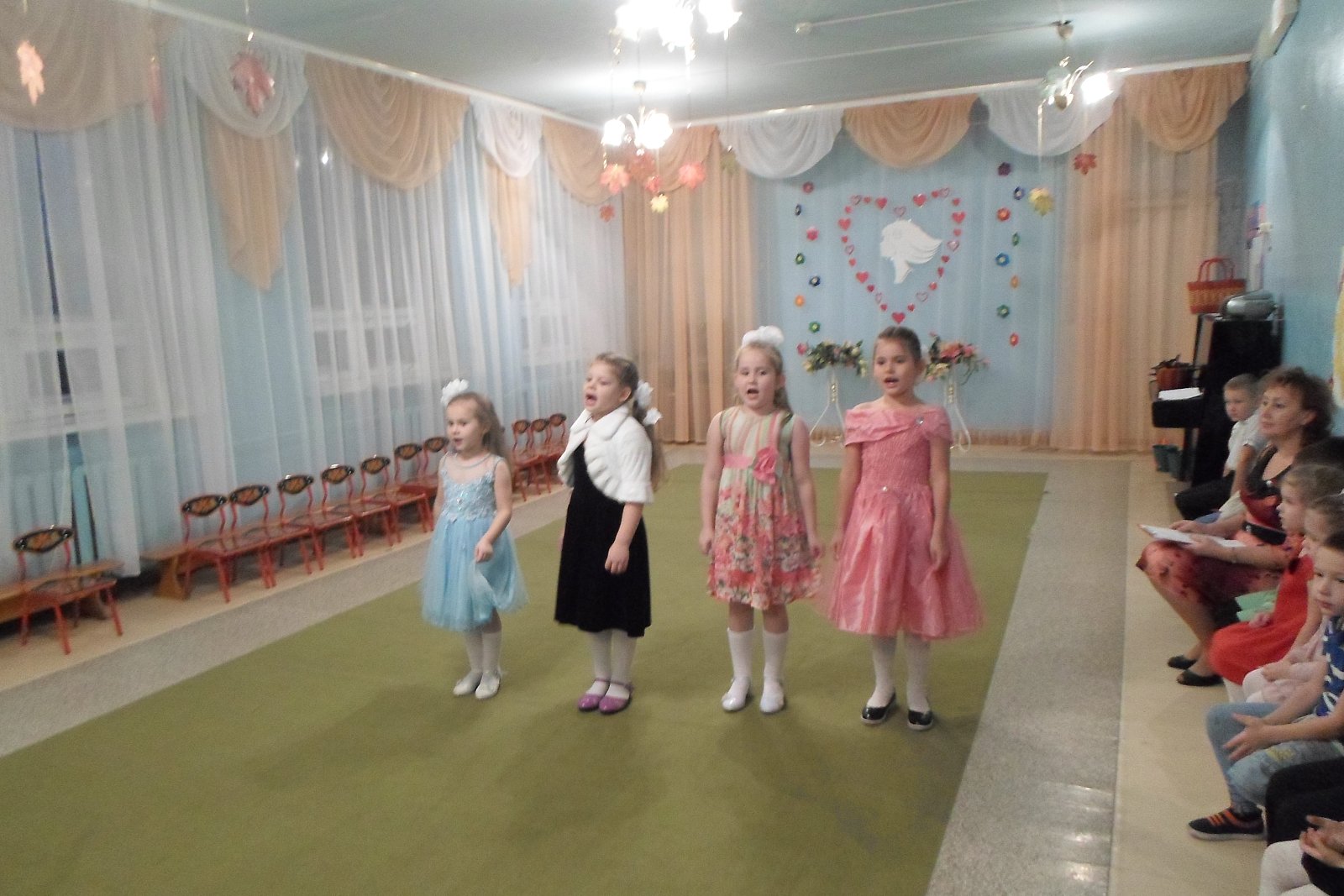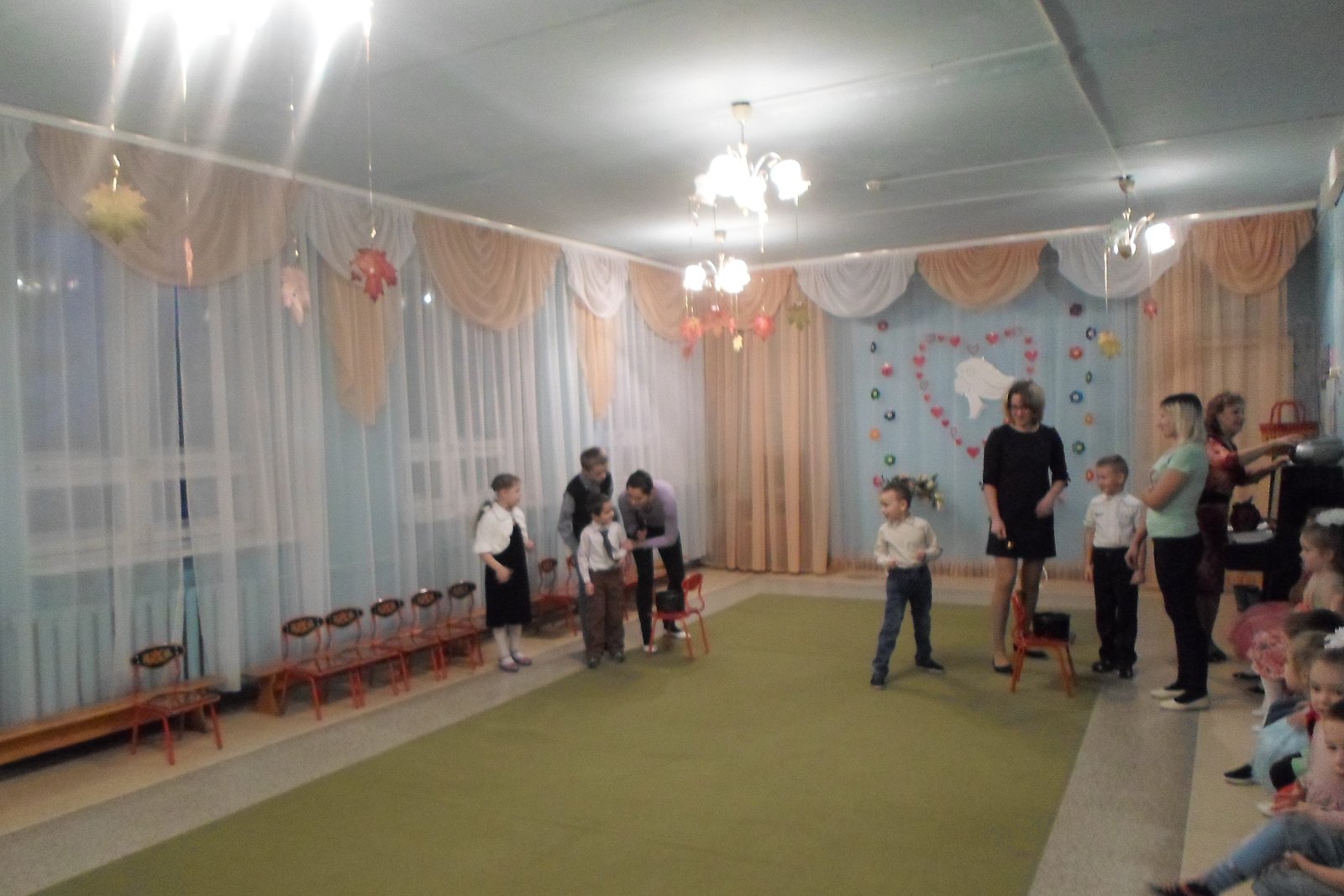 К этому дню дошкольники подготовили для своих мам сердечки, сделанные своими руками, оформили плакат «Дарим мамочкам цветы, а цветочки – это МЫ!», фотогазету «Вот она какая, мамочка родная!» На празднике ребята исполняли весёлые песни и танцы, играли на музыкальных инструментах, вместе с мамами участвовали в играх и аттракционах. До слез растрогали мамочек, теплые, душевные слова поздравлений, прозвучавшие в стихах и песнях в исполнении детей, так как каждый ребенок выражал в своем поздравлении всю свою любовь к своей маме. Было очень приятно видеть добрые и нежные улыбки мамочек, счастливые глаза их детей! А самое главное – это радость от участия, общения в совместной деятельности.