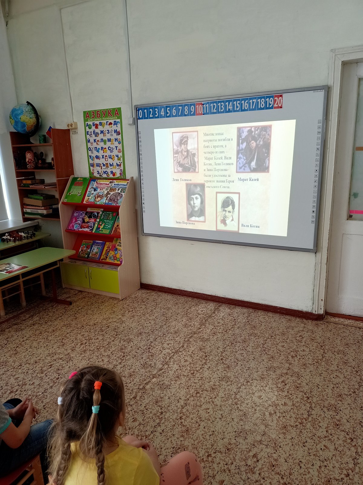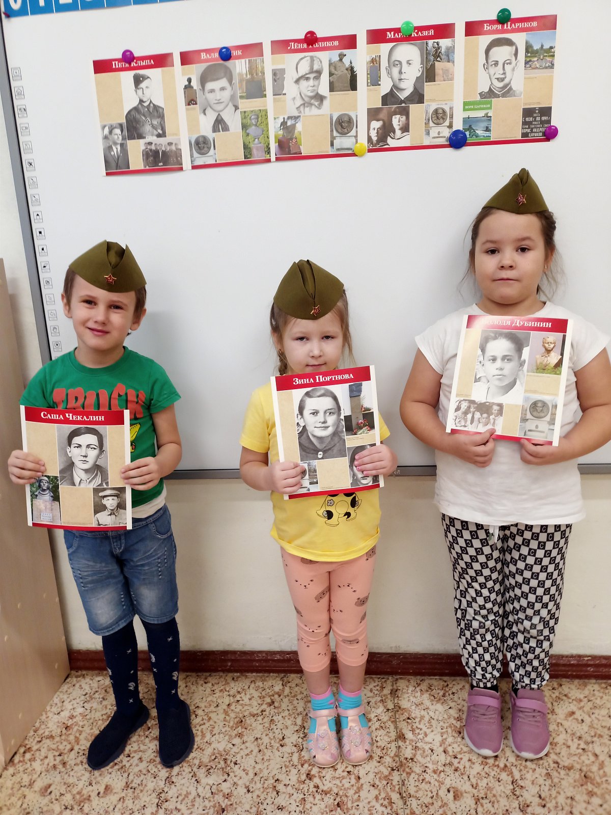С целью создания условий для патриотического воспитания дошкольников, формирования чувства гордости за подвиг юных героев-антифашистов в годы Великой Отечественной войны в старшей группе «Смешарики» прошло тематическое мероприятие «Маленькие герои большой войны». С воспитанниками была проведена беседа с просмотром презентации «Дети-герои», организована фото-выставка героев – антифашистов: Леня Голиков, Зина Портнова, Валя Котик, Саша Чекалин и др. Имена у них разные, но их судьбы похожи – все, что они делали, они делали ради освобождения нашей страны от фашистских захватчиков Мальчишки и девчонки наравне со взрослыми терпели лишения, защищали, стреляли, попадали в плен, жертвуя собственными жизнями. В тылу и на линии фронта они каждый день совершали маленький подвиг. У них не было времени на детство, им не достались годы, чтобы взрослеть. Они взрослели по минутам. Дети совершали такие поступки, о каких взрослым страшно было подумать.