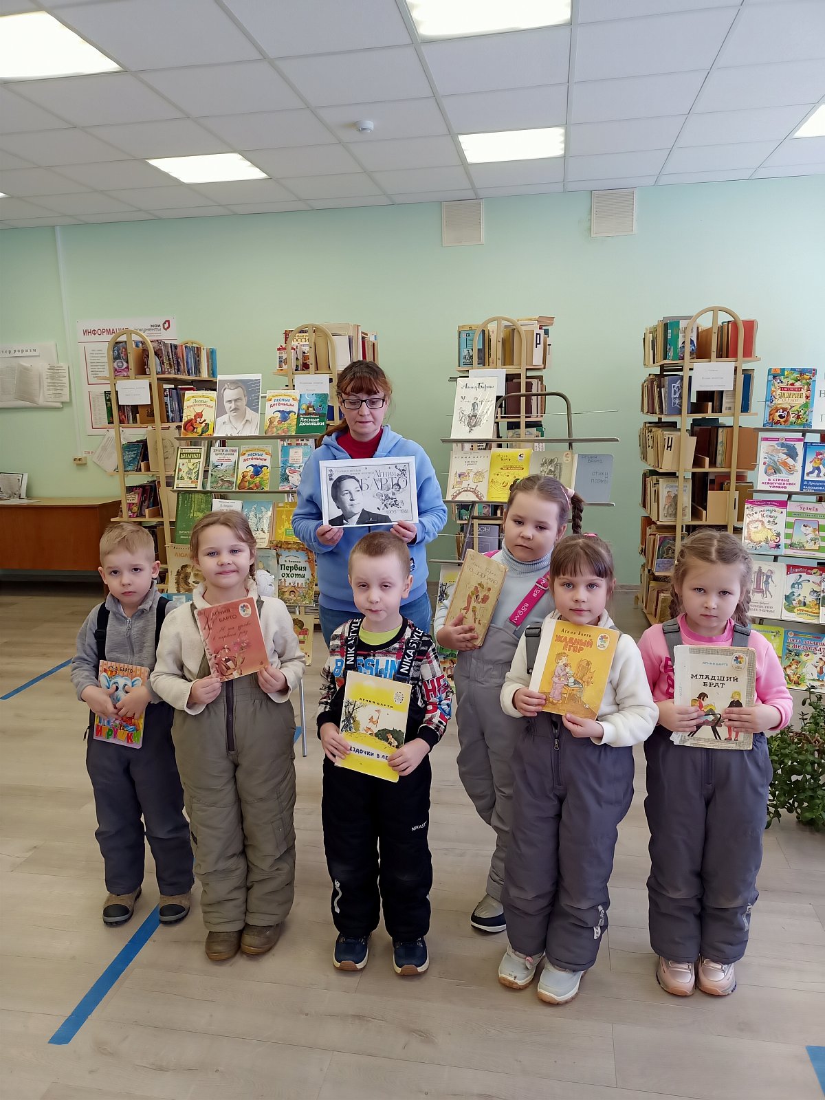 Для старших дошкольников детского сада работник сельской библиотеки Наталья Викторовна провела поэтический час «Поэзия доброты Агнии Барто». Библиотекарь рассказала детям о жизни и творчестве поэтессы, а затем предложила ребятам окунуться в мир творчества Барто. С большим удовольствием дошкольники вспоминали стихи автора по первой строчке, сами читали их и с интересом слушали чтение Натальи Викторовны: «Я расту», «Девочка - чумазая», «Девочка -рёвушка», «Любочка», «Жадный Егор» и другие. После обсуждения этих произведений, дети пришли к выводу, что стихи Агнии Барто весёлые, и заставляют задуматься всерьёз о том, как себя вести, каким человеком нужно расти, как относиться к младшим и старшим. В библиотеке к мероприятию была оформлена книжная выставка « Страна веселого детства». Ребята выбрали книги Агнии Барто, чтобы почитать в детском саду.