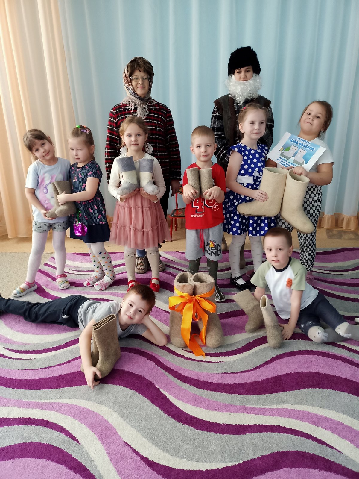 16 февраля в старшей группе «Смешарики» прошел "Праздник русского валенка " с целью: познакомить детей с историей традиционной русской обуви – валенок; приобщить к национальным традициям русского народа, формировать знания о народной культуре.