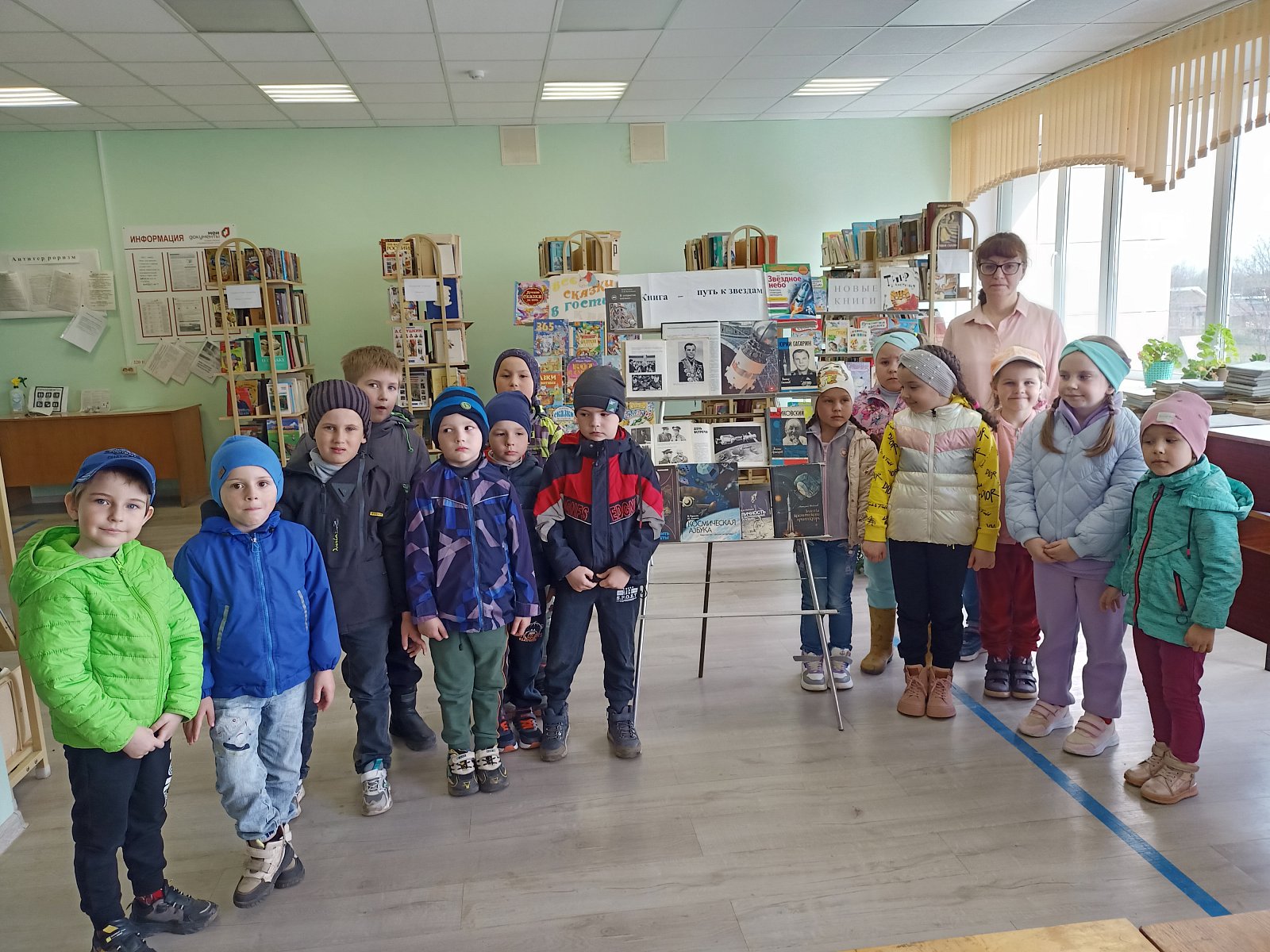 11 апреля для дошкольников старшей группы "Смешарики" была организована экскурсия в сельскую библиотеку, где прошел познавательный час "Россия и космос"