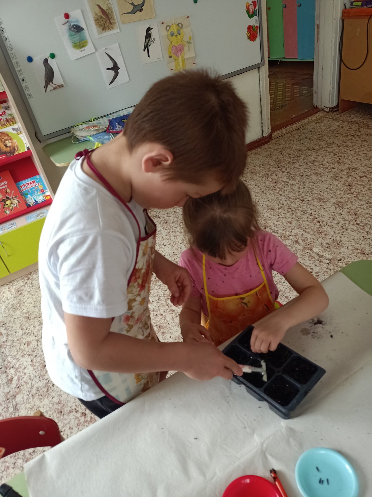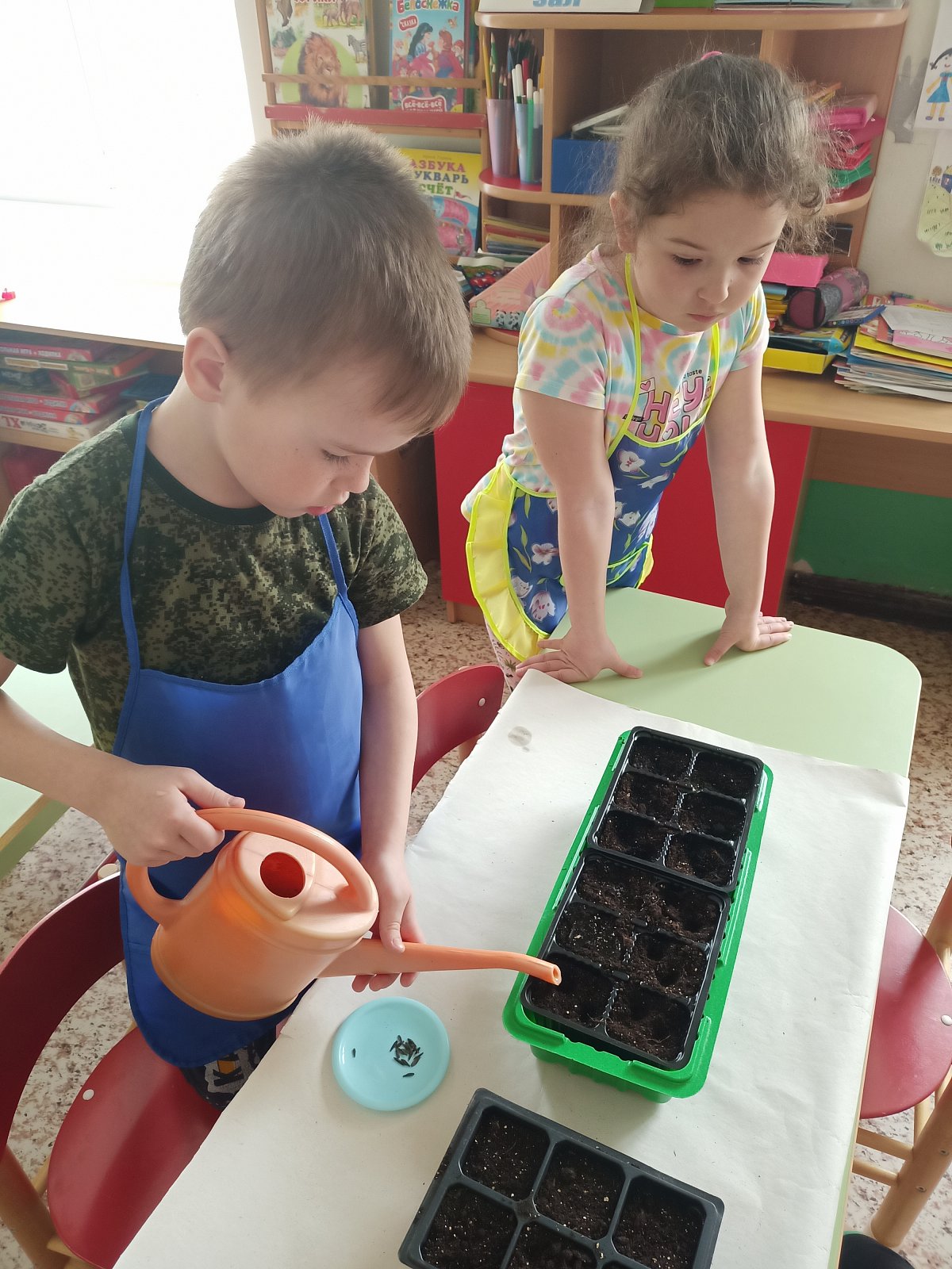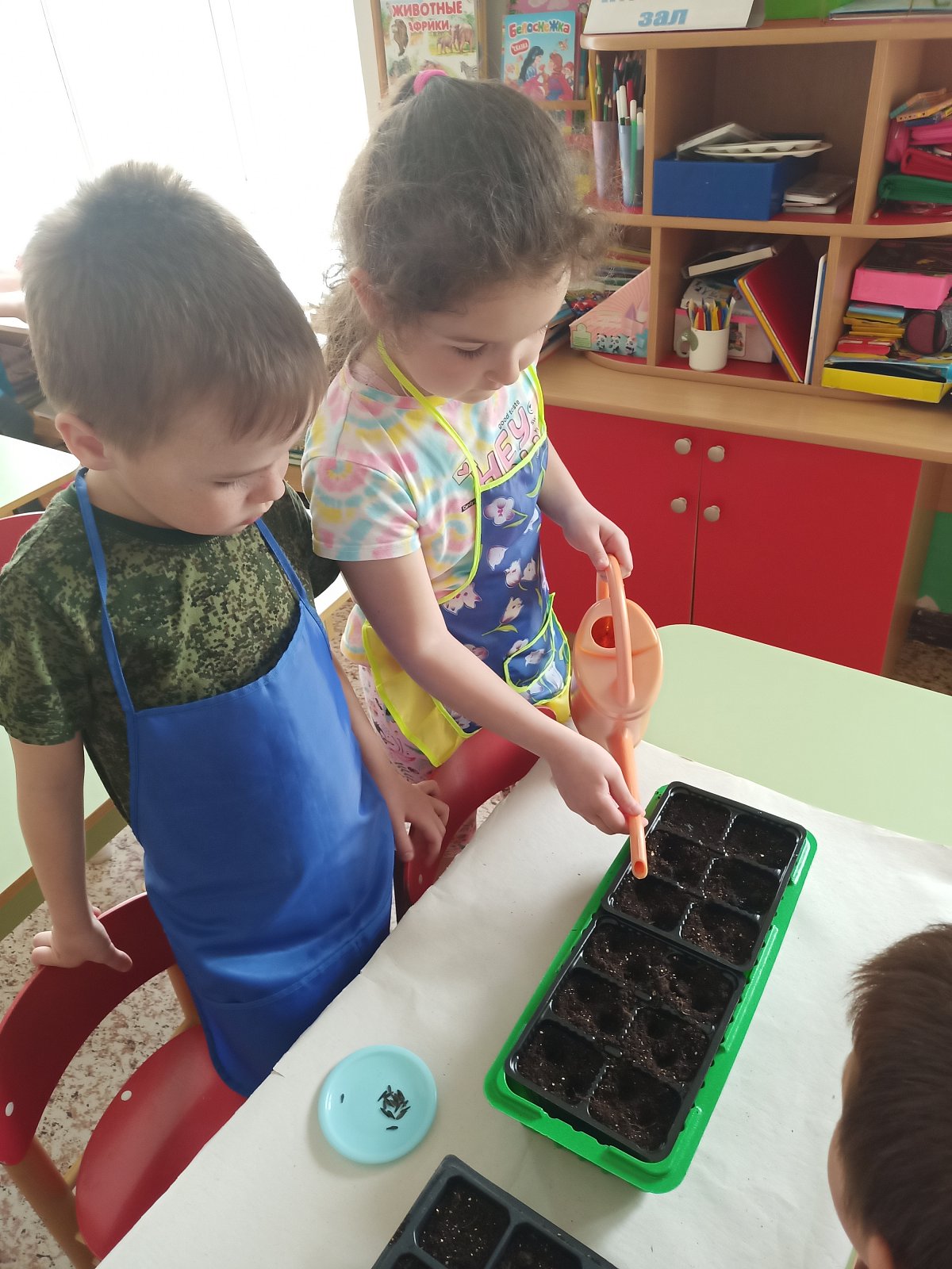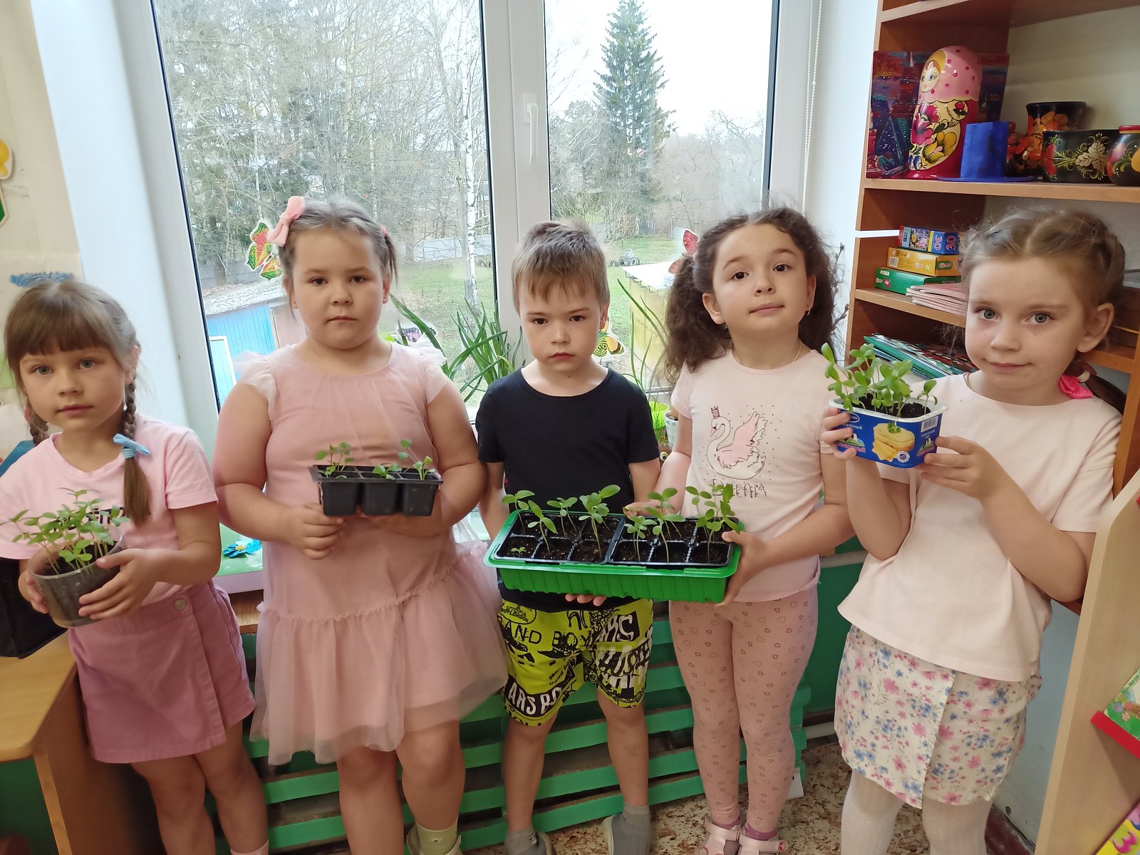 Старшая группа «Смешарики» решила украсить свой участок этими прекрасными цветами. Но для этого необходимо время, правильный уход. Дошкольники решили сами вырастить рассаду. Сначала подготовили землю и закрепили название цветов, которые собрались сеять. Рассмотрели смена и узнали, что они бывают разные по цвету, форме, хорошо растут, когда для них созданы все условия: вода, свет, тепло.