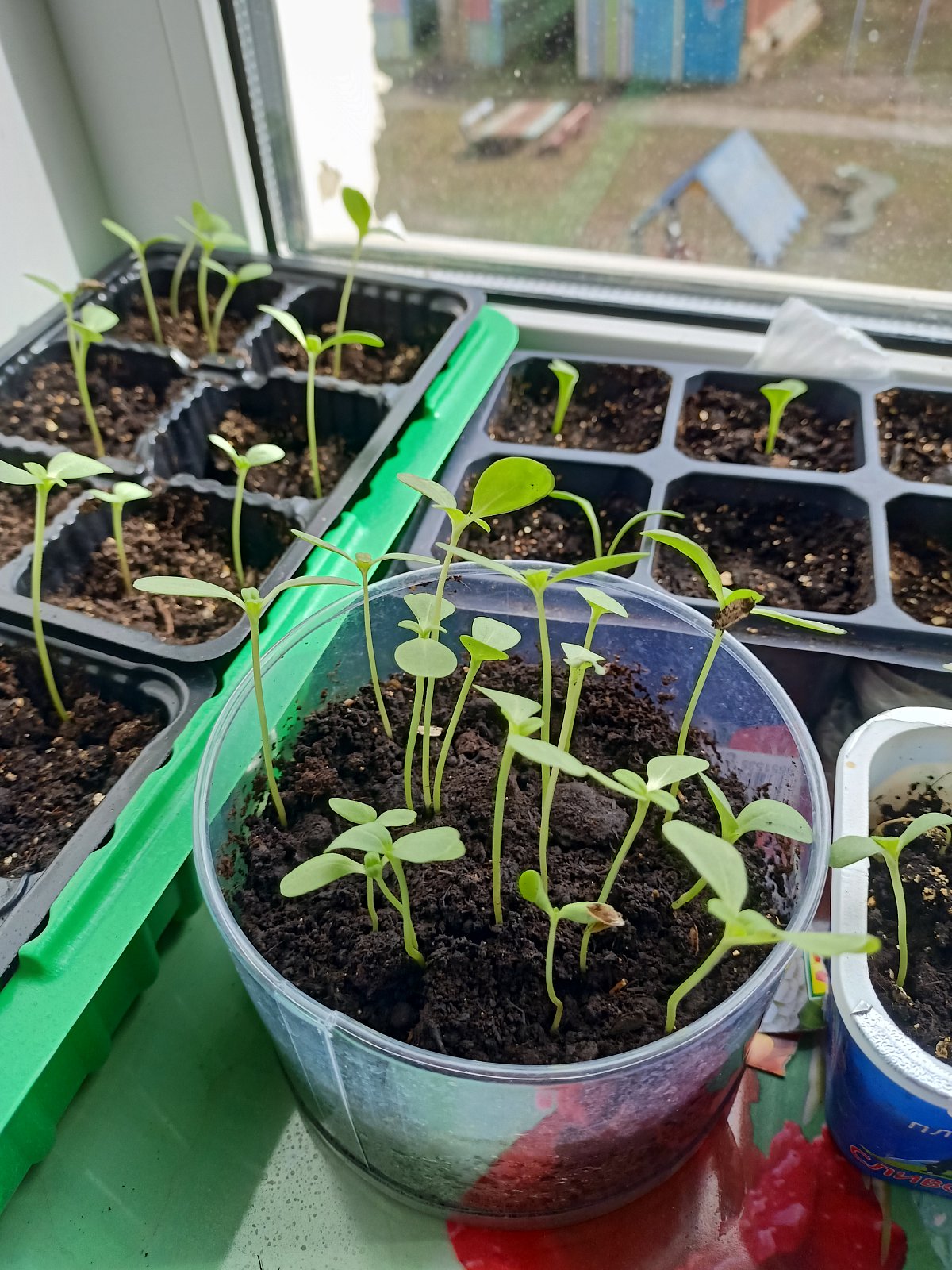 Следующим этапом был уже непосредственно посев. Ребята делали бороздочки с помощью стеков, сажали семена, поливали их. Работали увлеченно и очень аккуратно. Дети с нетерпением ждали, когда появятся первые ростки. Сколько было радости, когда появились первые всходы! День за днем мы наблюдали, как наши посевы набирают силу, растут. С каждым днем наша рассада крепнет. Теперь мы будем пересаживать их в отдельные стаканчики.