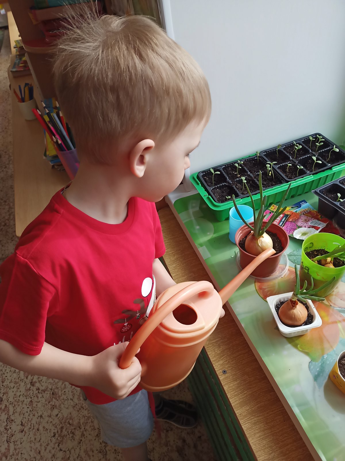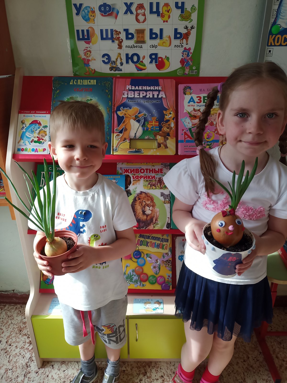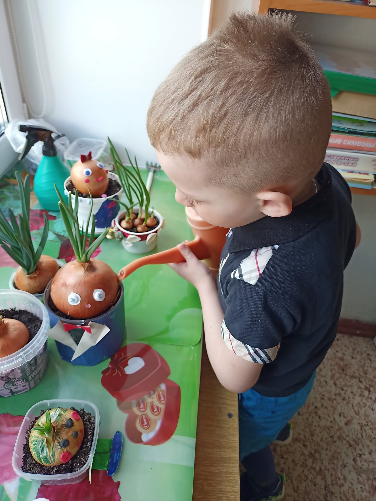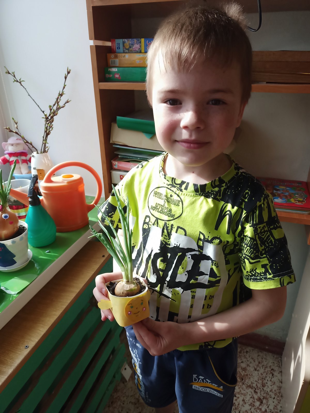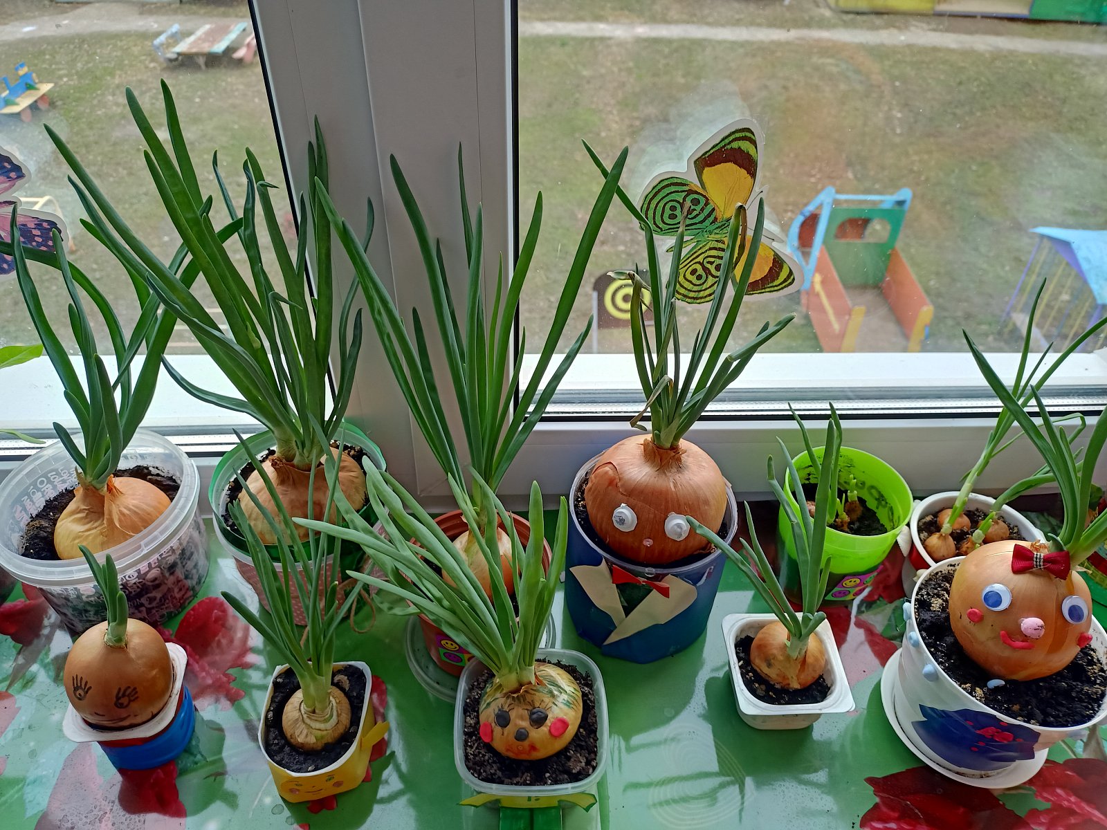Воспитанники старшей группы «Смешарики" в течение нескольких недель ухаживали за луком, посаженный своими руками. Ребята поливали, наблюдали за его ростом