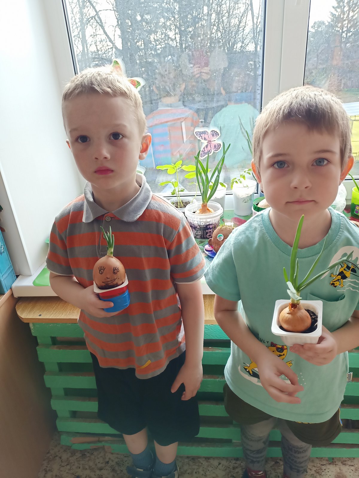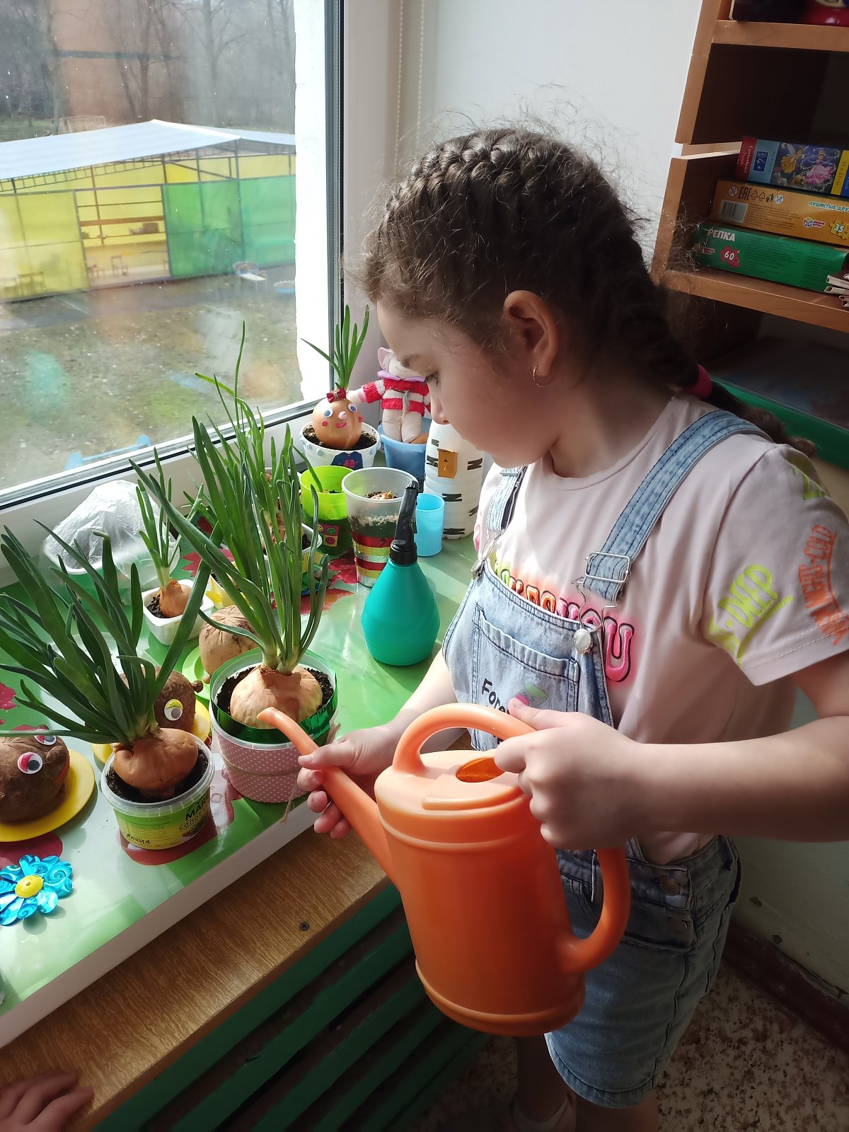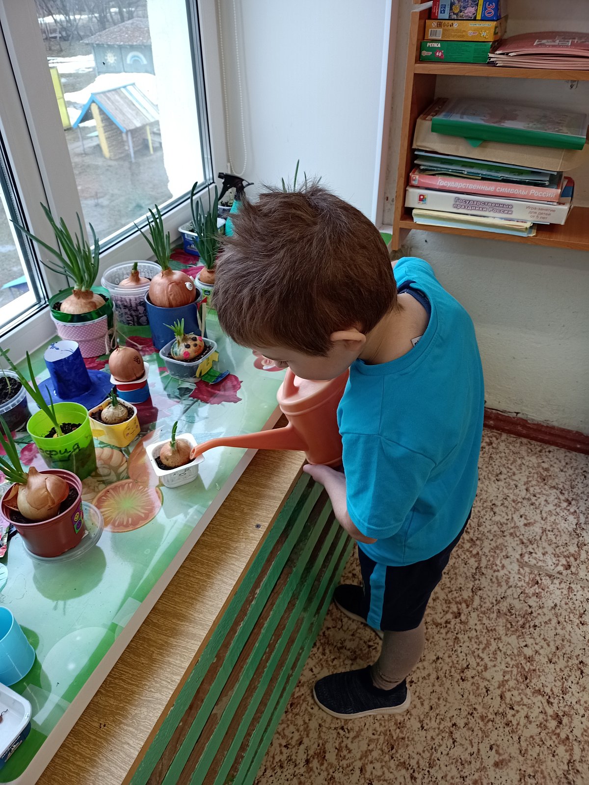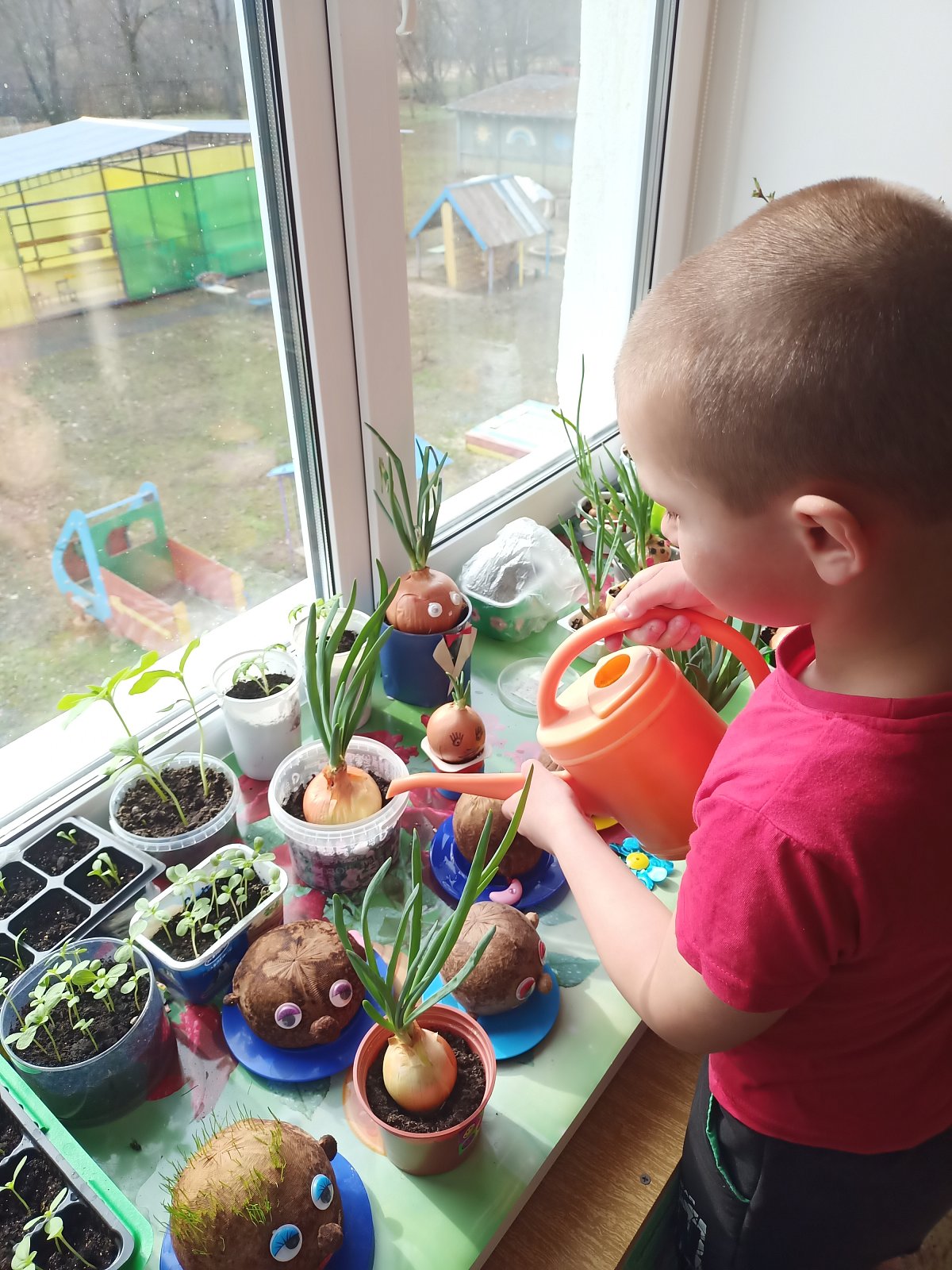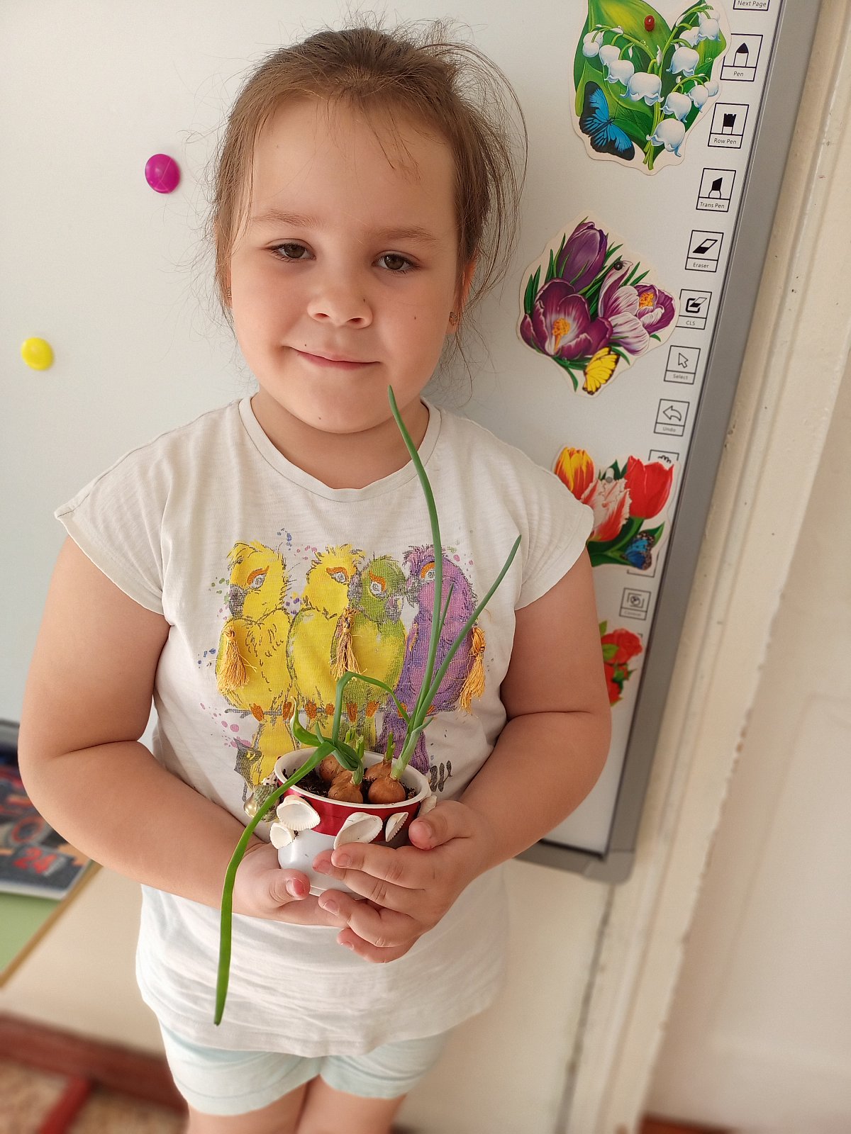 Воспитанники старшей группы «Смешарики" в течение нескольких недель ухаживали за луком, посаженный своими руками. Ребята поливали, наблюдали за его ростом