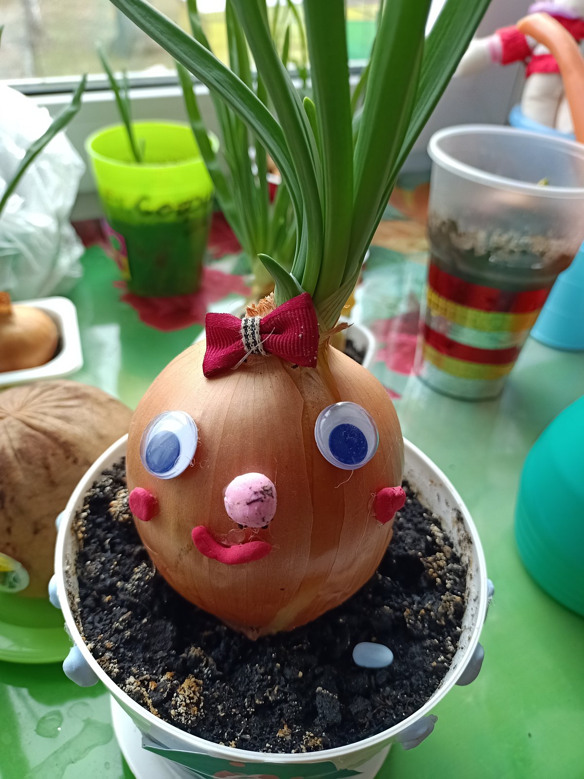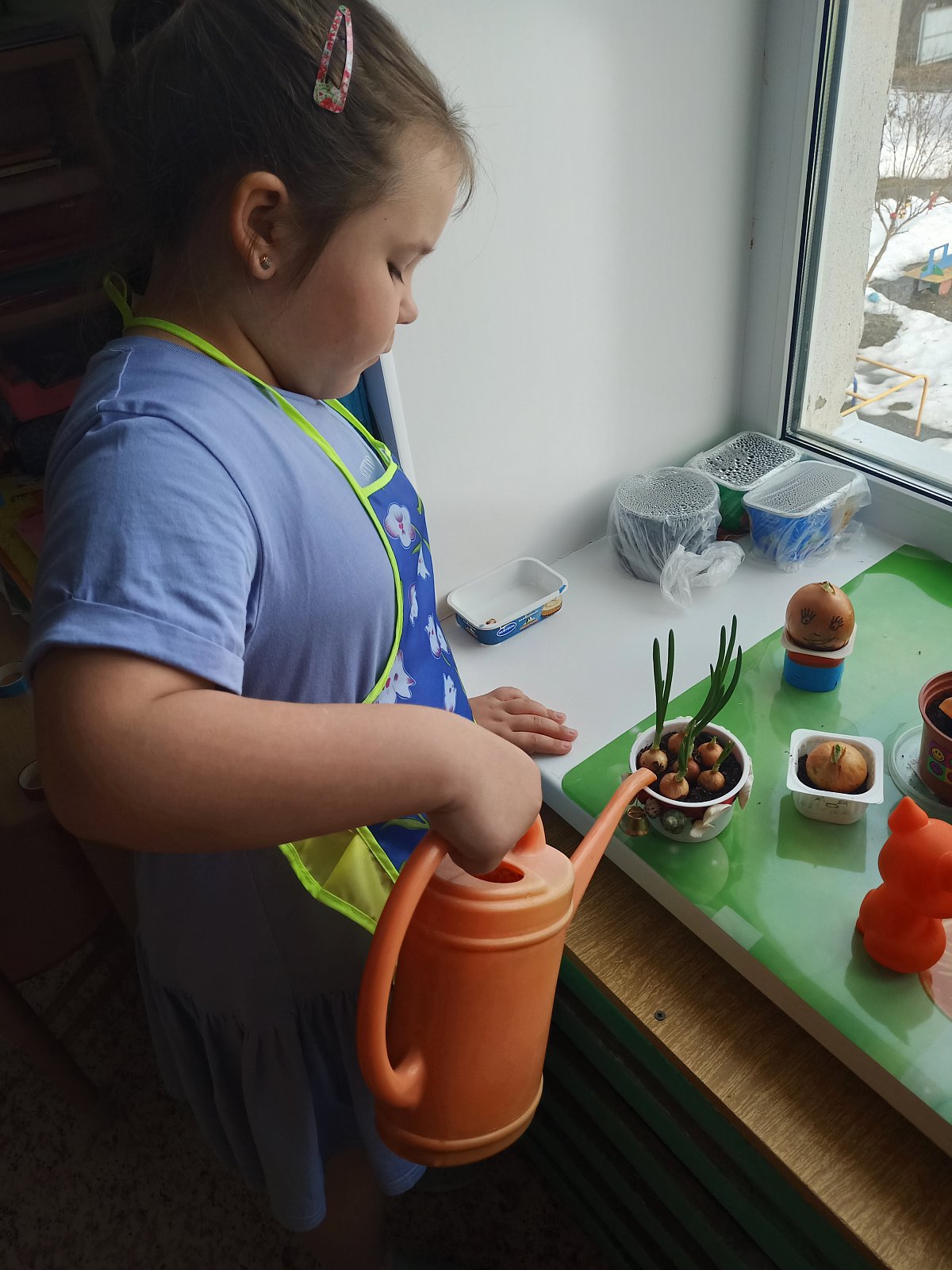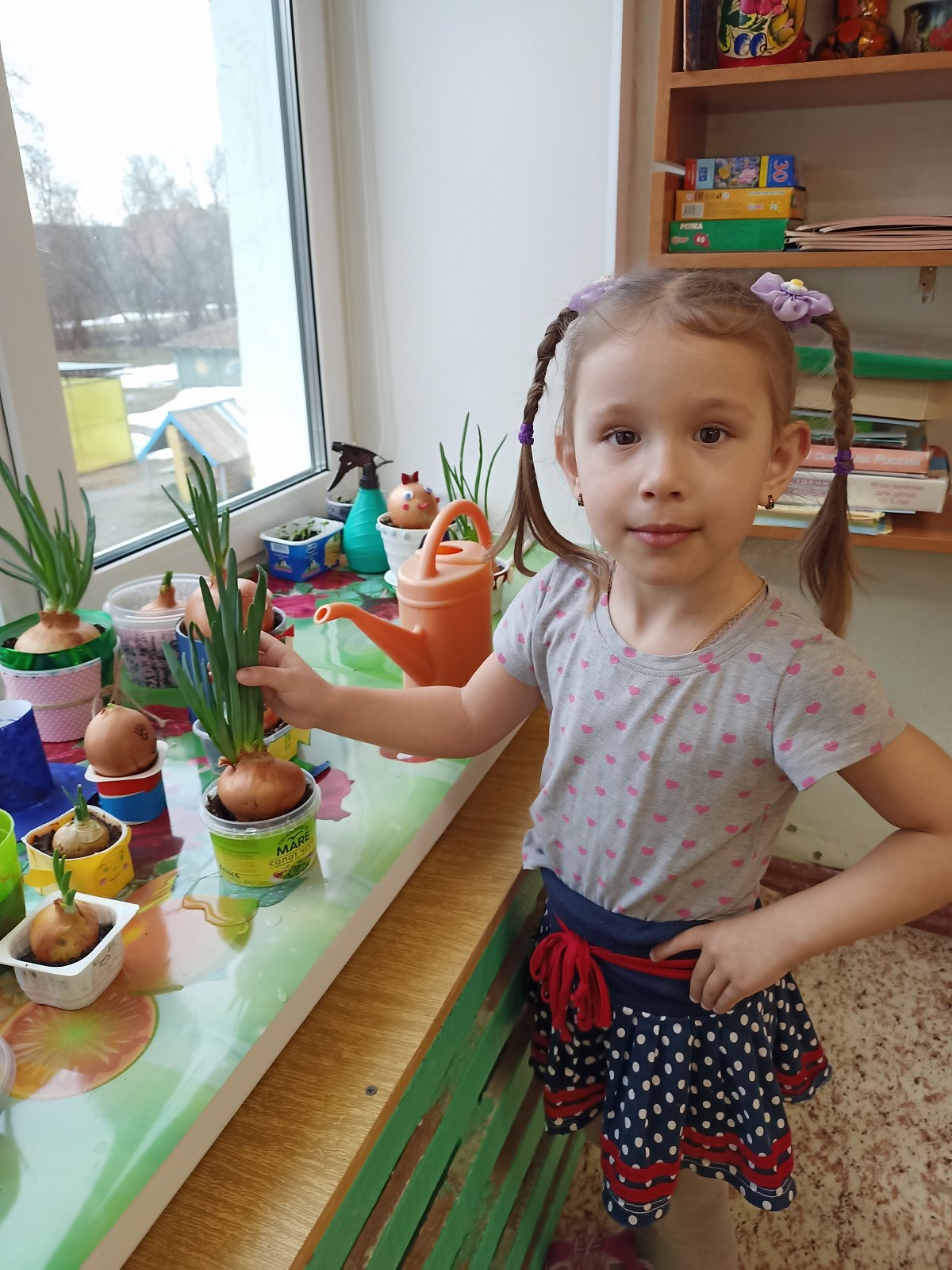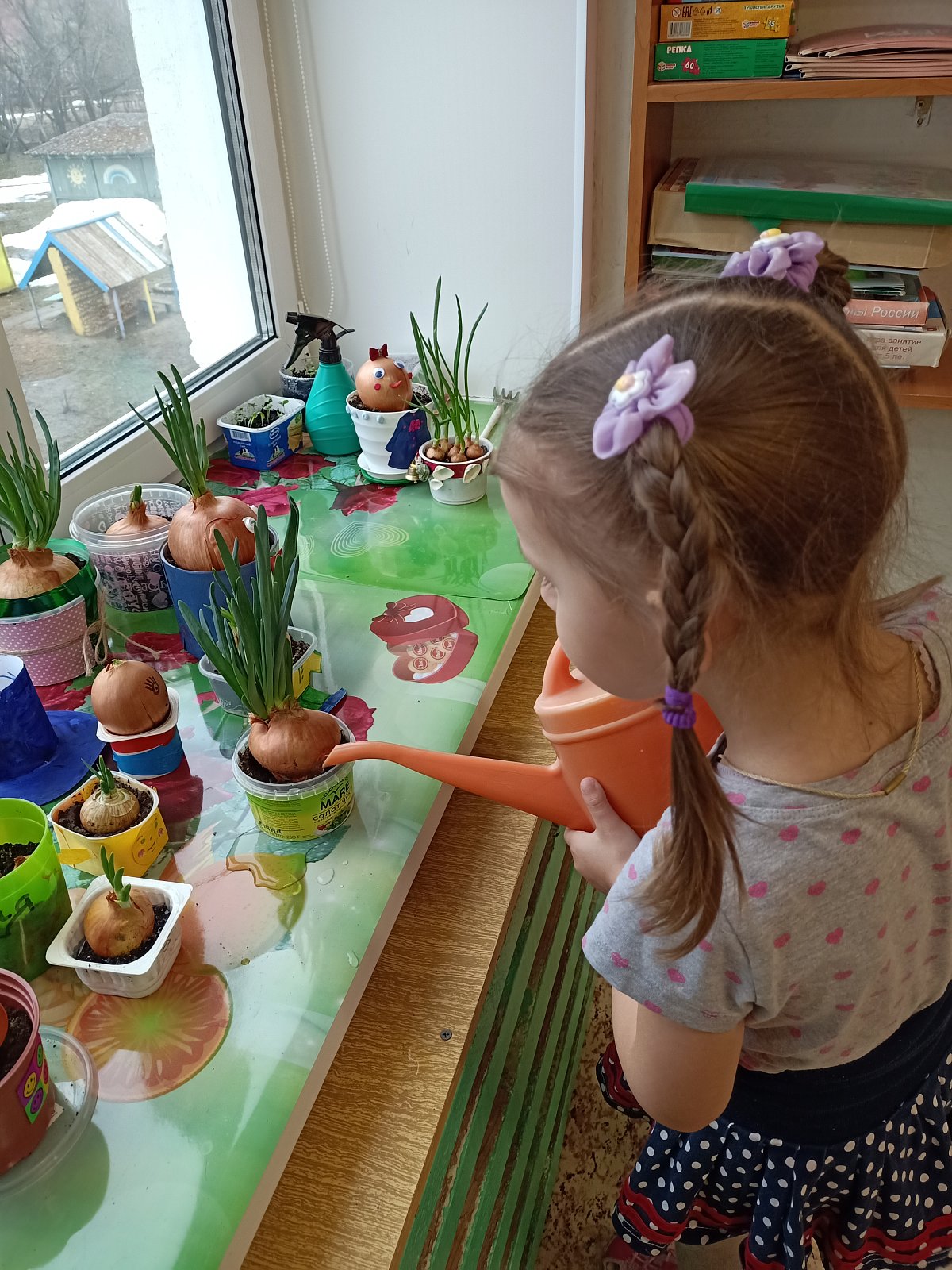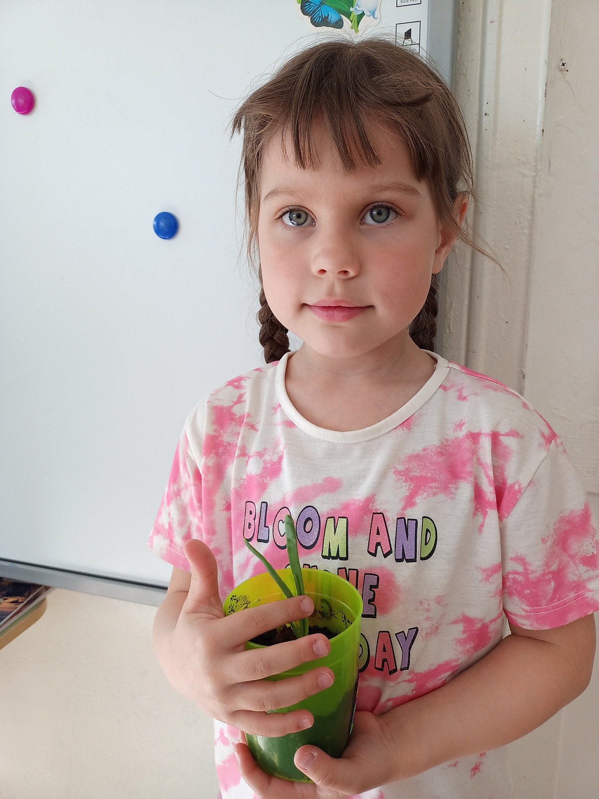 Воспитанники старшей группы «Смешарики" в течение нескольких недель ухаживали за луком, посаженный своими руками. Ребята поливали, наблюдали за его ростом